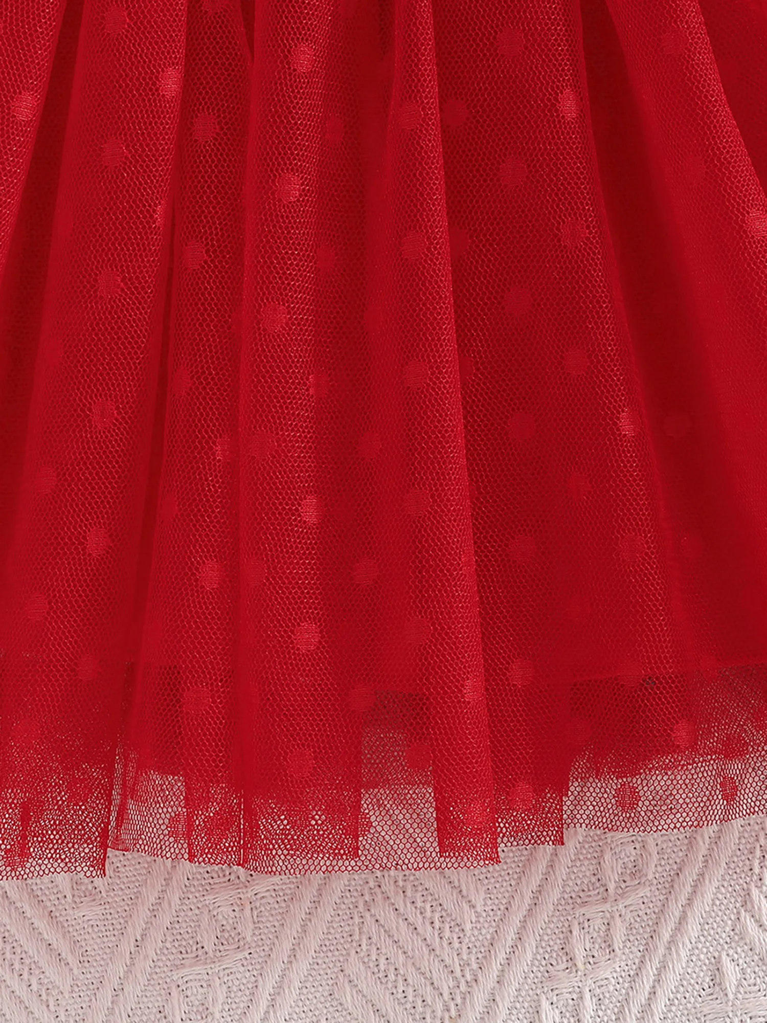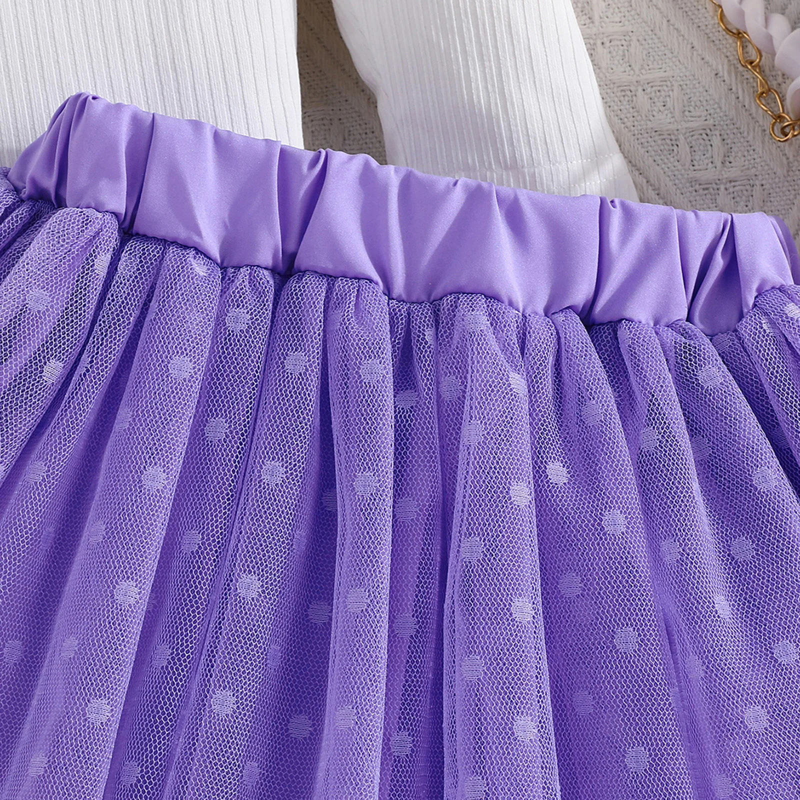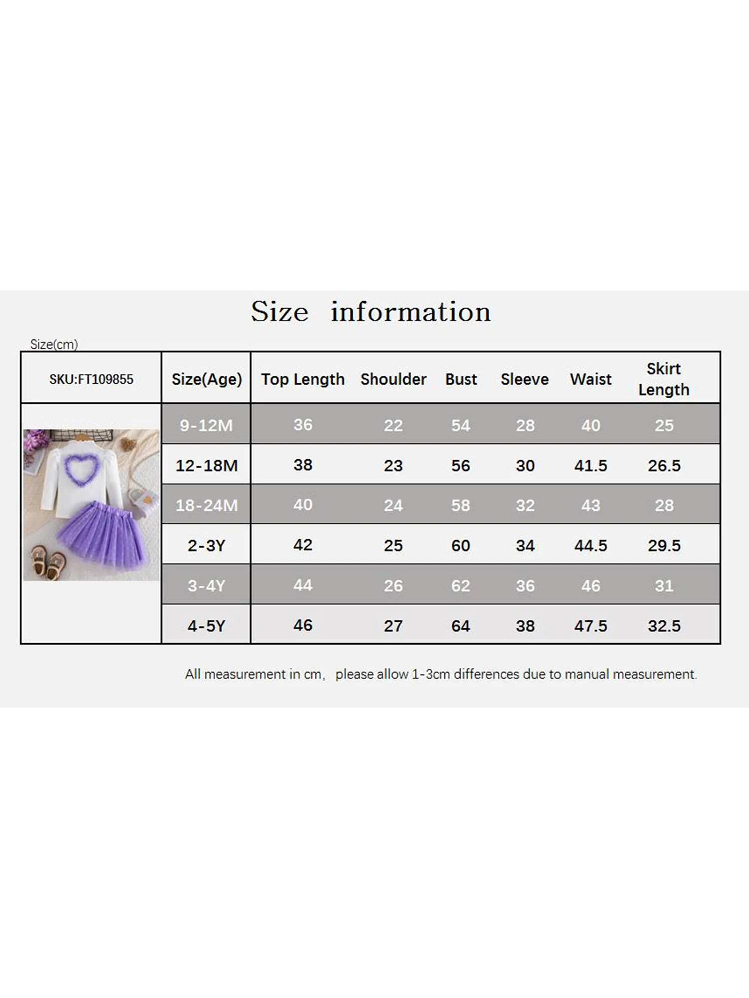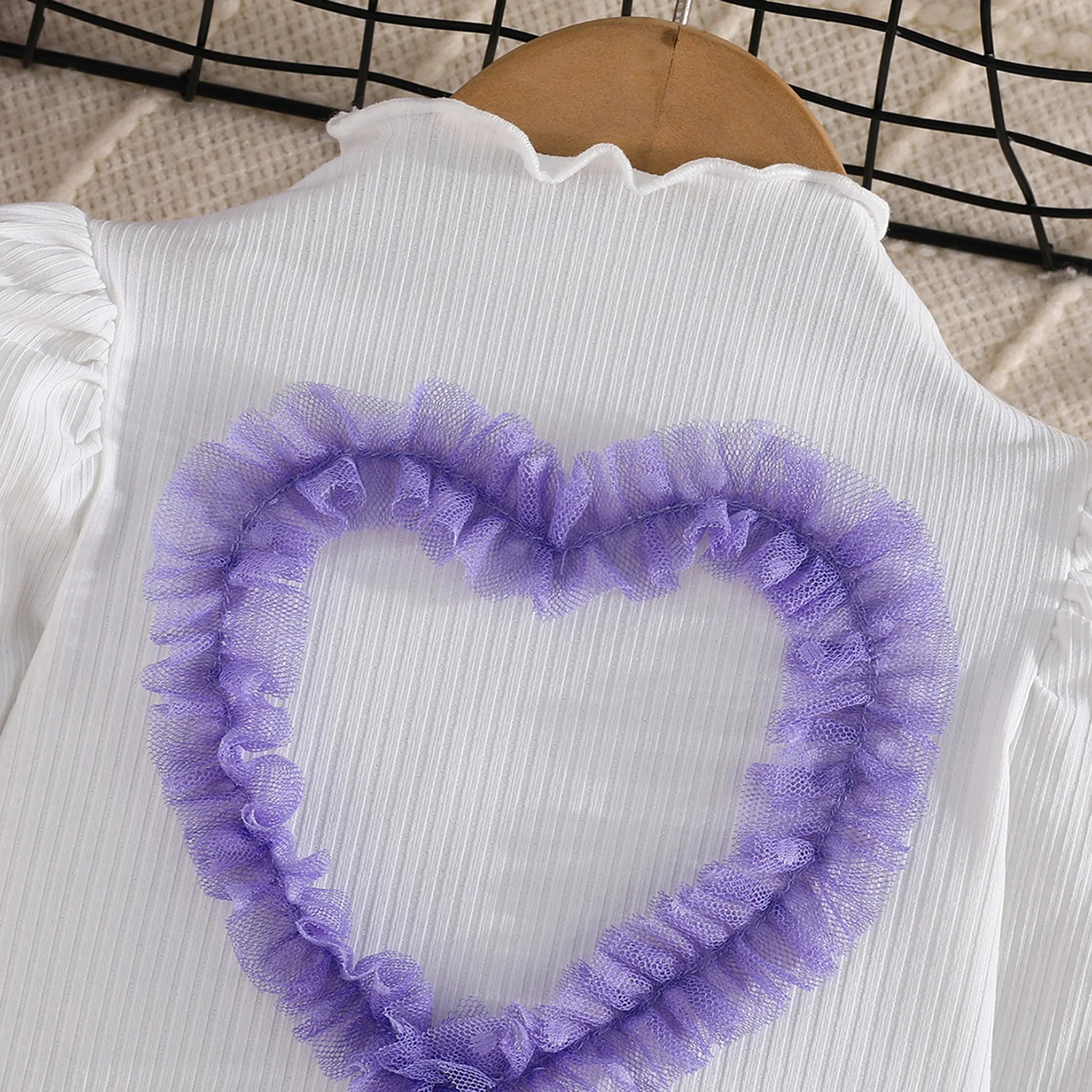 Conjunto de ropa para niñas pequeñas, jersey de manga larga con forma de corazón y falda de tul con puntos, traje de 2 uds.