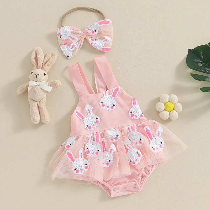 Comprar SUNSIOM-Conjunto de ropa sin mangas para bebé y niña, traje de 2 piezas con espalda cruzada y patrón de conejo, vestido con diadema, ropa infantil