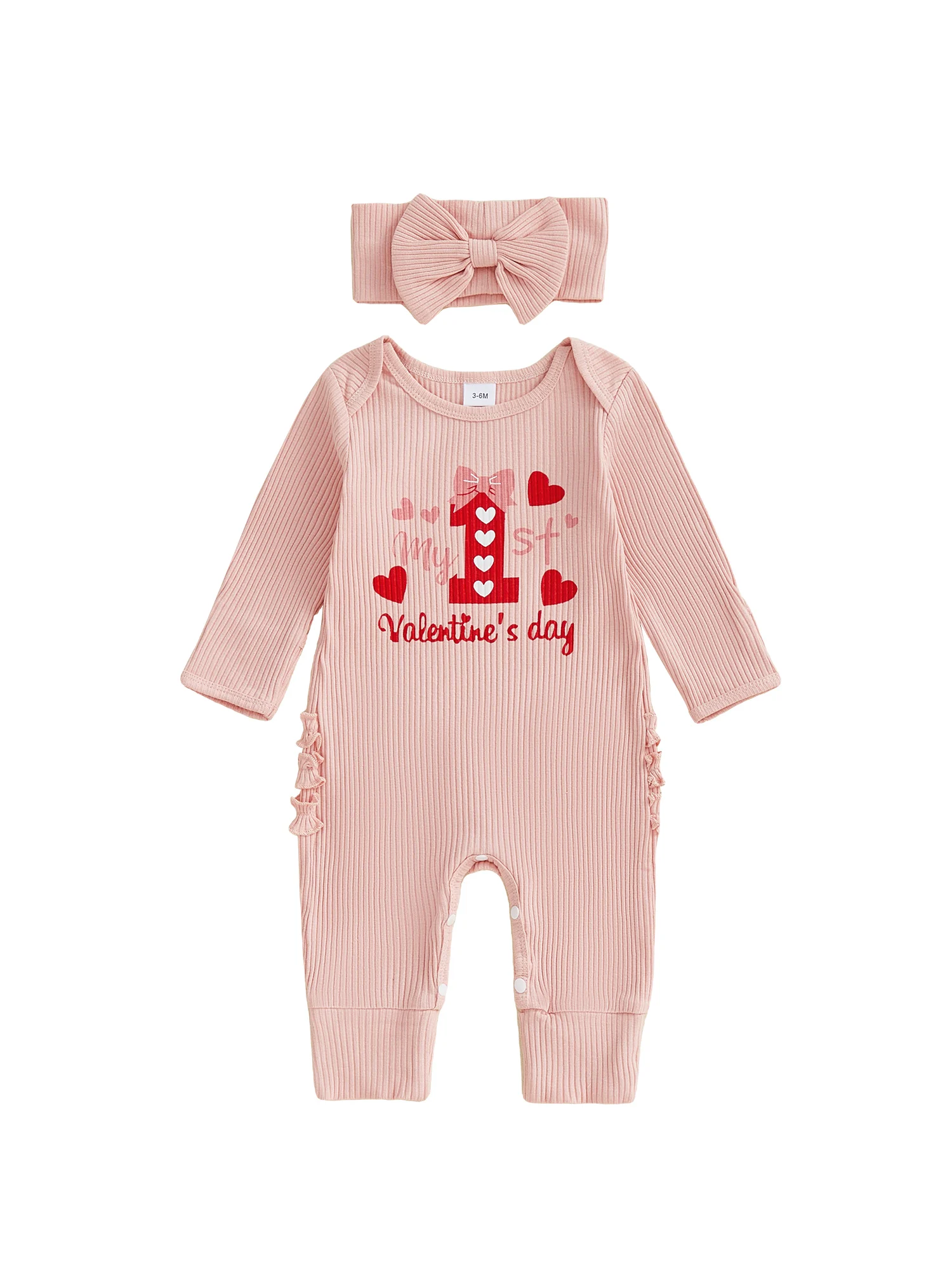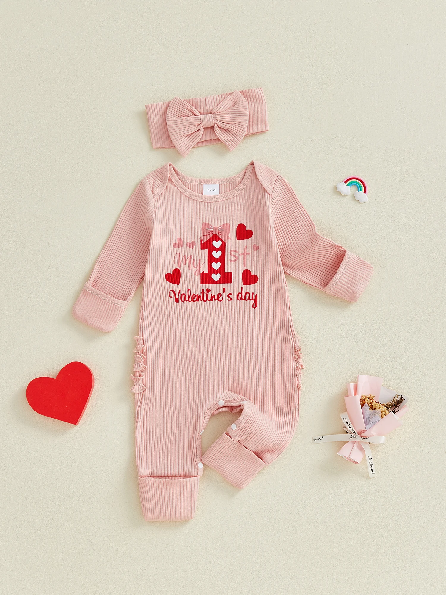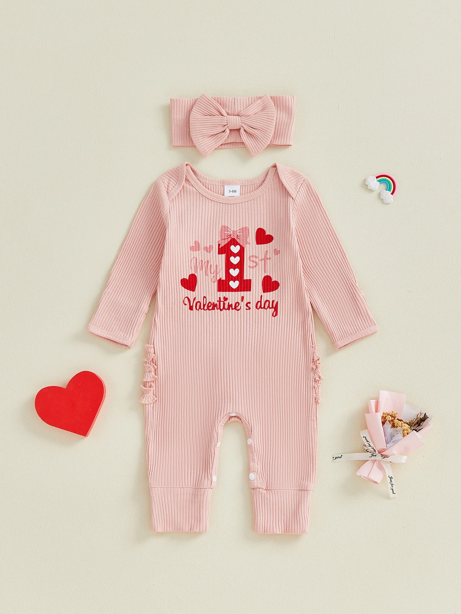 Conjunto de trajes para el día de San Valentín para niña, mono de manga larga con estampado de corazones y diadema, ropa para recién nacido