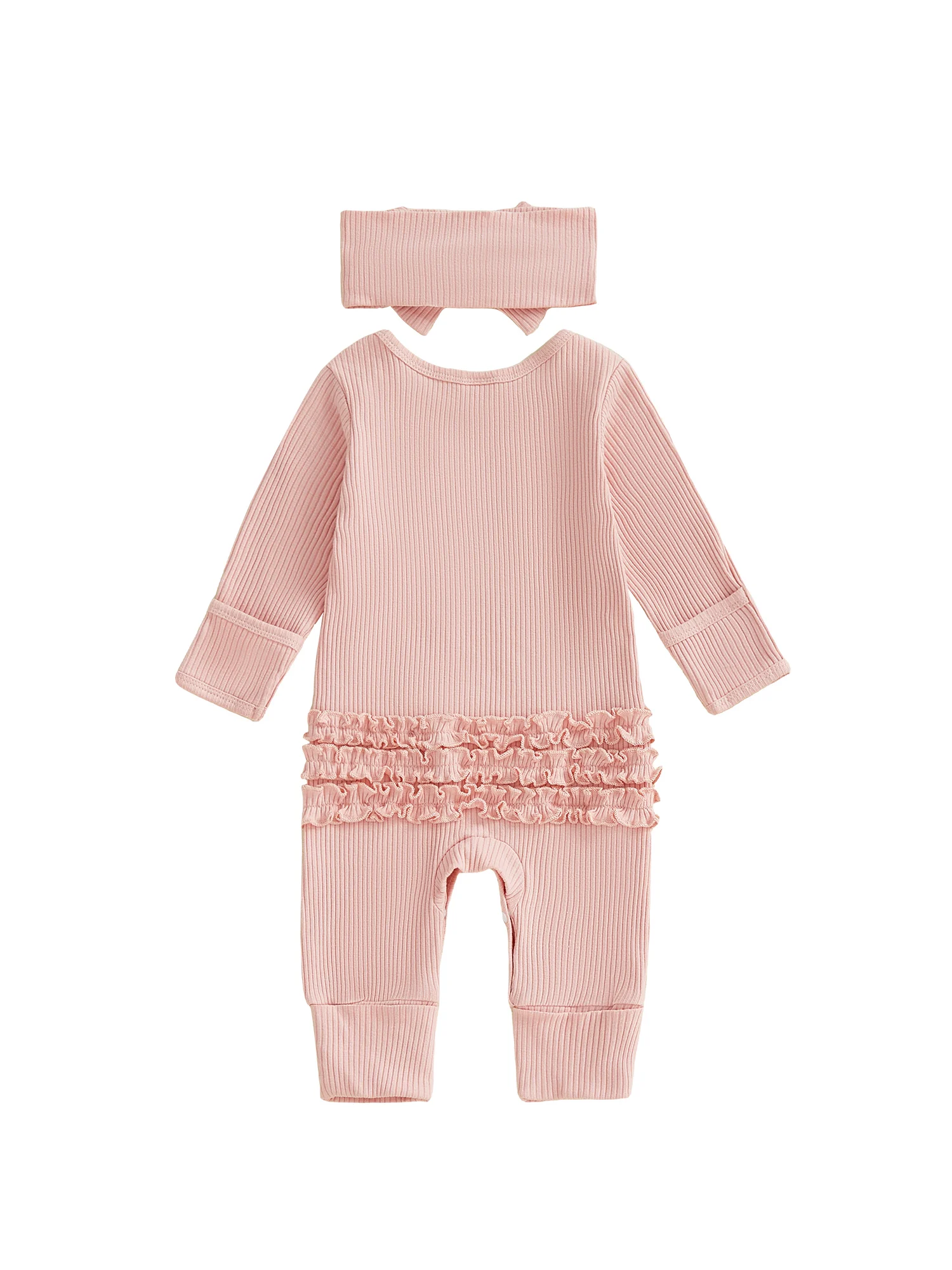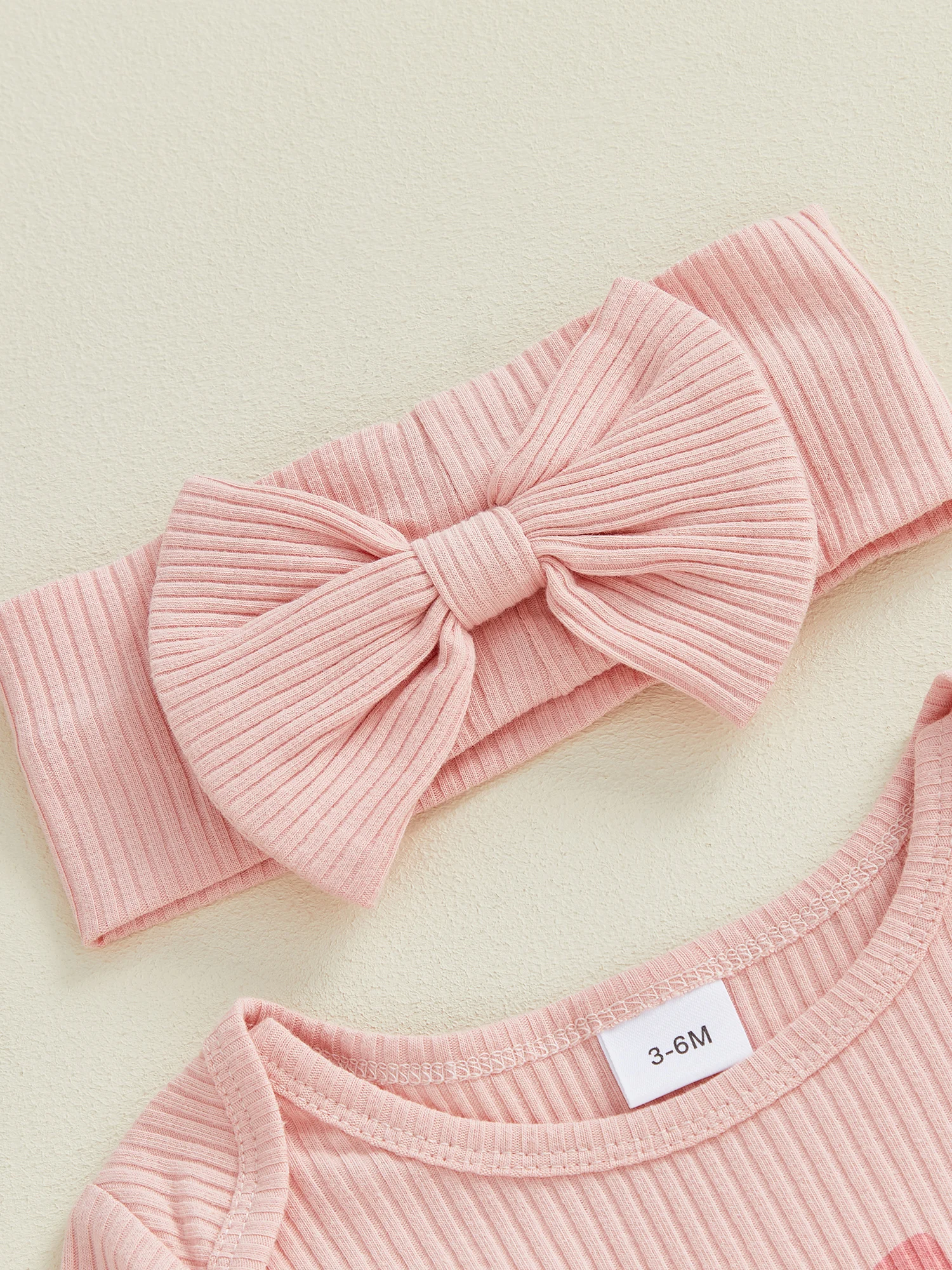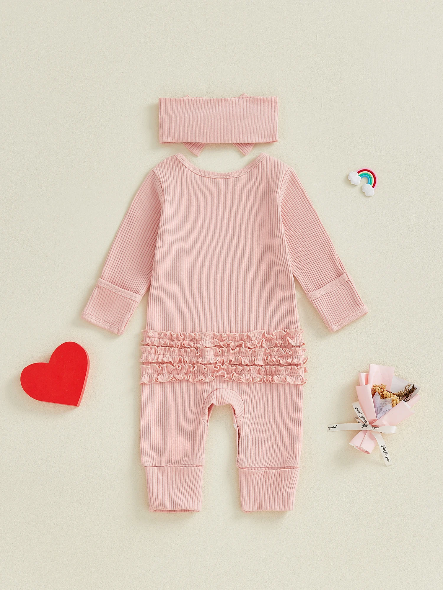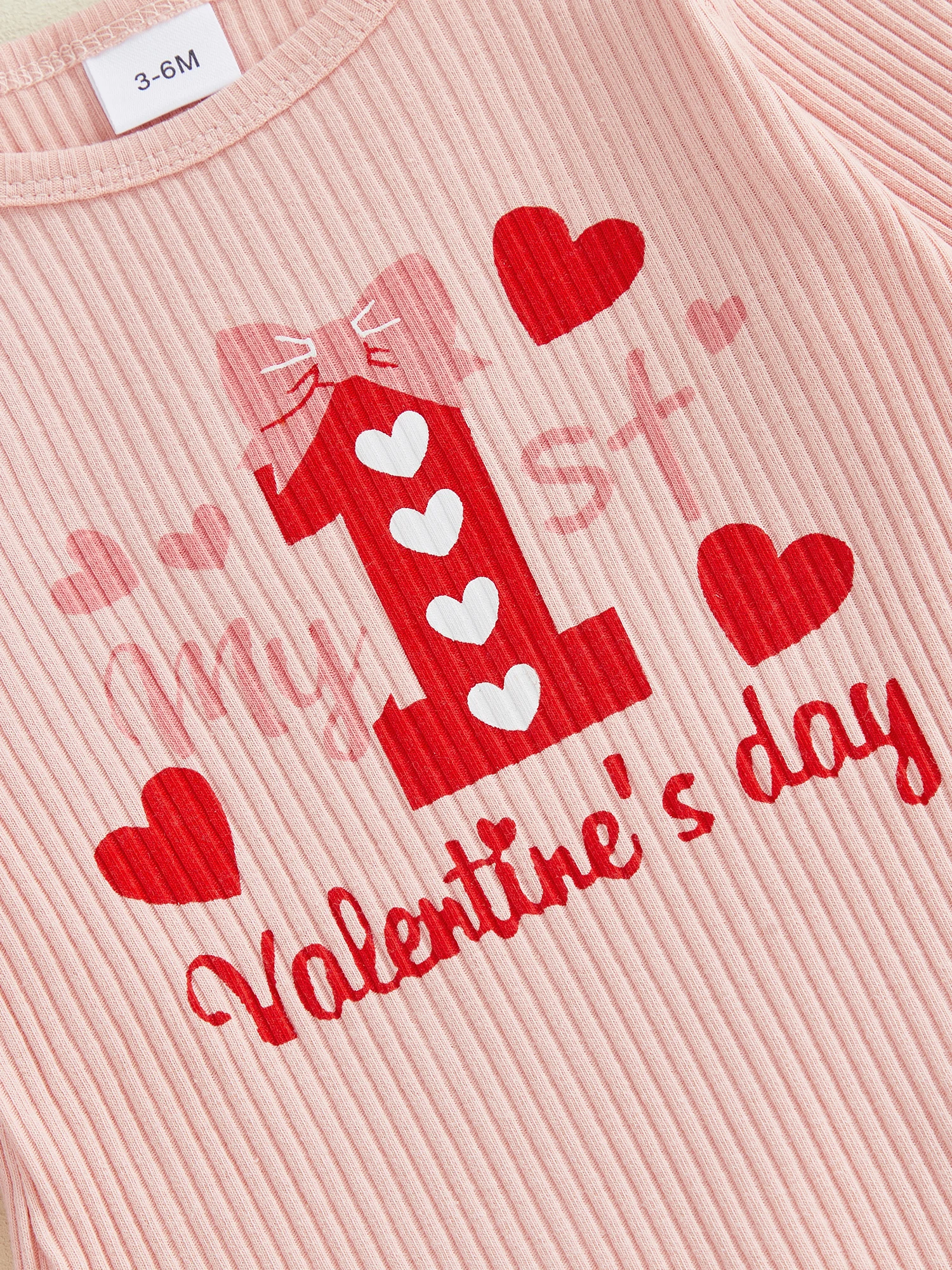 Conjunto de trajes para el día de San Valentín para niña, mono de manga larga con estampado de corazones y diadema, ropa para recién nacido