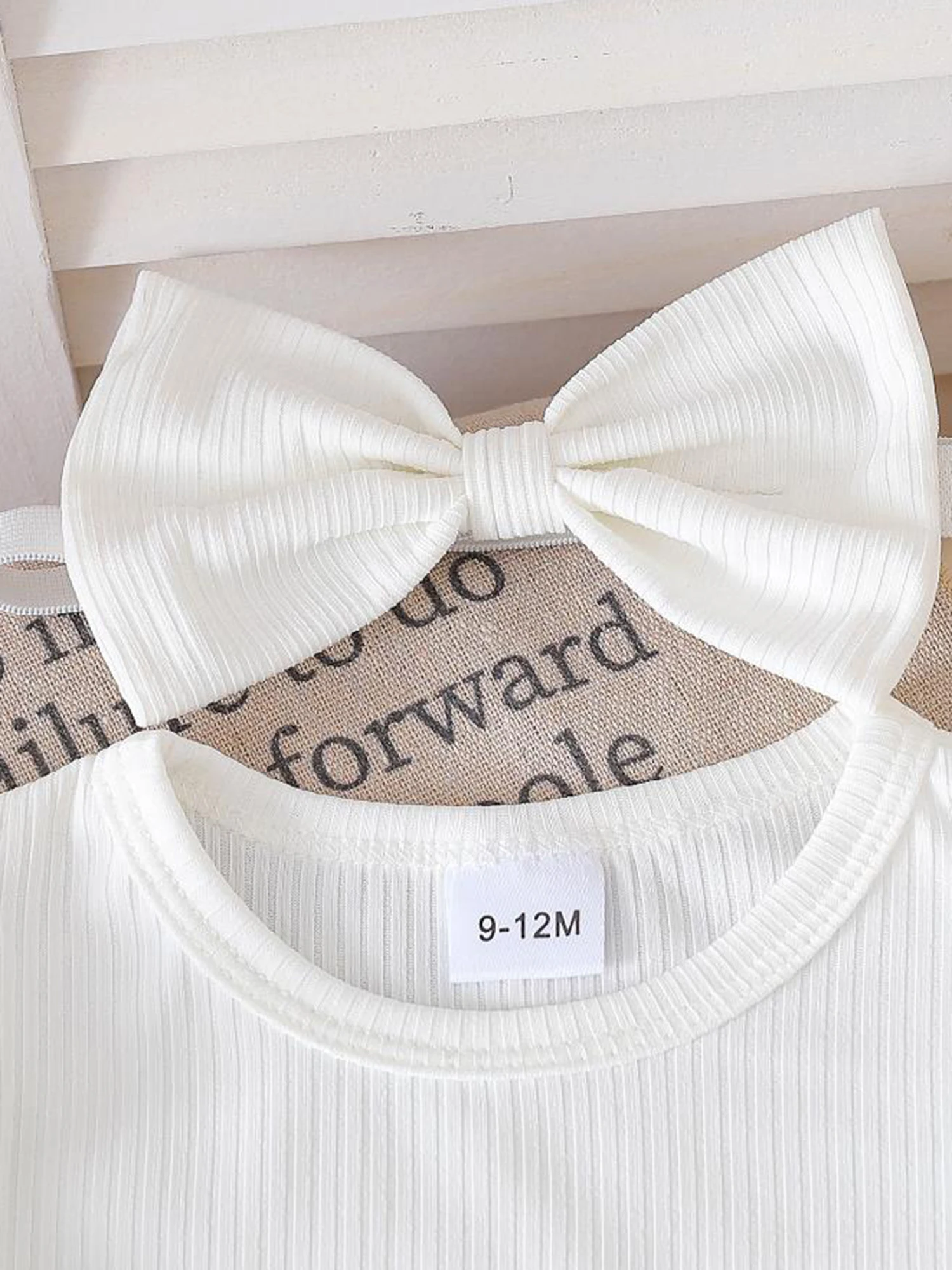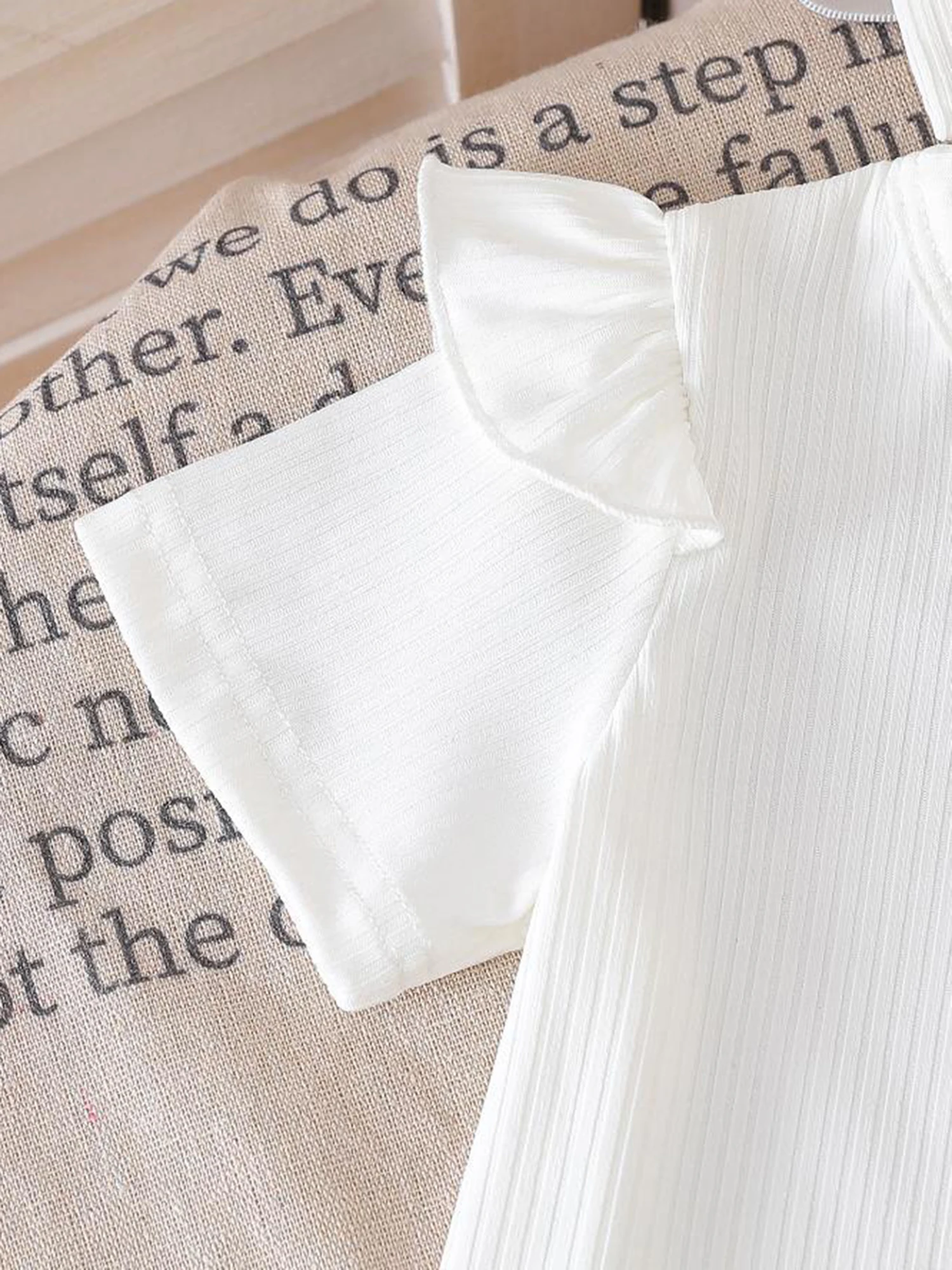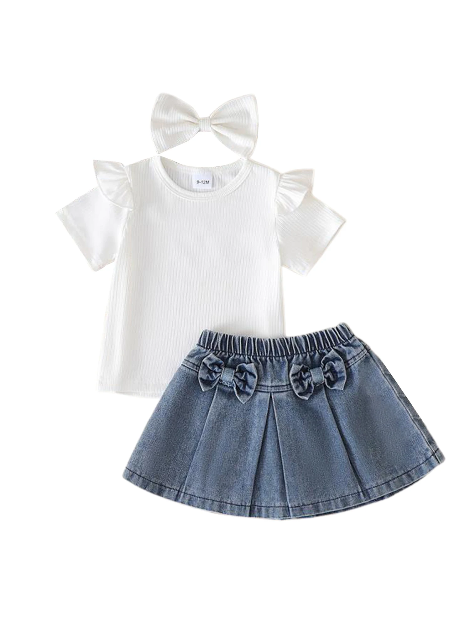 SUNSIOM-Conjunto de verano para niña, camiseta de manga corta con volantes de Color sólido y falda vaquera con lazo, conjunto con diadema, ropa informal bonita