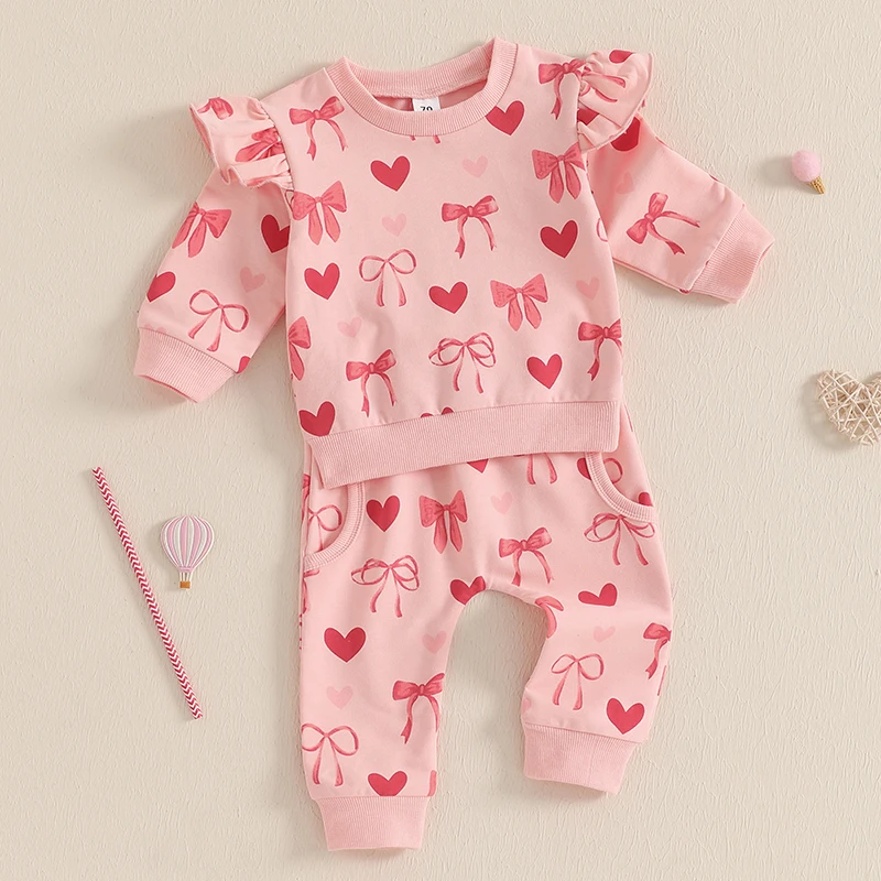 Comprar SUNSIOM Conjuntos de Día de San Valentín para niñas pequeñas de 0 a 3 años, sudadera con estampado de corazón y lazo de manga larga con cuello redondo, conjunto de pantalones con cordón