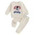 Comprar SUNSIOM Conjuntos navideños de 2 piezas para niñas pequeñas, manga larga, cuello redondo, letra, sombrero de Papá Noel/letras, muñeco de nieve, bordado, tops, pantalones con cordón