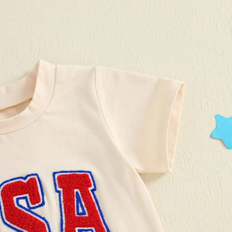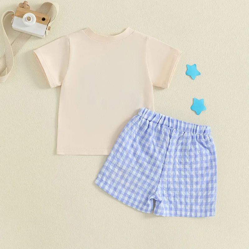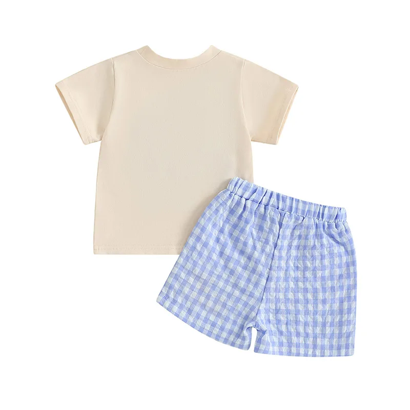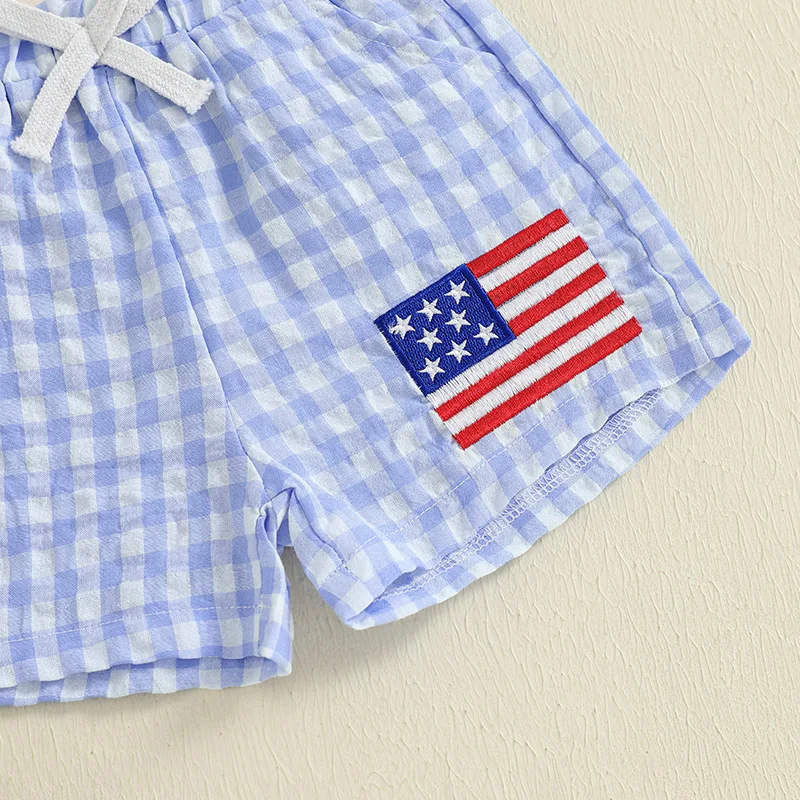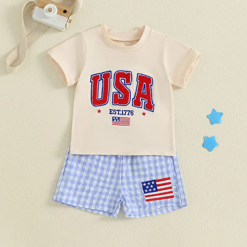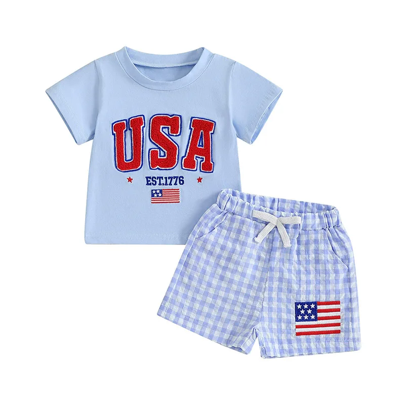 Comprar SUNSIOM Conjuntos patrióticos para bebés de 0 a 4 años, camiseta de manga corta con estampado de letras y pantalones cortos elásticos a cuadros, conjunto de ropa de 2 piezas