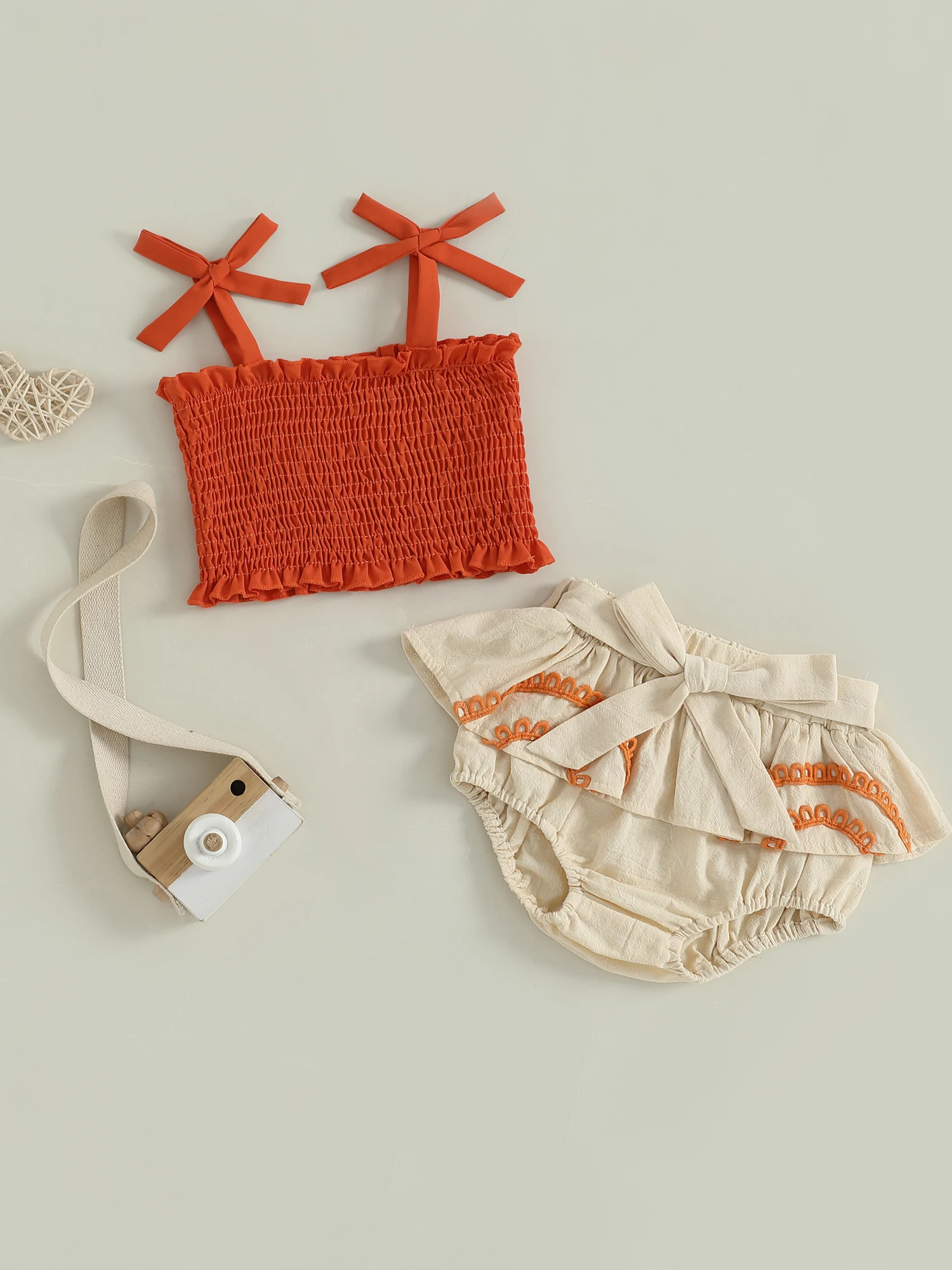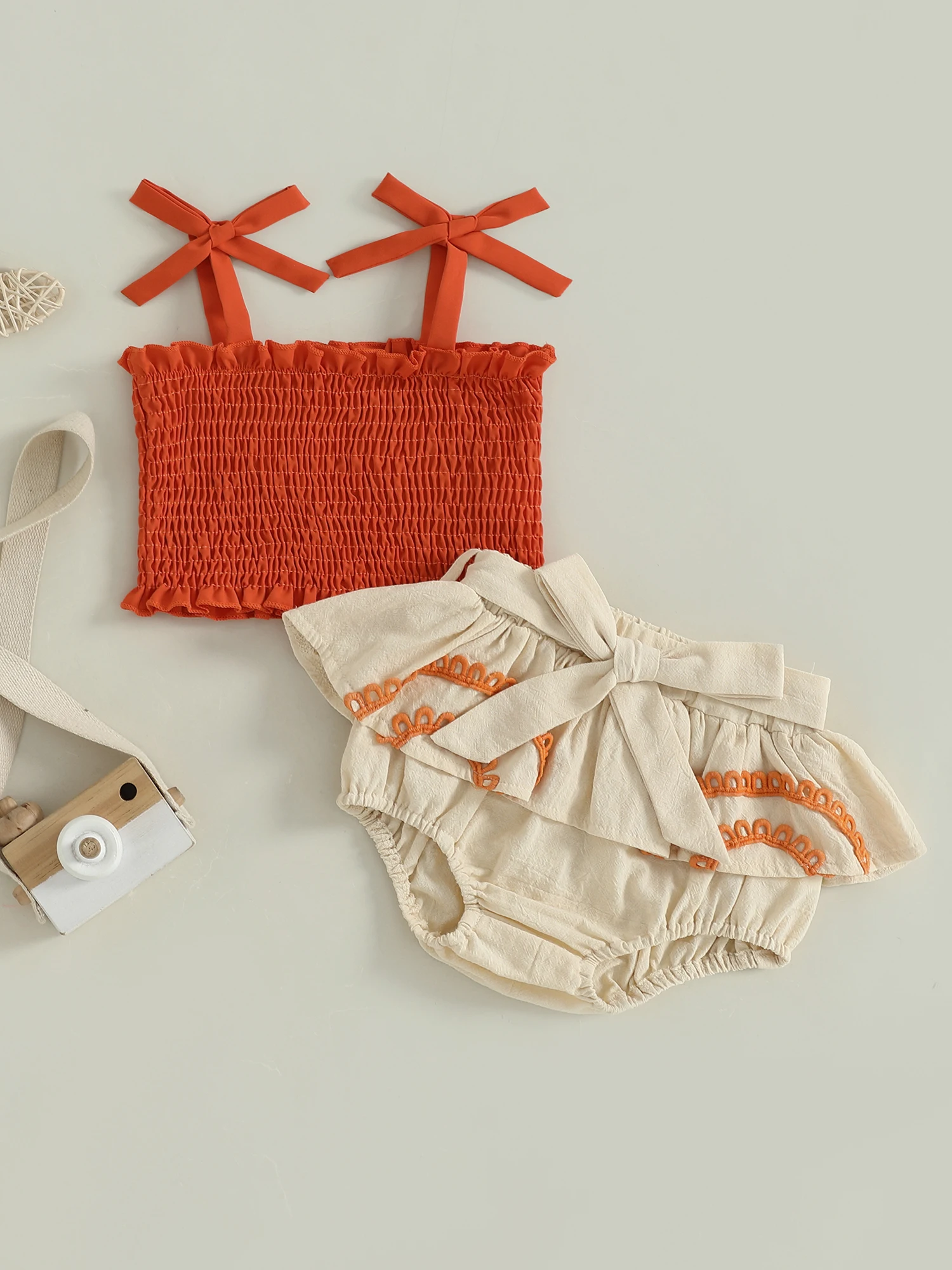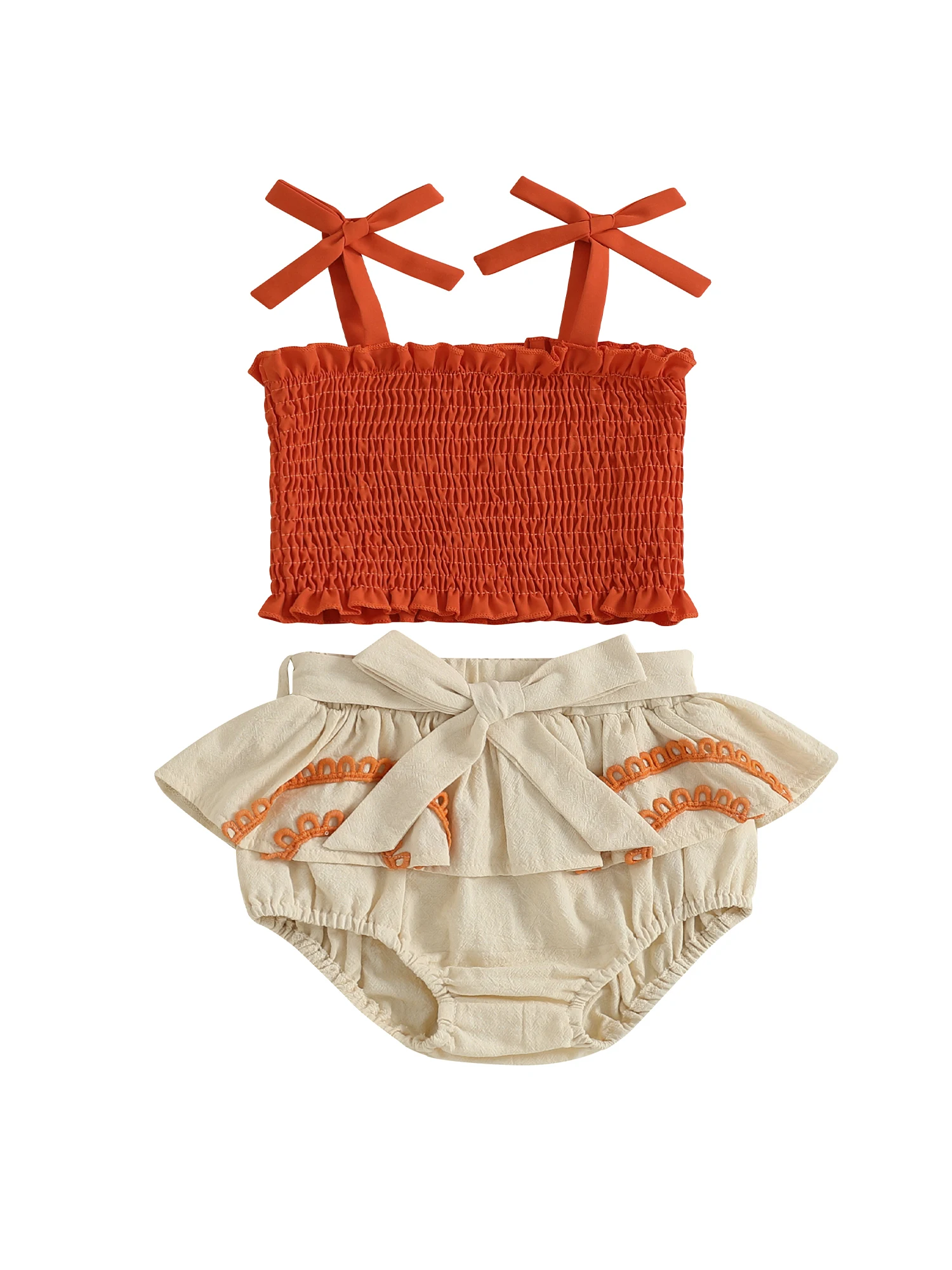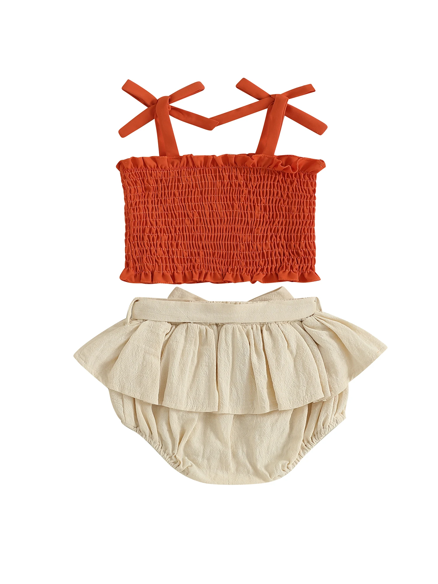 Comprar SUNSIOM Conjuntos de verano para niña de 0 a 24 meses, sin mangas, con tirantes y lazo, Tops ahumados y pantalones cortos, conjunto de ropa para recién nacido