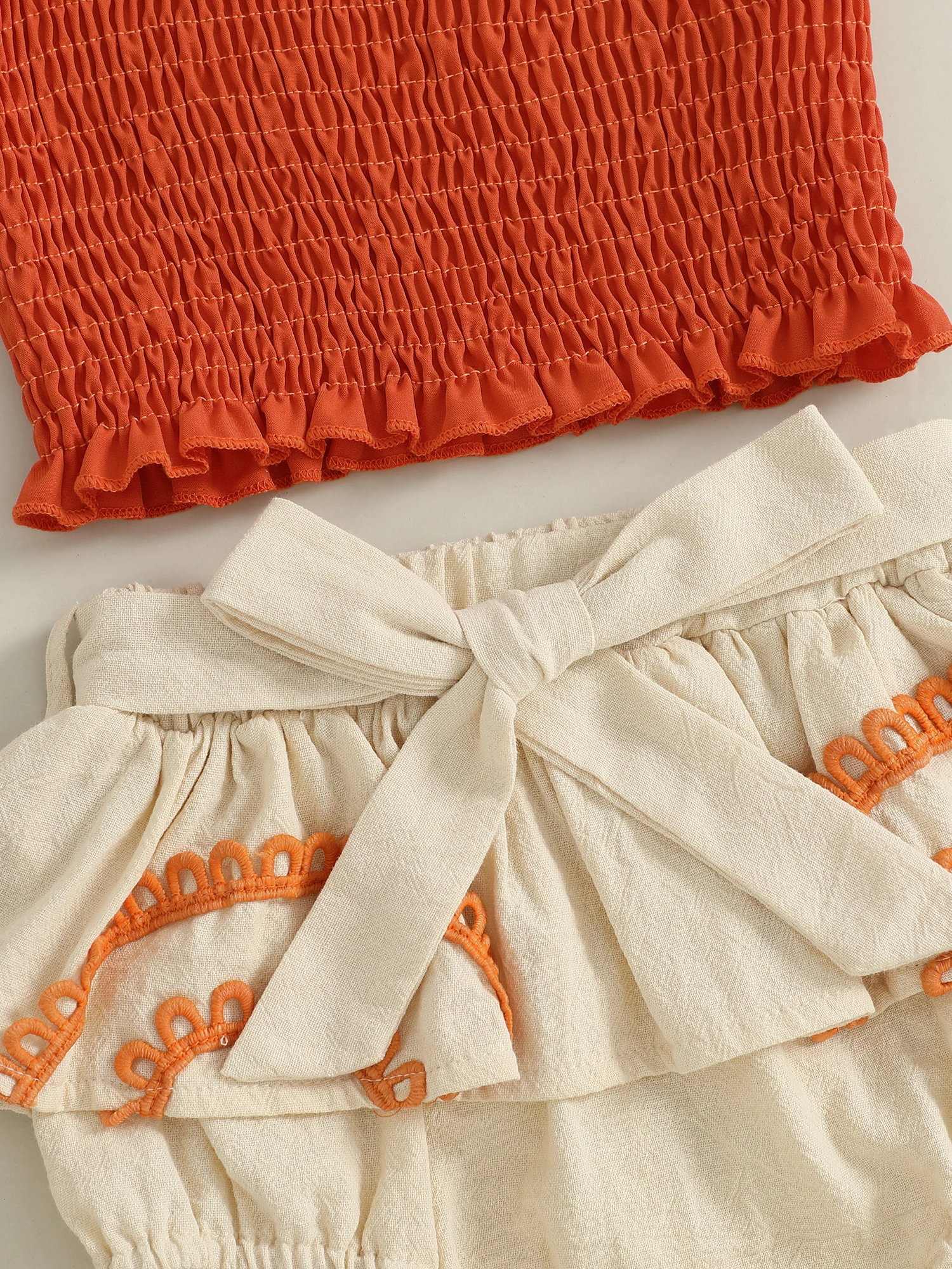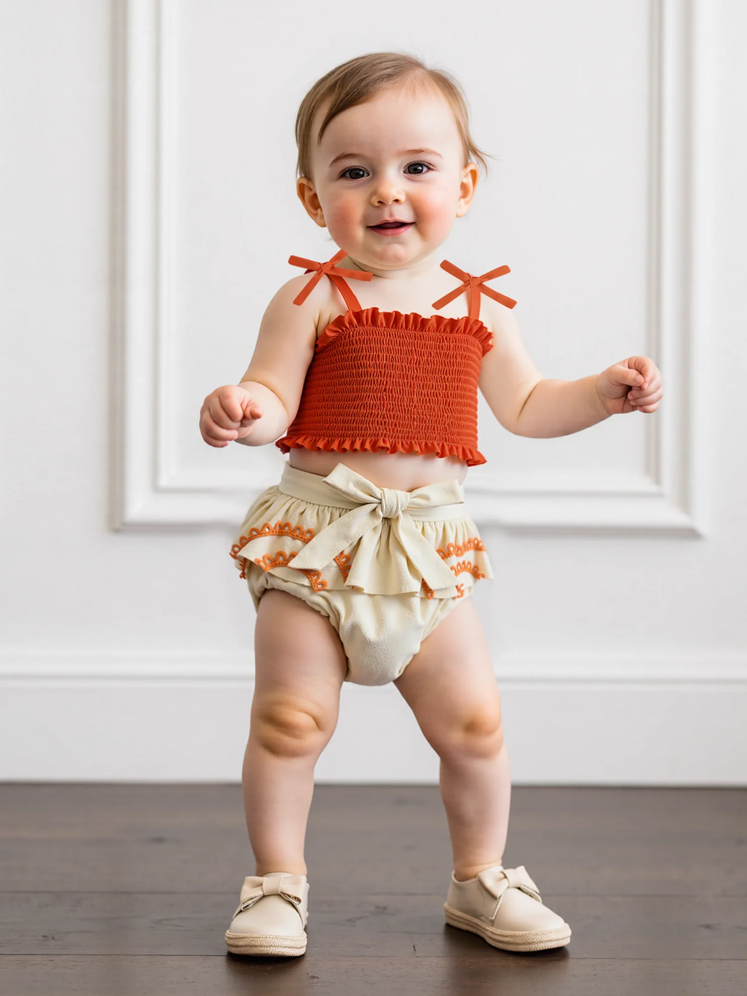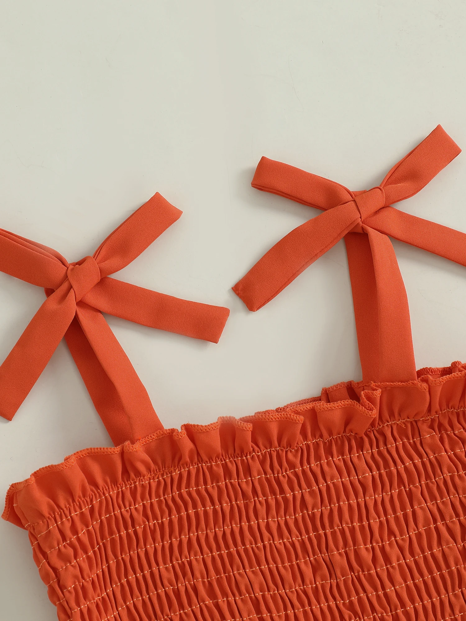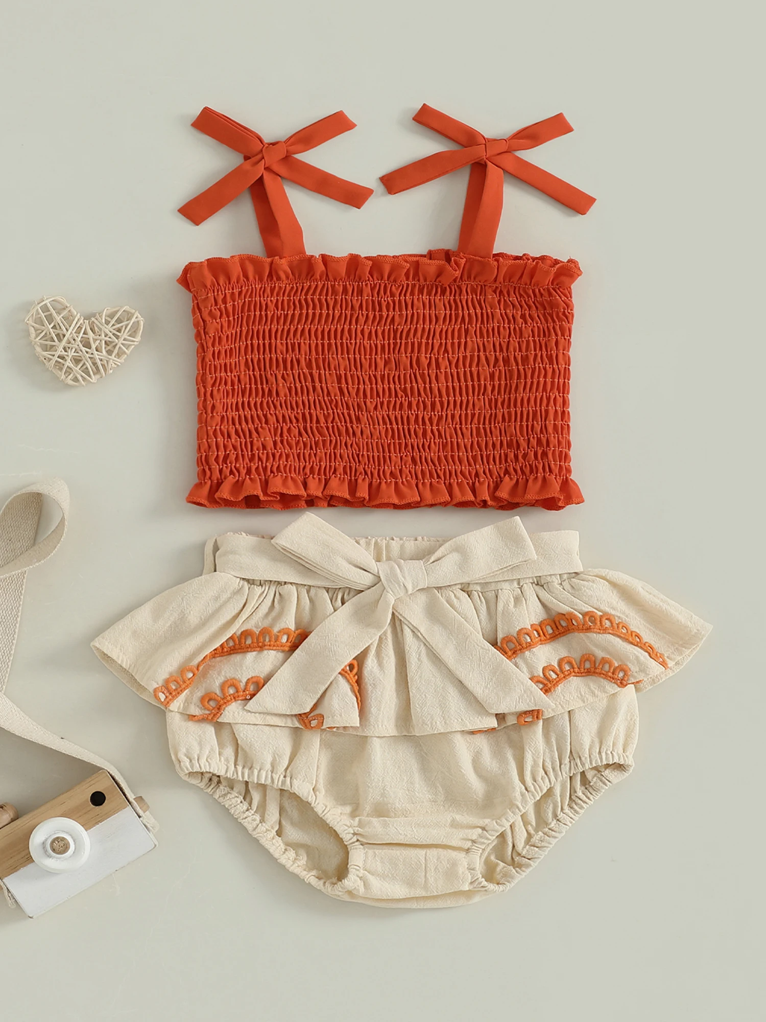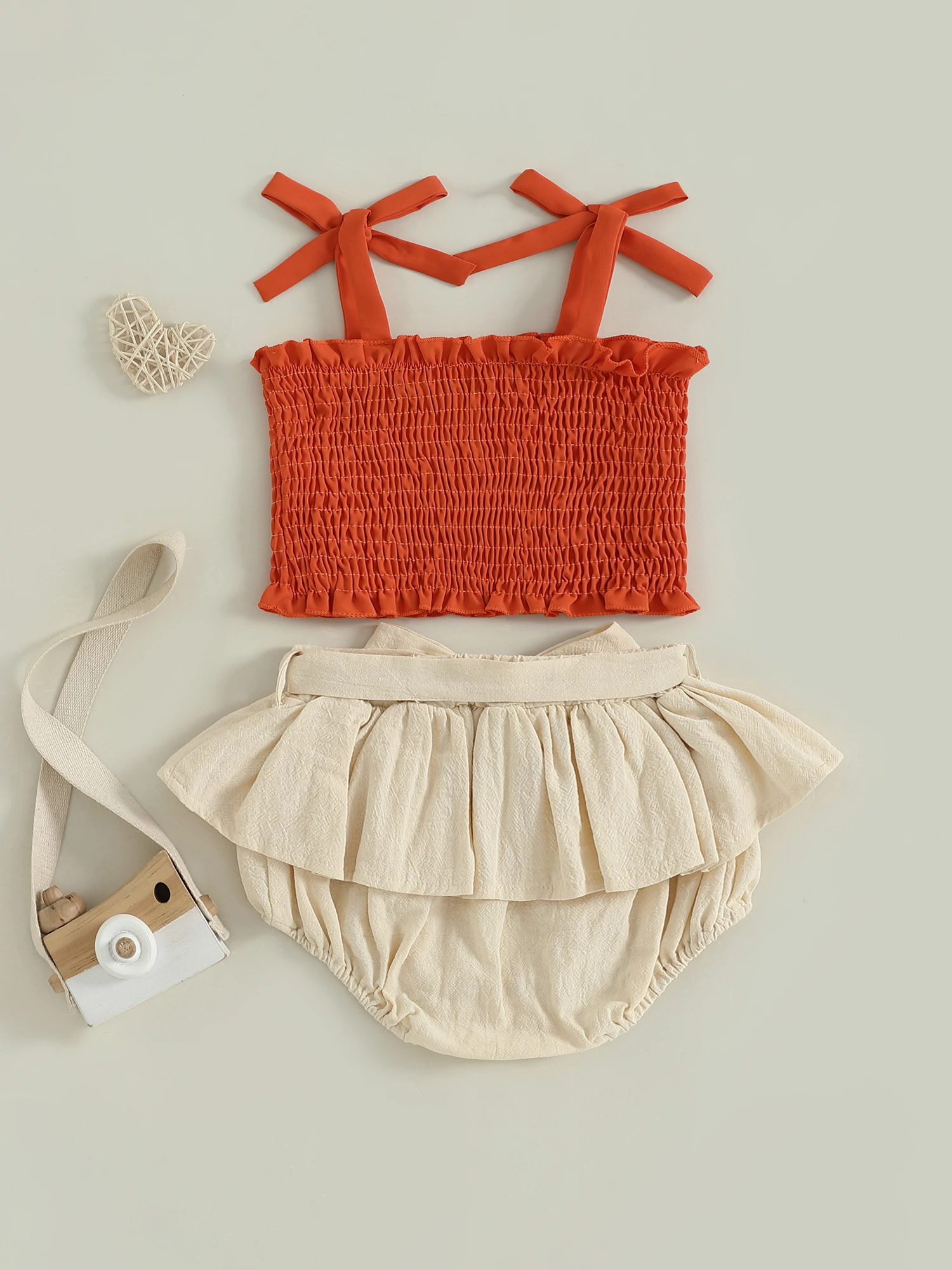 Comprar SUNSIOM Conjuntos de verano para niña de 0 a 24 meses, sin mangas, con tirantes y lazo, Tops ahumados y pantalones cortos, conjunto de ropa para recién nacido