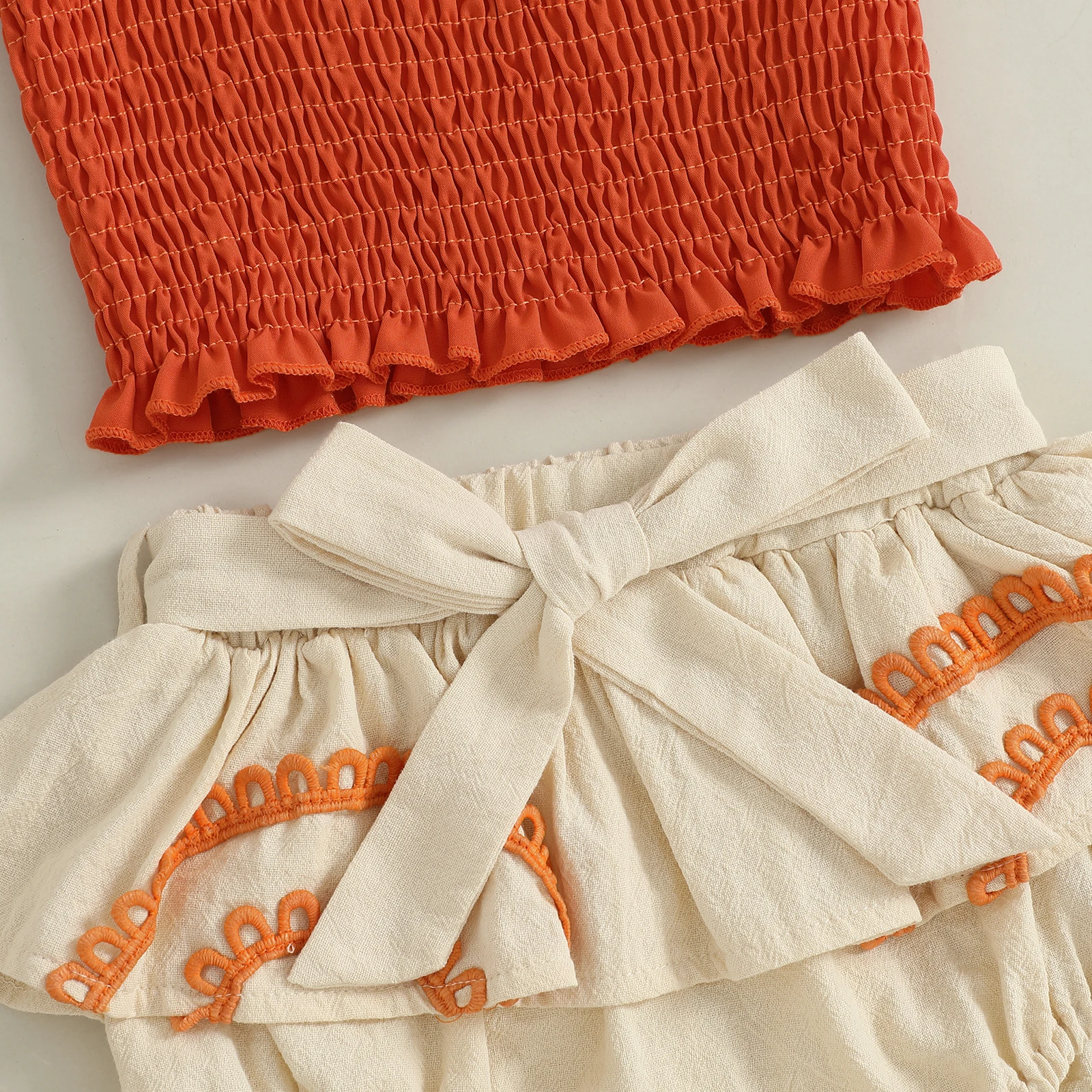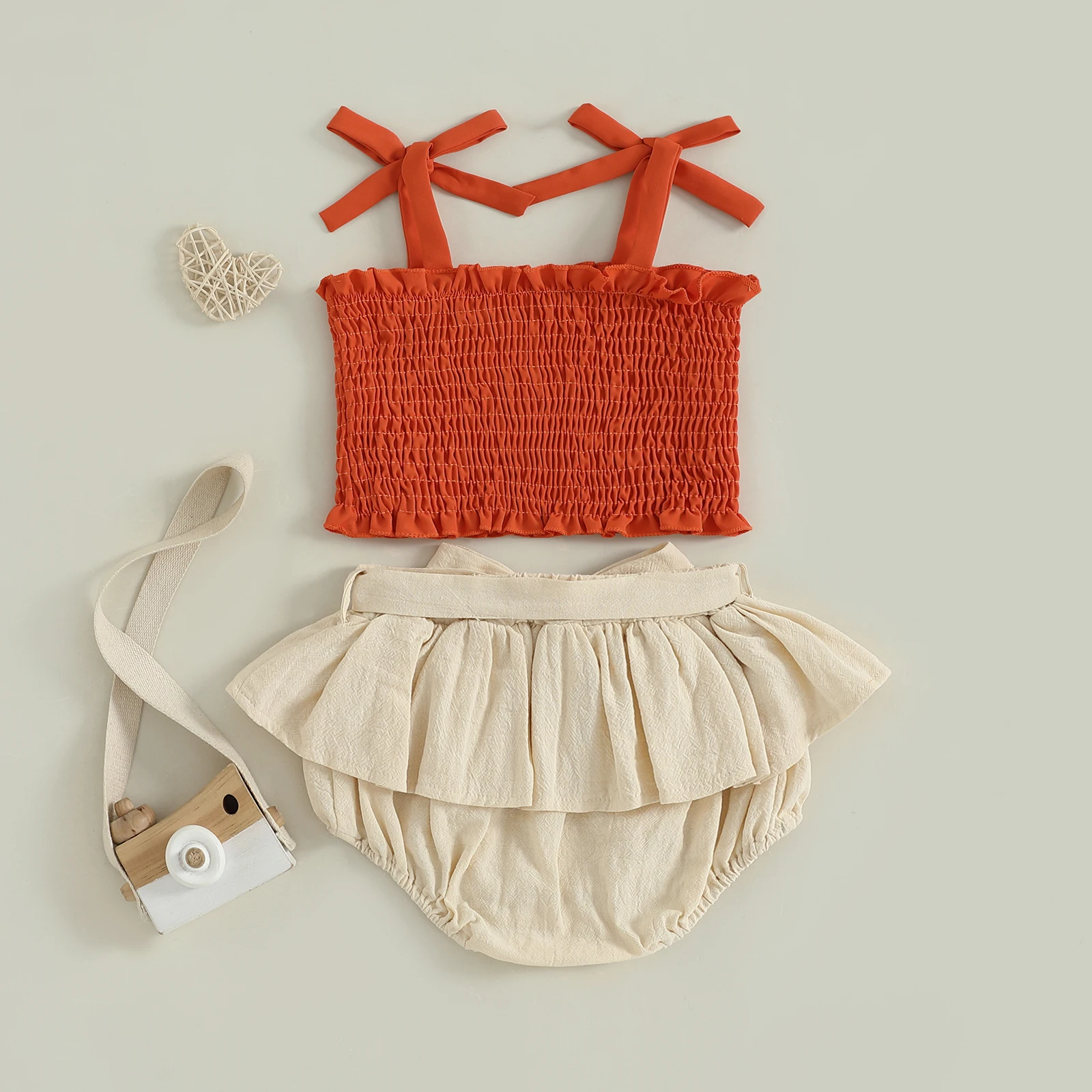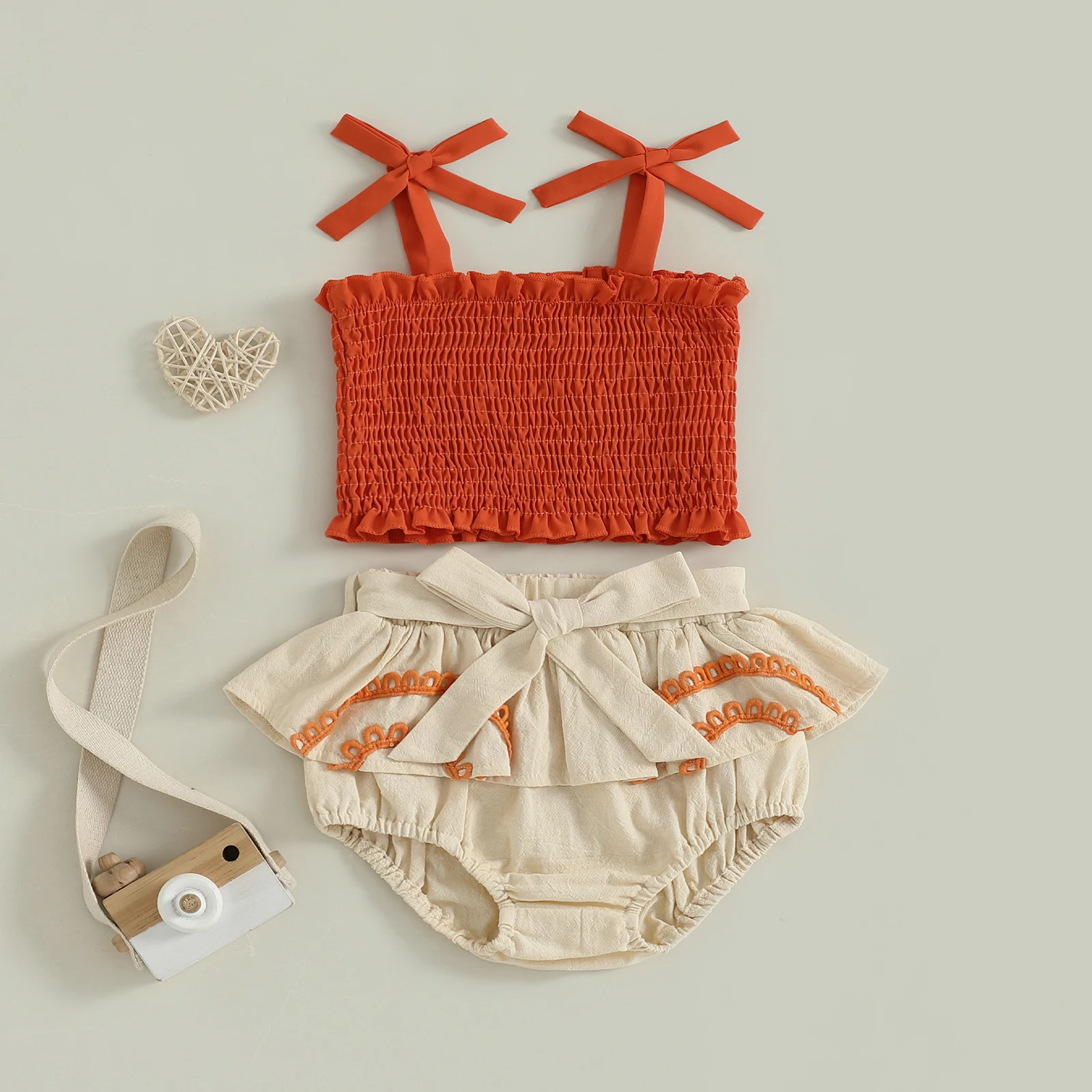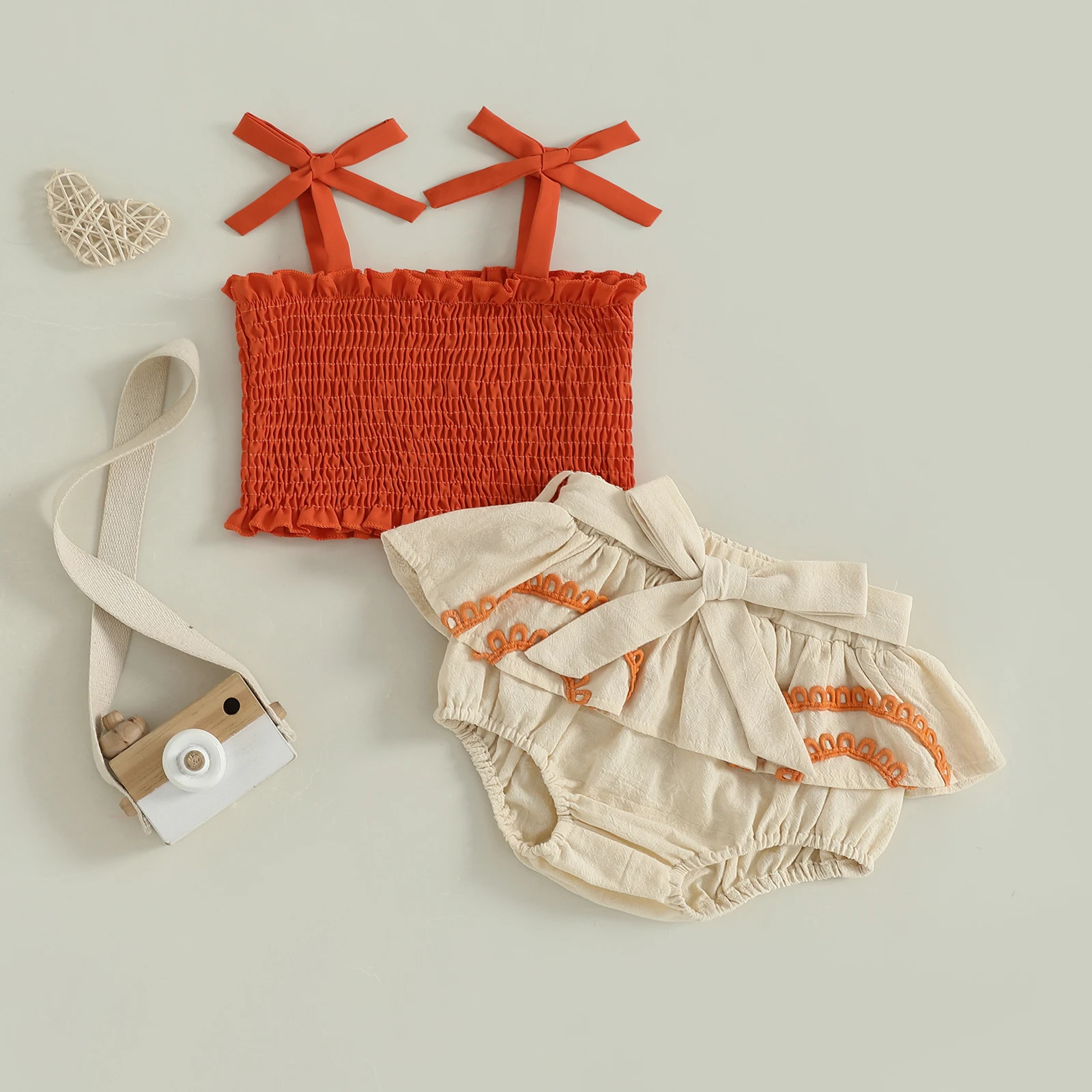 Comprar SUNSIOM Conjuntos de verano para niña de 0 a 24 meses, sin mangas, con tirantes y lazo, Tops ahumados y pantalones cortos, conjunto de ropa para recién nacido