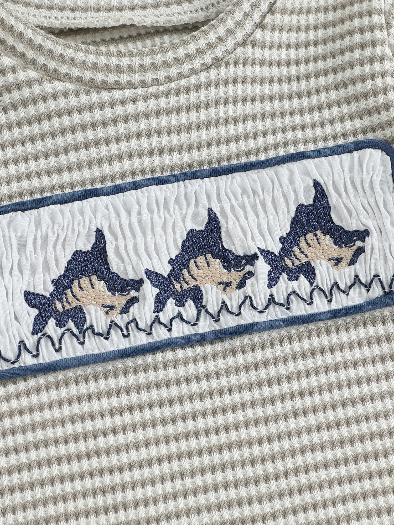 SUNSIOM Conjuntos de verano para niños pequeños de 0 a 3 años, camisetas de manga corta con bordado de peces gofres y cuello redondo con pantalones cortos sólidos, conjunto de 2 piezas