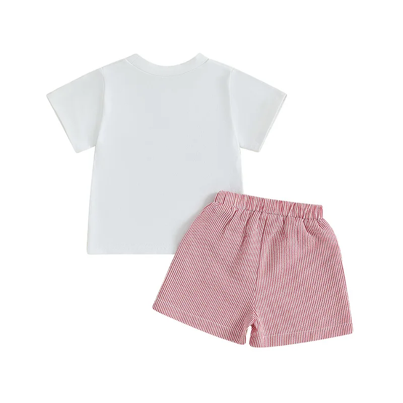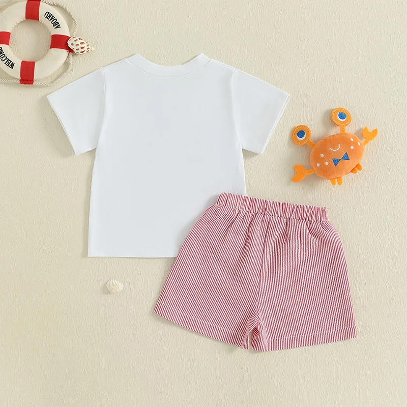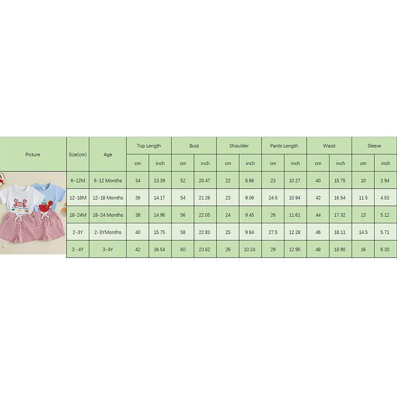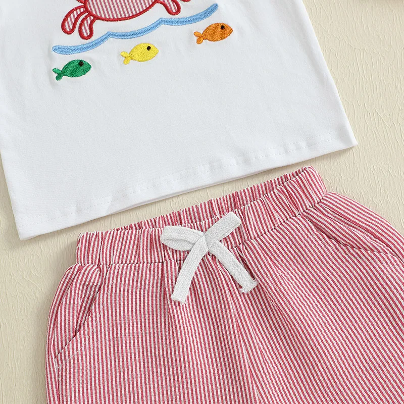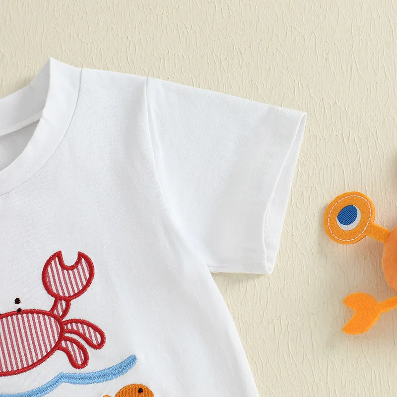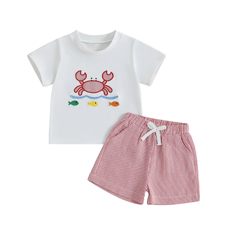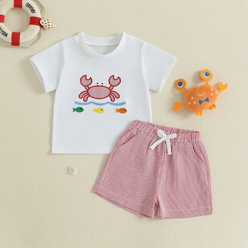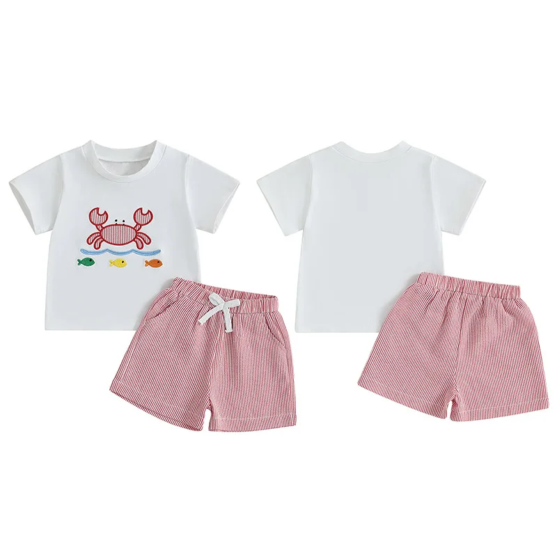 Comprar SUNSIOM Conjuntos de verano para niños pequeños, camisetas de manga corta con bordado de cangrejo, pantalones cortos de cintura elástica, conjunto de ropa de 2 piezas