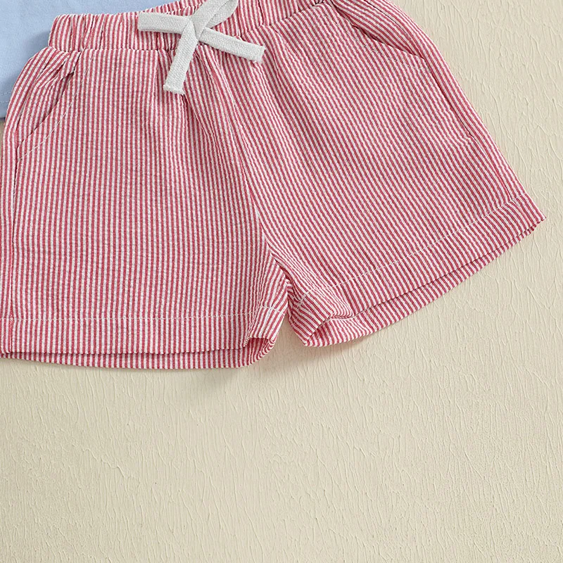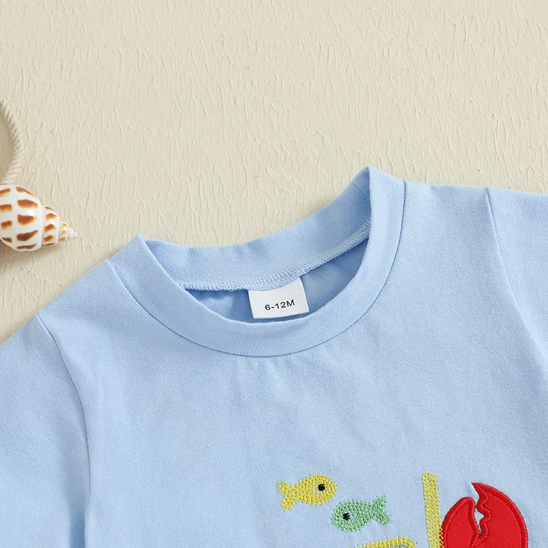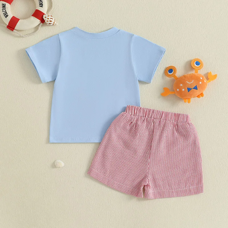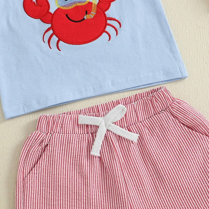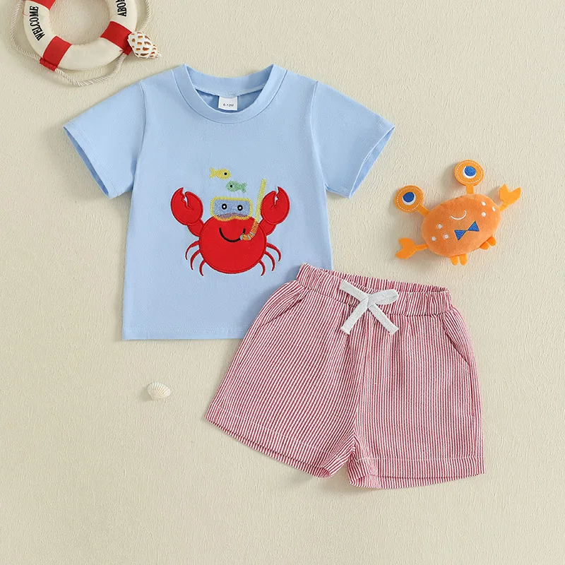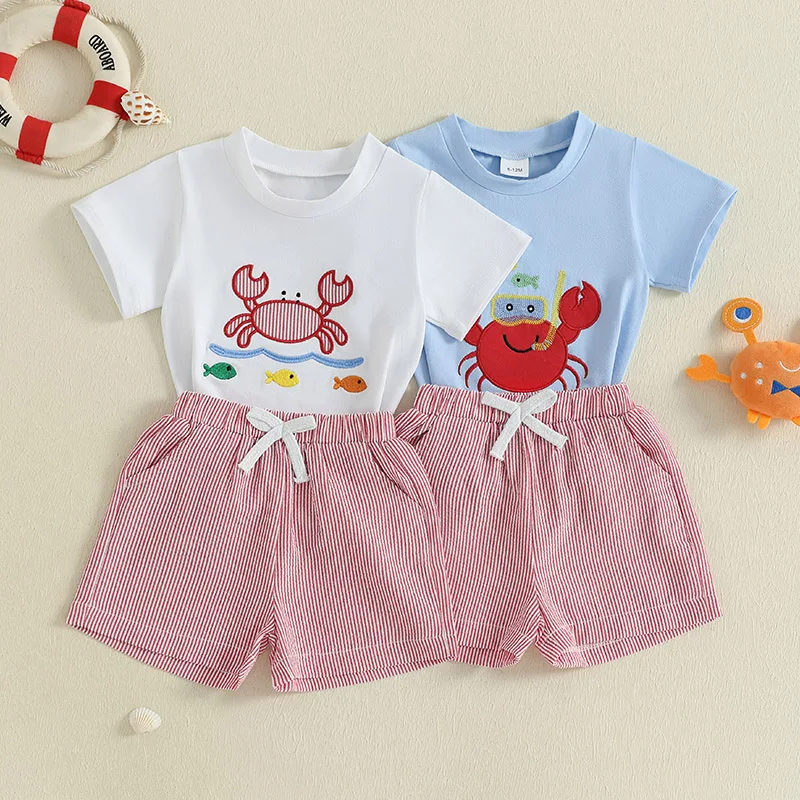 Comprar SUNSIOM Conjuntos de verano para niños pequeños, camisetas de manga corta con bordado de cangrejo, pantalones cortos de cintura elástica, conjunto de ropa de 2 piezas