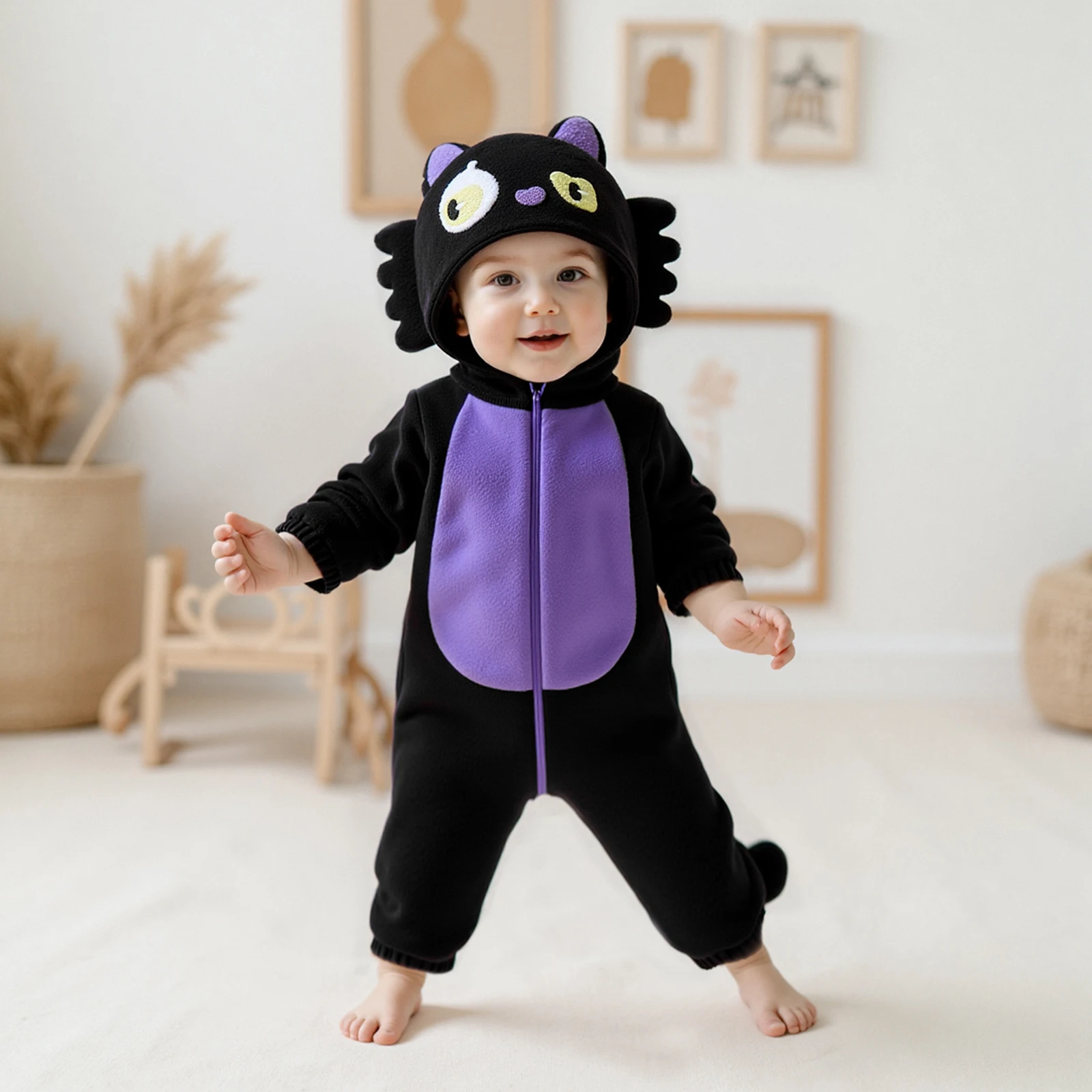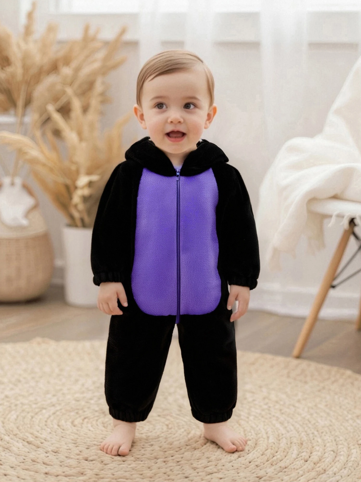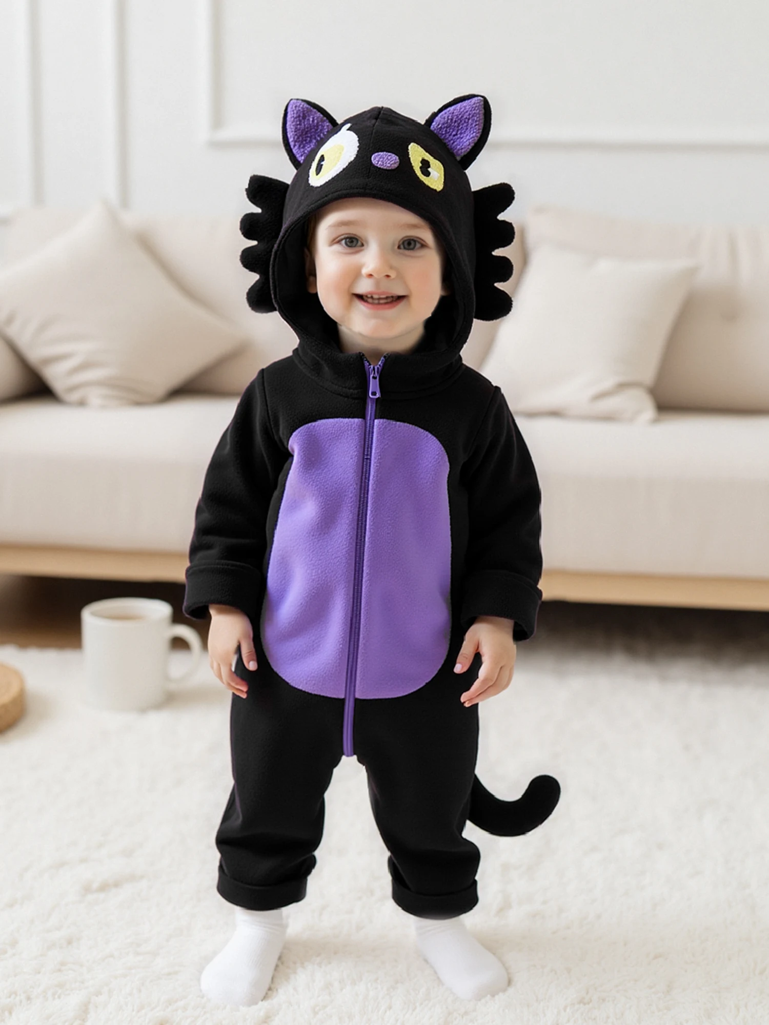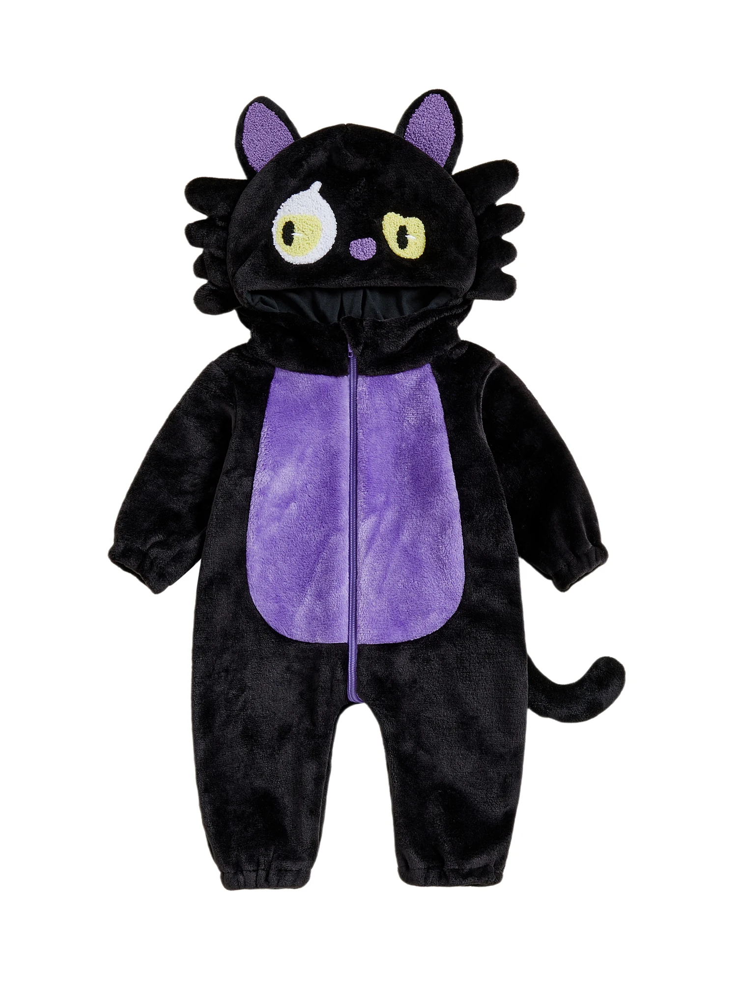 Disfraz de gato negro para bebé, mono con capucha de felpa de manga larga para niños y niñas, pelele para recién nacido