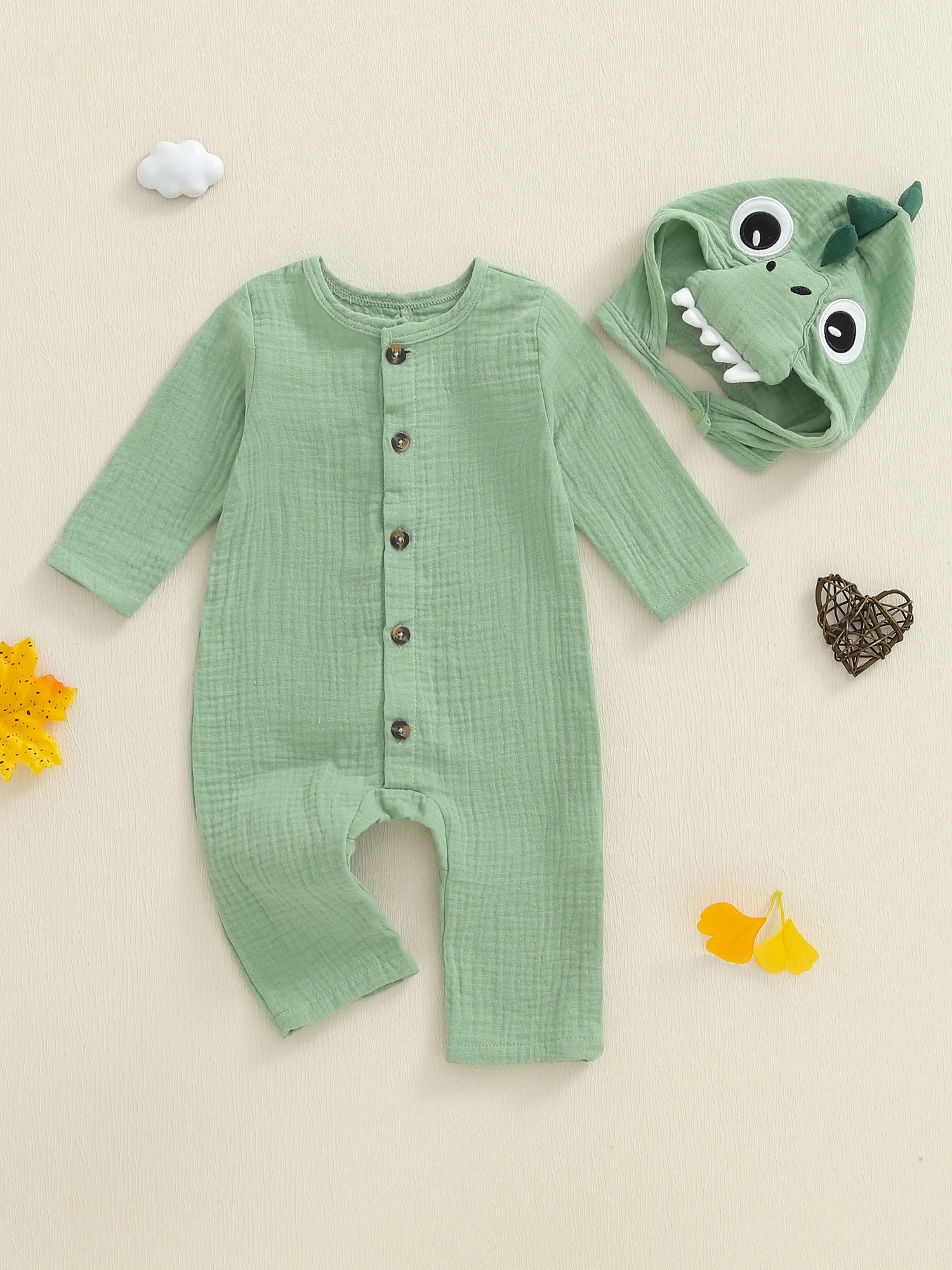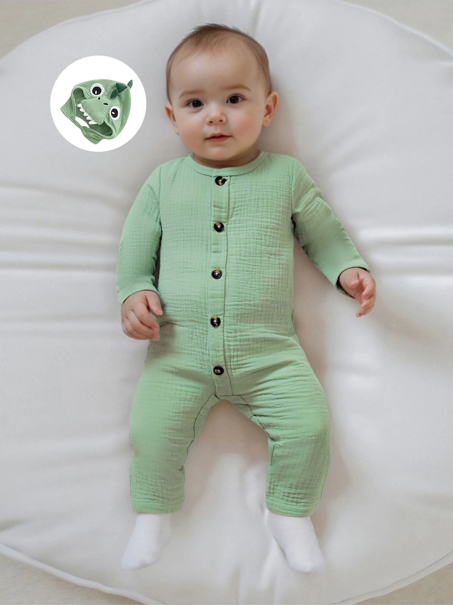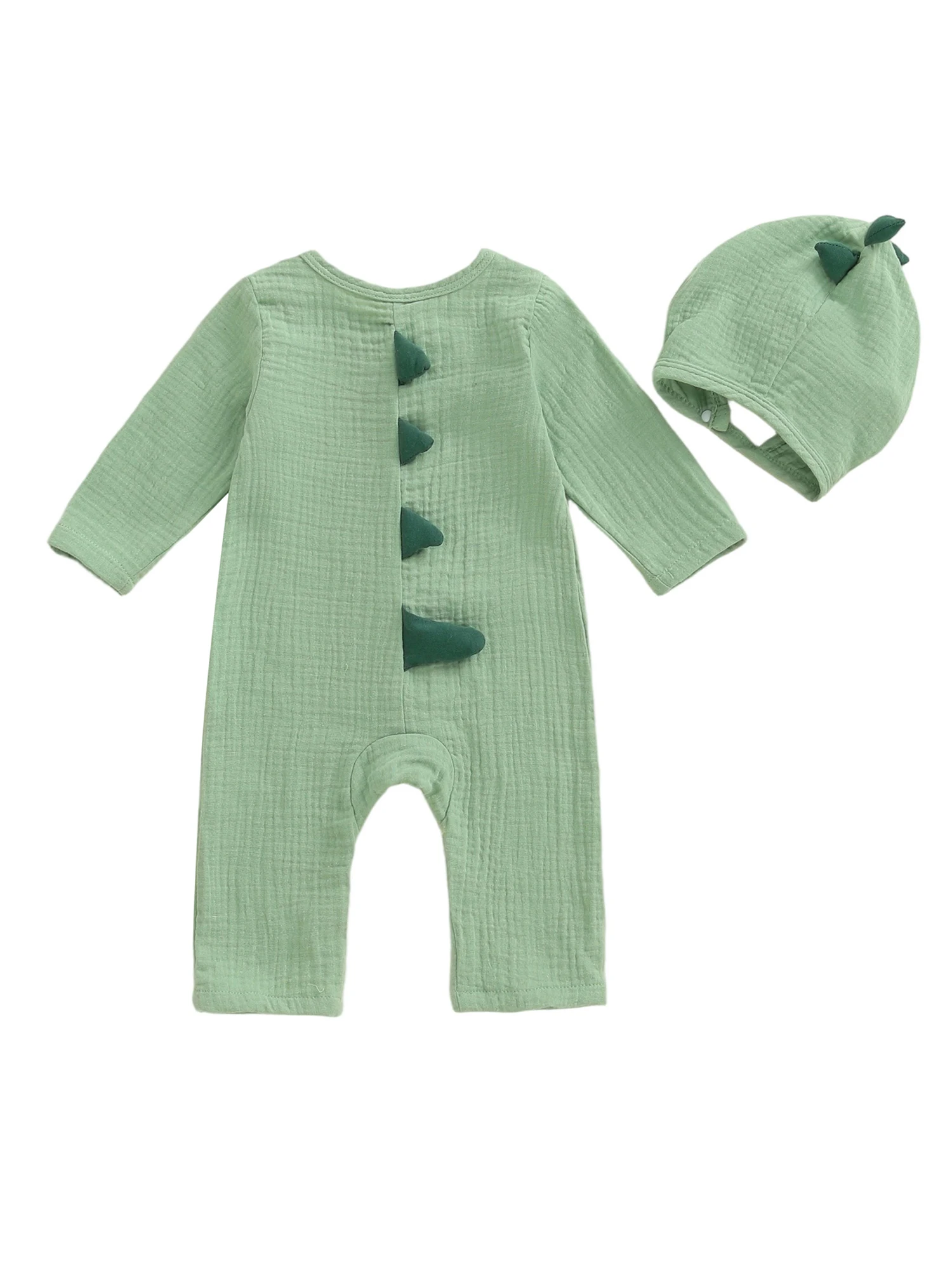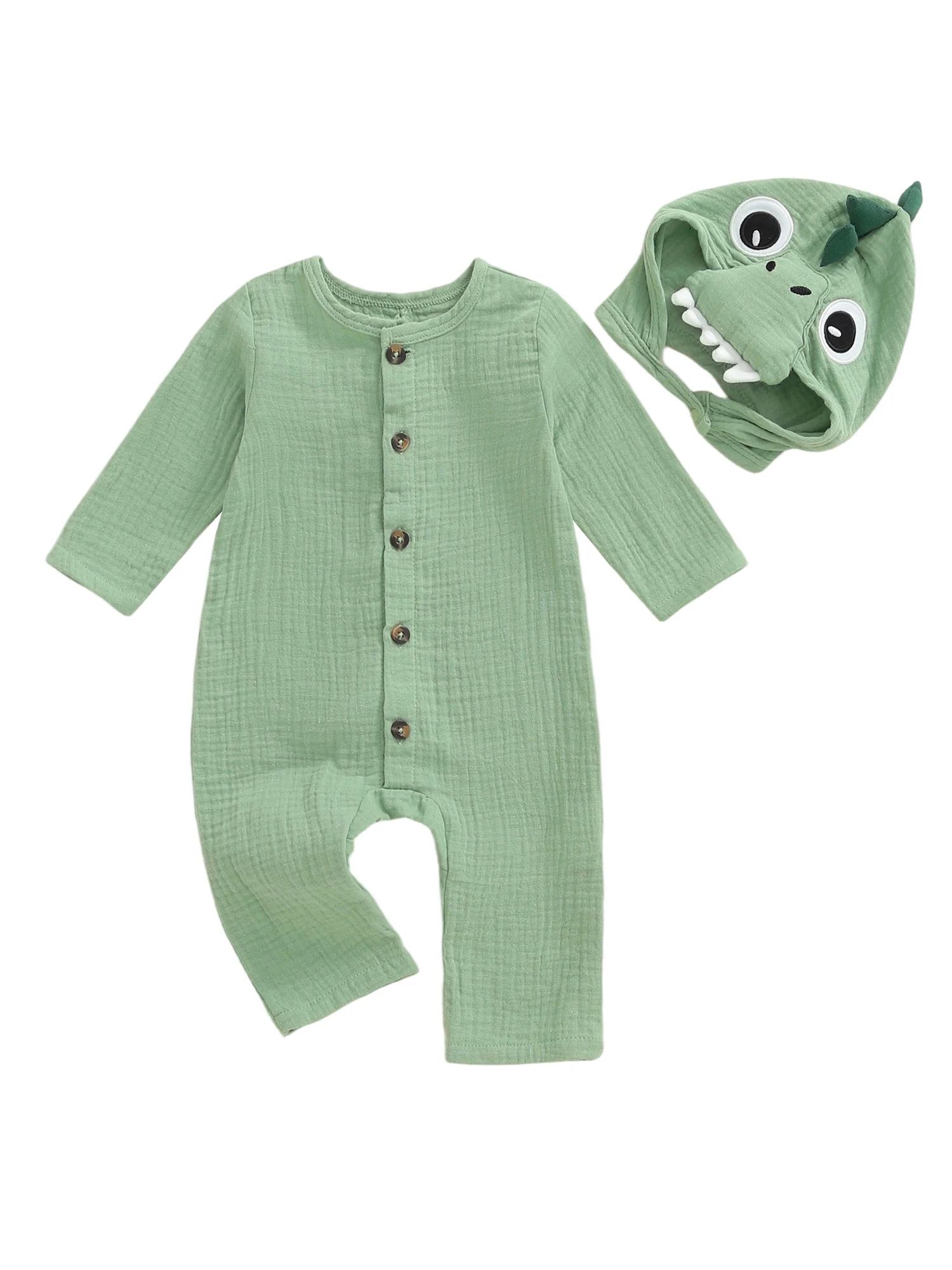 Bebé recién nacido niño niña mameluco dinosaurio temático cuello redondo manga larga abotonado mono de longitud completa con sombrero
