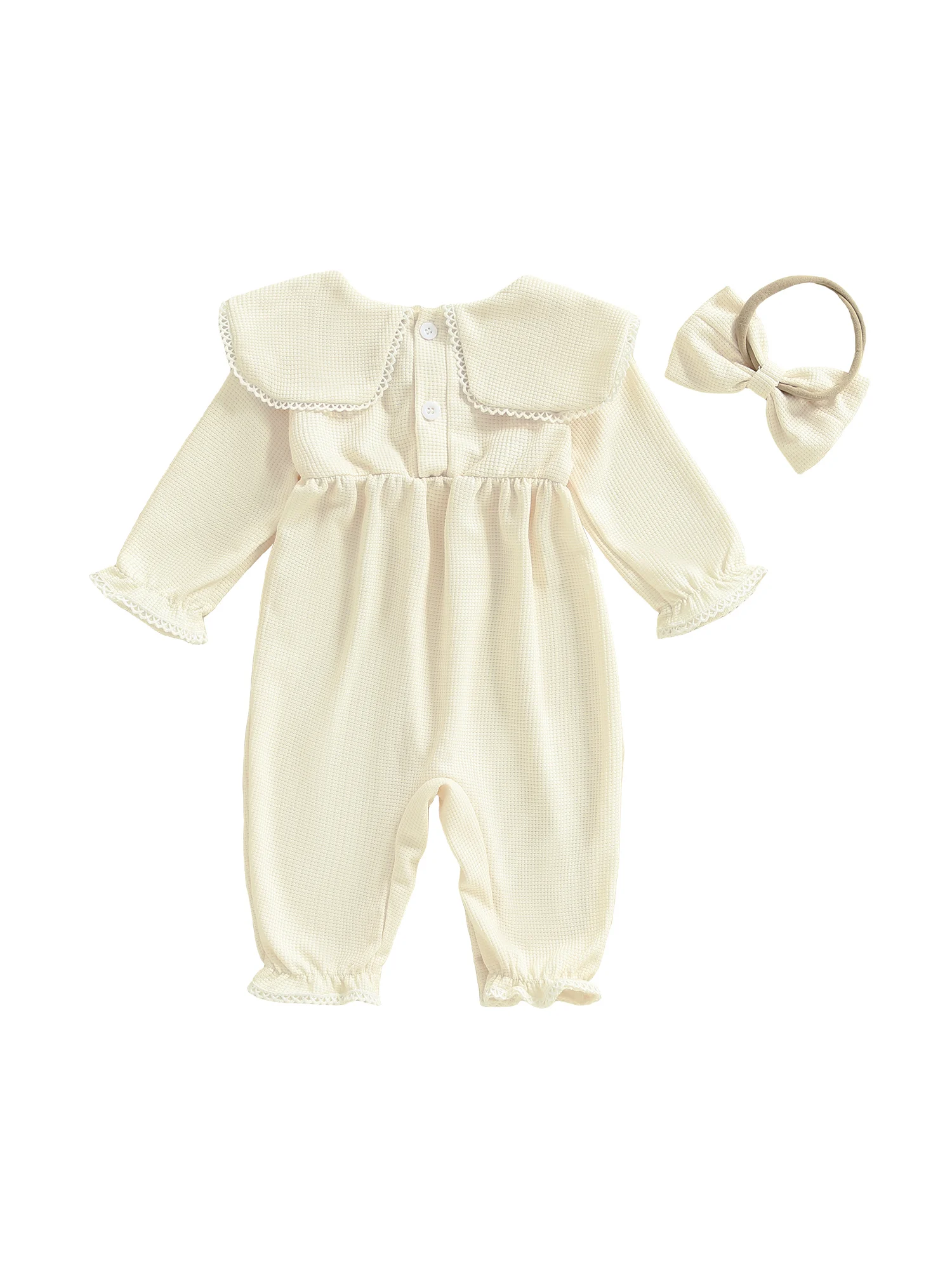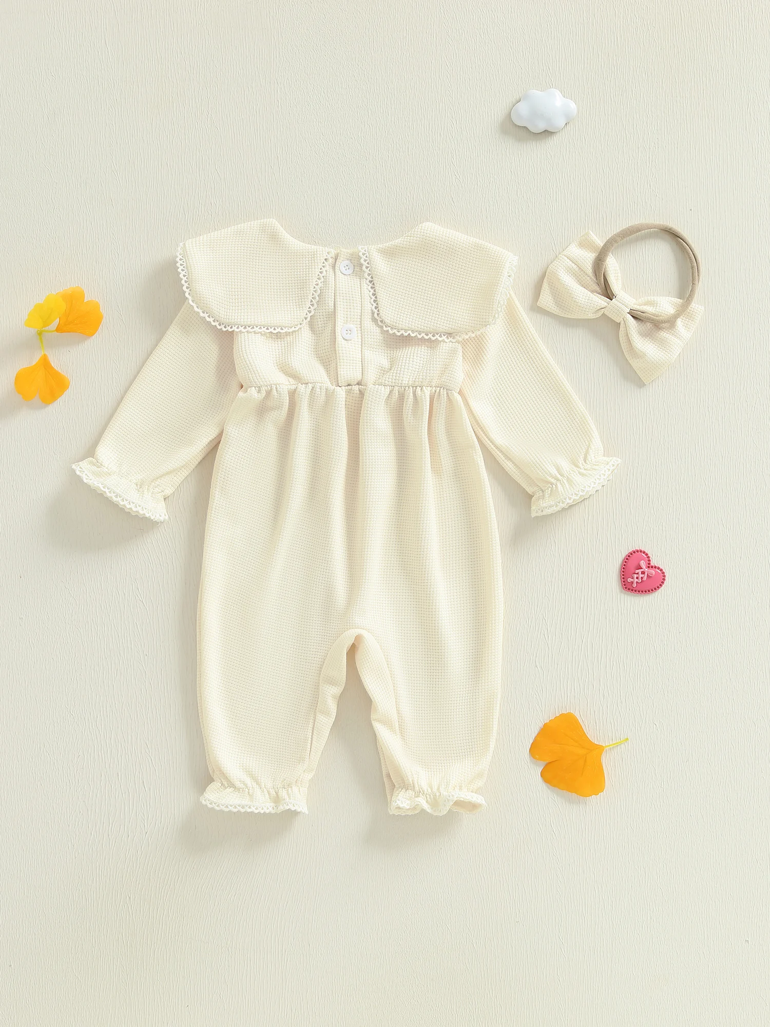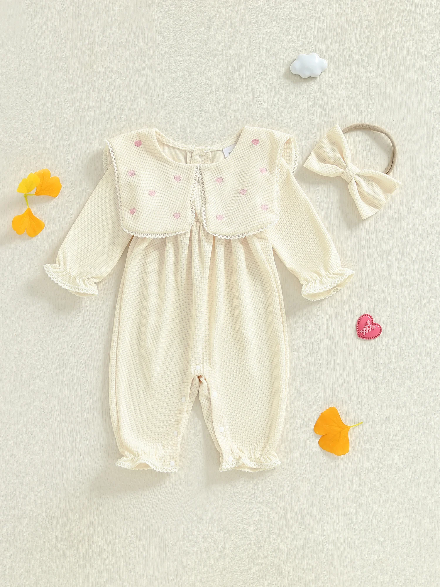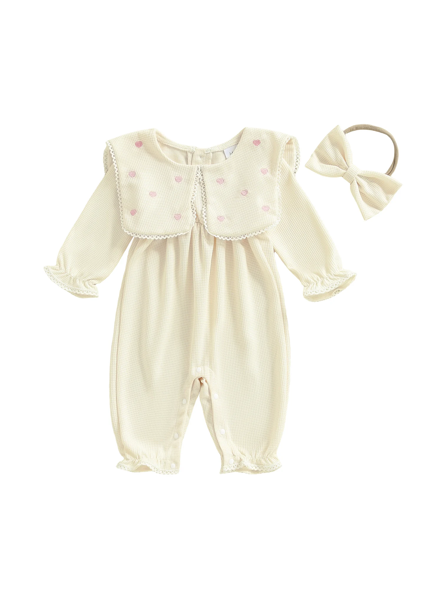 Mameluco de burbujas para niñas, mono de manga larga con cuello de muñeca bordado de corazón a la moda y diadema