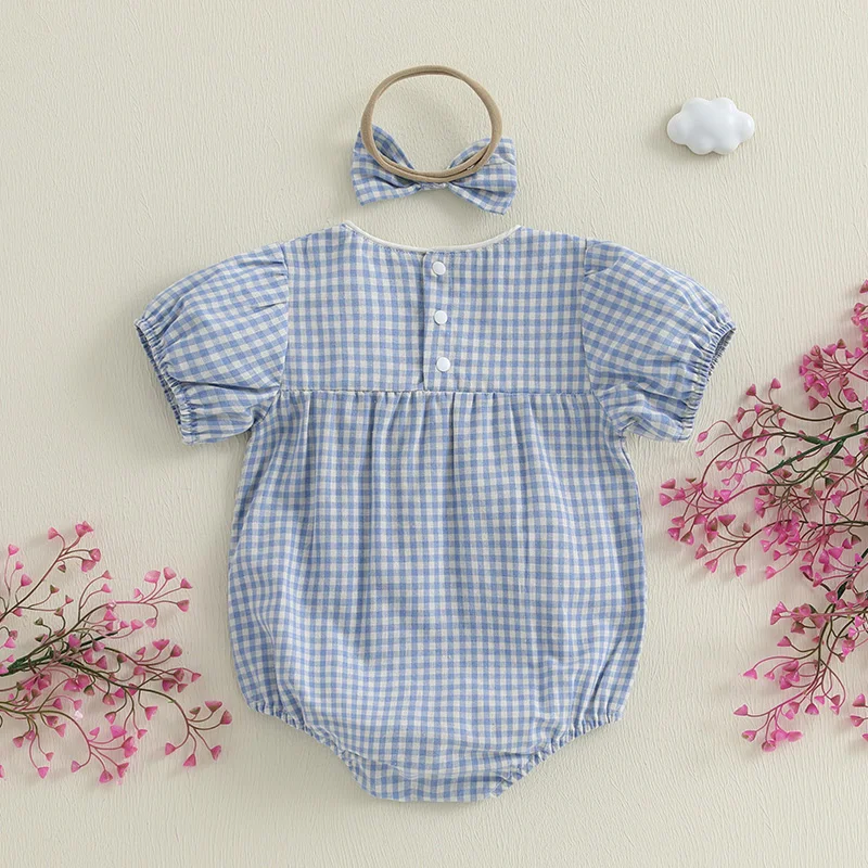 Comprar SUNSIOM Mameluco dulce de verano para niñas, mameluco a cuadros con cuello redondo y manga corta con diadema