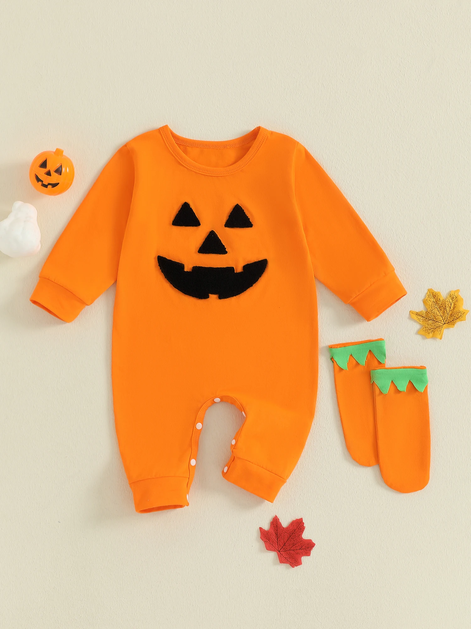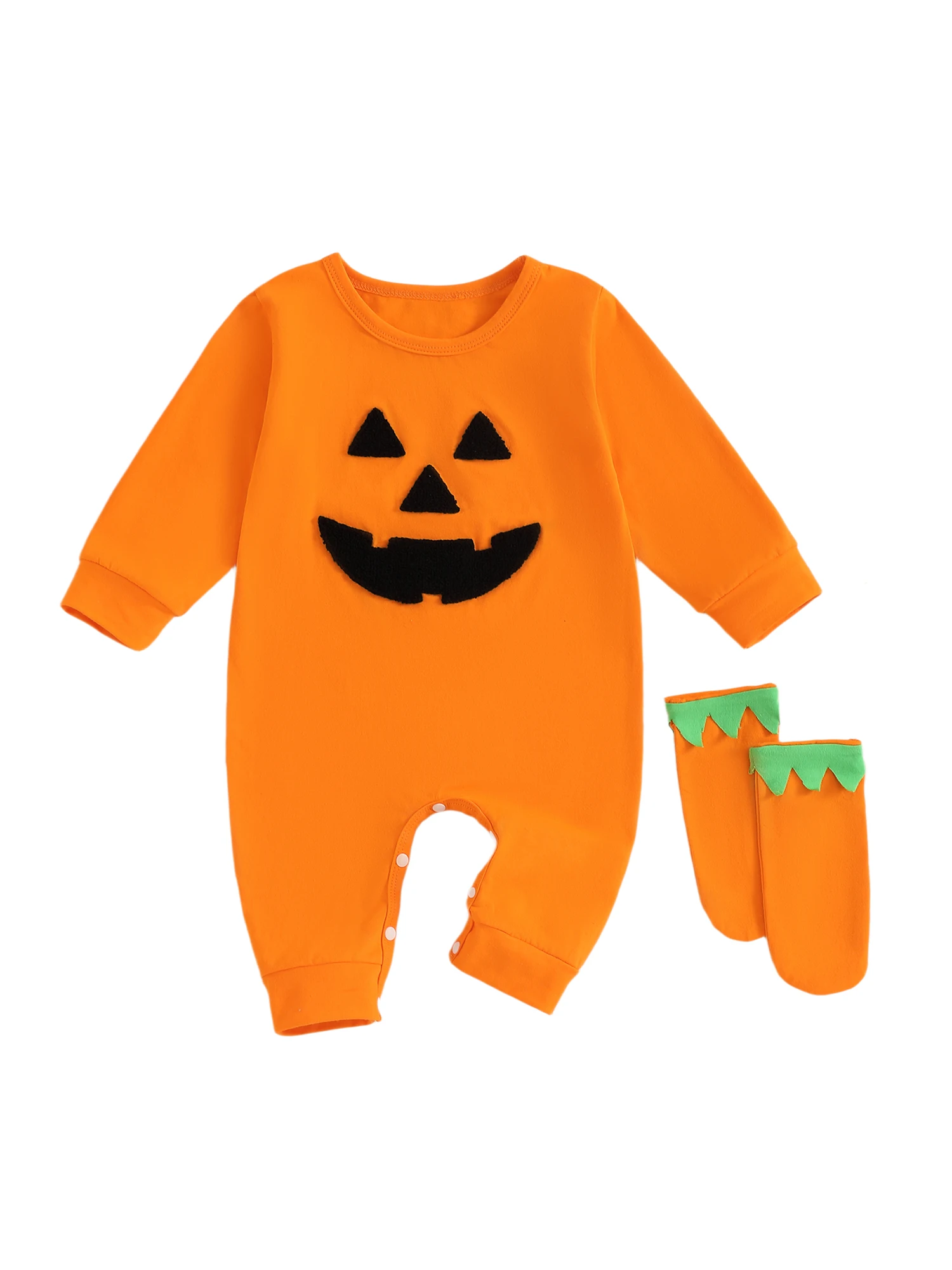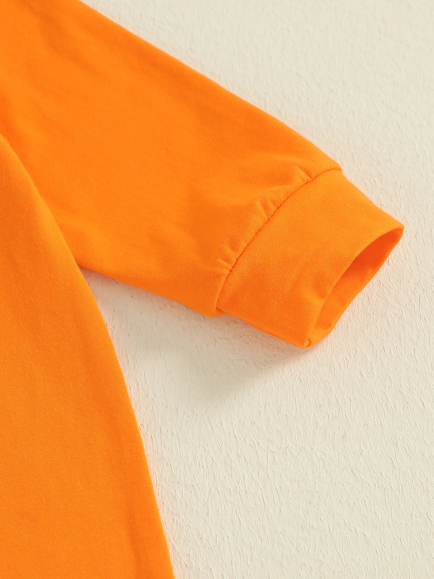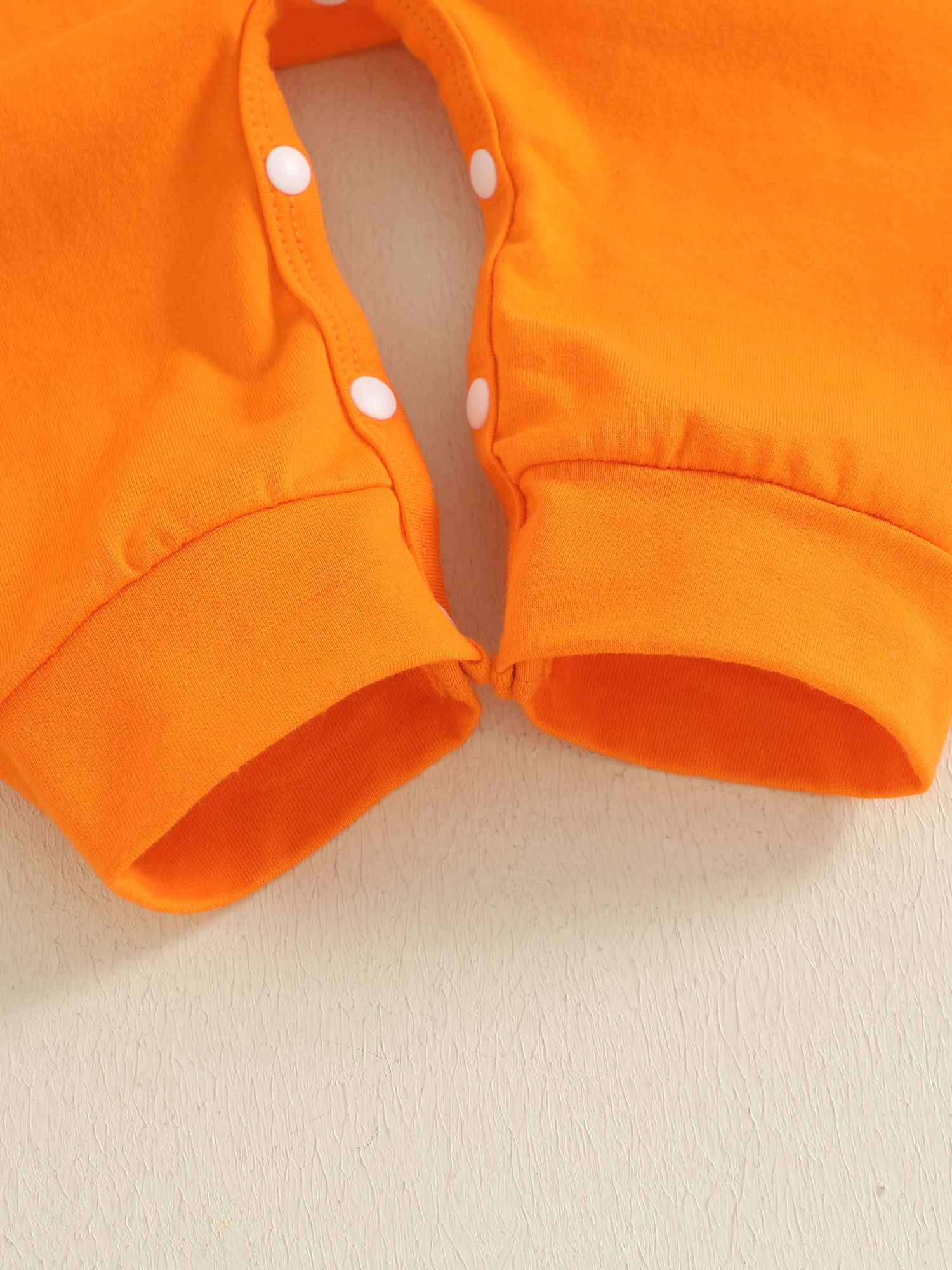 Especificación Nombre del artículo: Mono de bebé Color: naranja Tamaño: 0-3 meses, 3-6 meses, 6-12 meses, 12-18 meses Material: 95% algodón, 5% poliéster Cuello: cuello redondo Manga: manga larga Género: niñas, niños