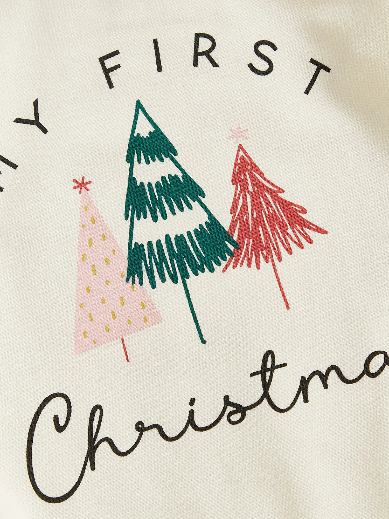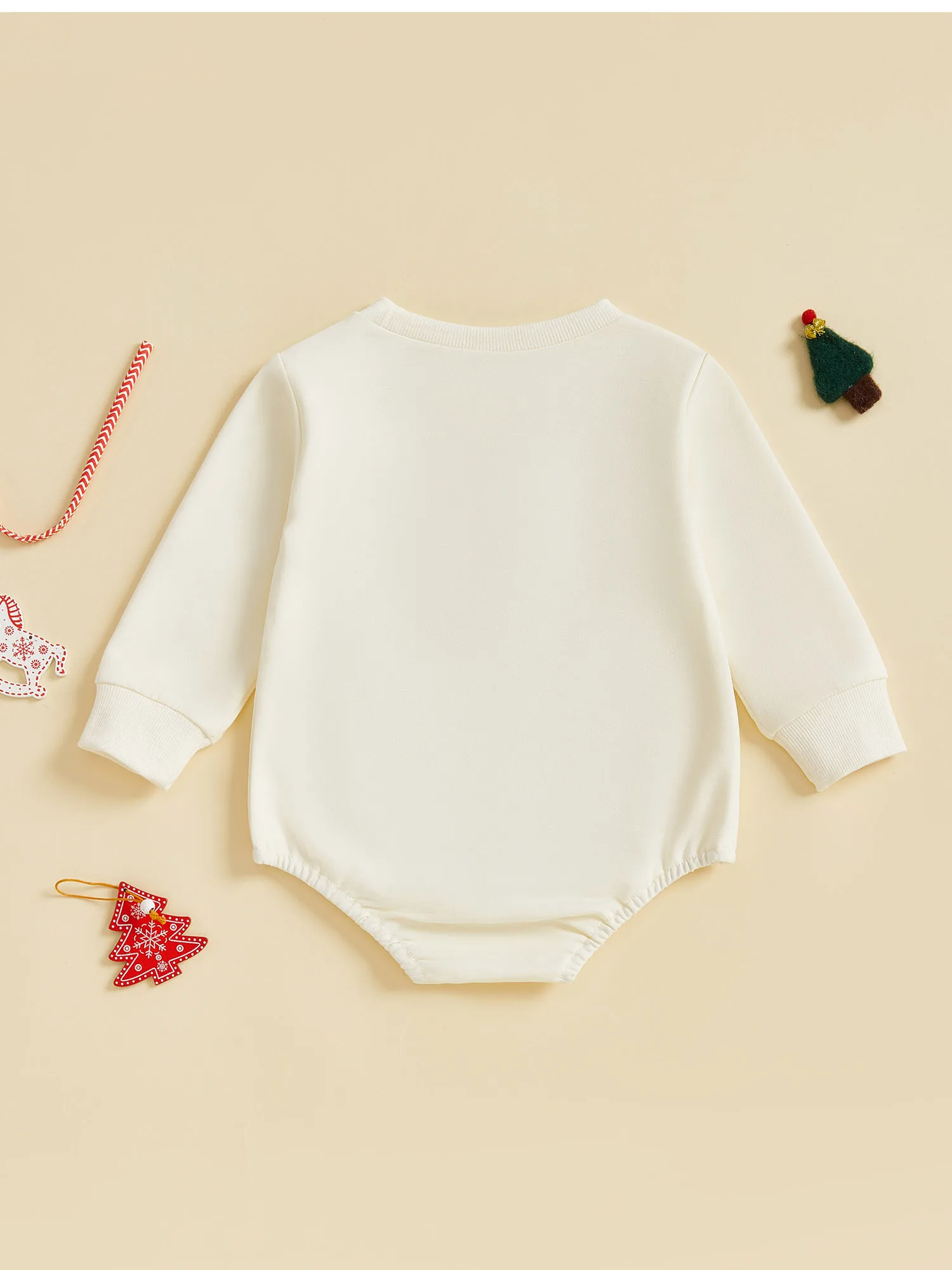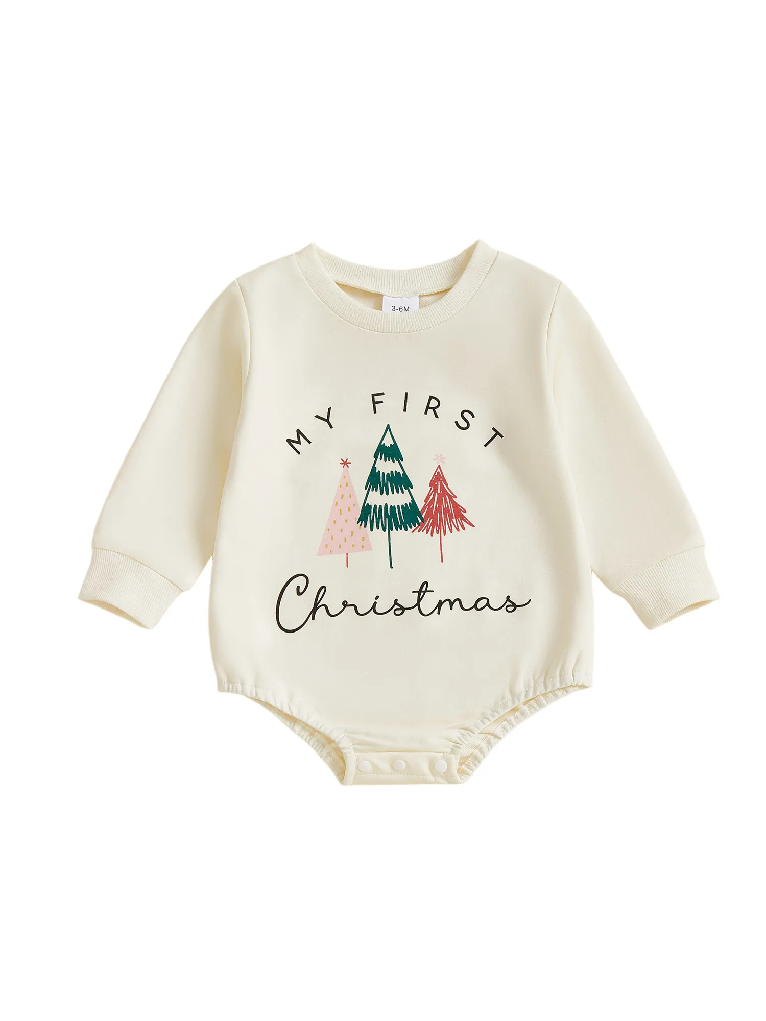 Mamelucos navideños para bebé, lindo mono de manga larga con cuello redondo y estampado de árbol con letras