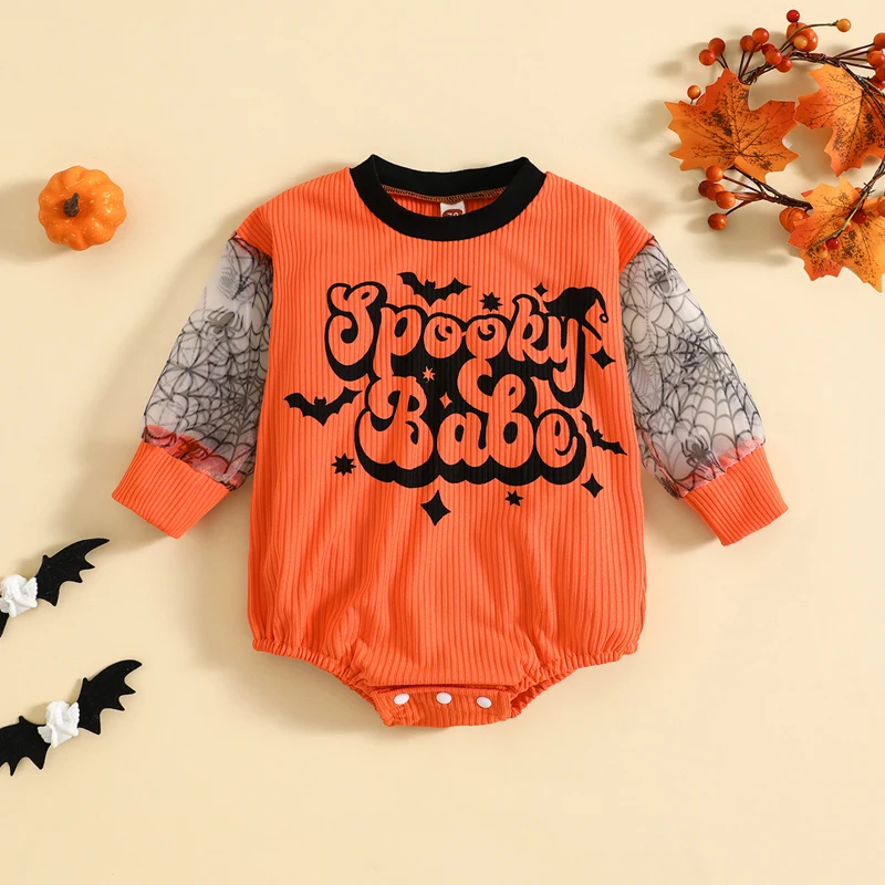 Comprar SUNSIOM-mono acanalado de manga larga para bebé, Pelele de malla con cuello redondo y estampado de letras, ropa de otoño para recién nacido