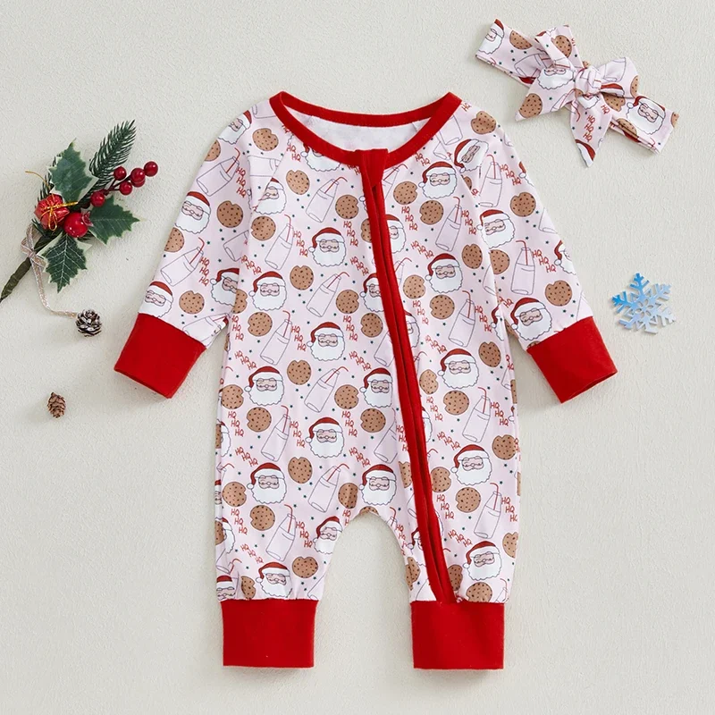 Comprar SUNSIOM Mono de bebé de 0 a 18 meses, manga larga, cuello redondo, estampado de galletas de Papá Noel, mameluco de Navidad, ropa para niñas y niños