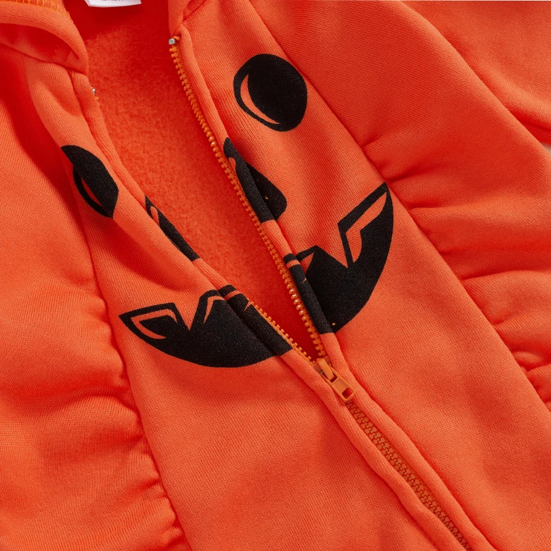 Mono de Halloween para bebé, Pelele con capucha y cremallera completa de calabaza con estampado de cara de manga larga, traje para recién nacidoCaracterísticas:-La tela súper suave hace que su bebé se sienta súper cómodo.Mameluco de Halloween perfecto para bebés y niños.-Lavar a máquina/agua fría/colgar seco.Tamaño (cm)60 Longitud: 51 Busto: 50 Manga: 23 Edad recomendada: 0-3 meses70 Largo: 56 Busto: 52 Manga: 25 Edad recomendada: 3-6 meses80 Longitud: 61 Busto: 54 Manga: 27 Edad recomendada: 6-12 meses90 Longitud: 66 Busto: 56 Manga: 29 Edad recomendada: 12-18 mesesTamaño (pulgadas)60 Longitud: 20,08 Busto: 19,68 Manga: 9,06 Edad recomendada: 0-3 meses70 Longitud: 22,05 Busto: 20,47 Manga: 9,84 Edad recomendada: 3-6 meses80 Longitud: 24,02 Busto: 21,26 Manga: 10,63 Edad recomendada: 6-12 meses90 Longitud: 25,98 Busto: 22,05 Manga: 11,42 Edad recomendada: 12-18 mesesEspecificación:Material: 100% poliésterColor: naranjaEstilo: Casual, dulceGénero aplicable: Niños, NiñasTemporada adecuada: otoño, primavera, InviernoPaquete incluido1 mameluco