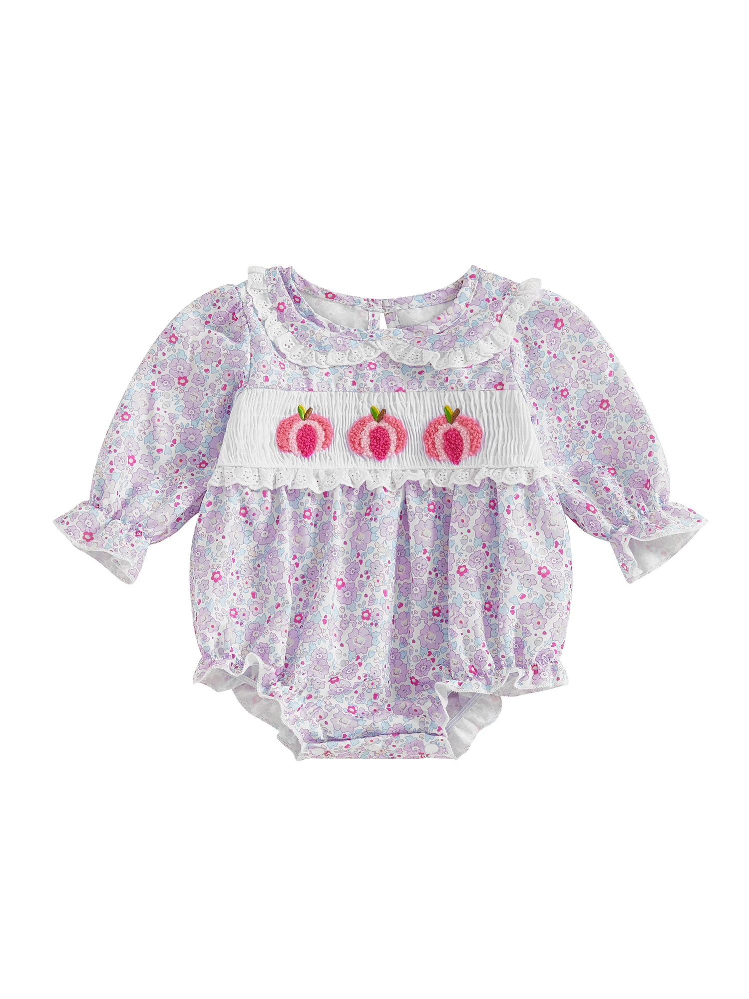 Especificación: Edad recomendada: 0-3 meses, 3-6 meses, 6-12 meses, 12-18 meses Materiales: 100% poliéster Patrón: Flor de calabaza Color rosa Género: niña