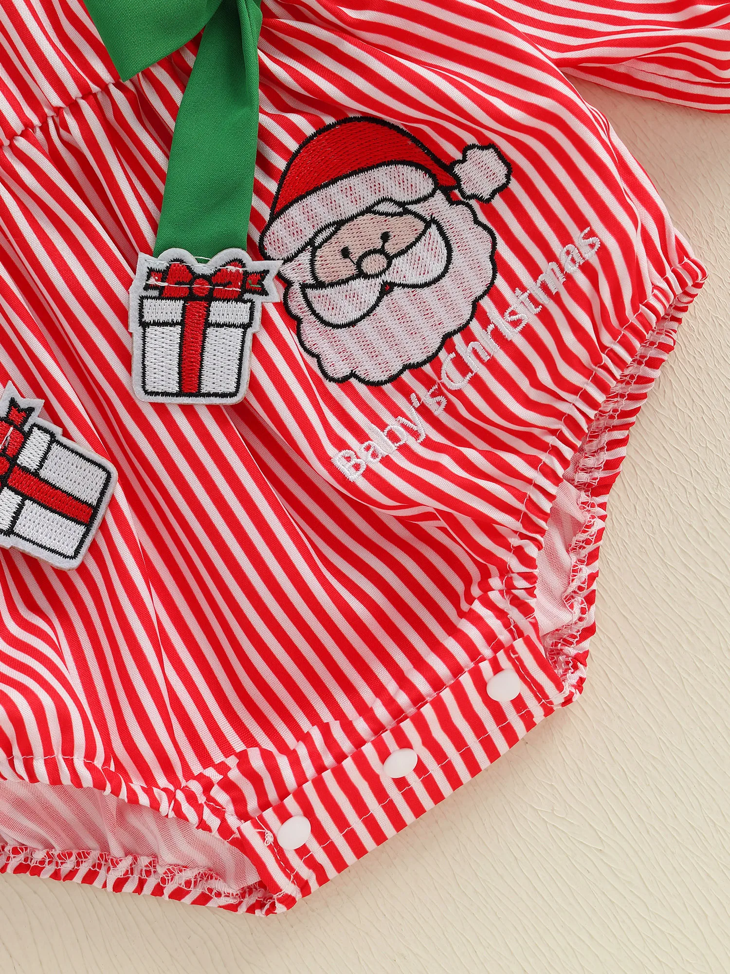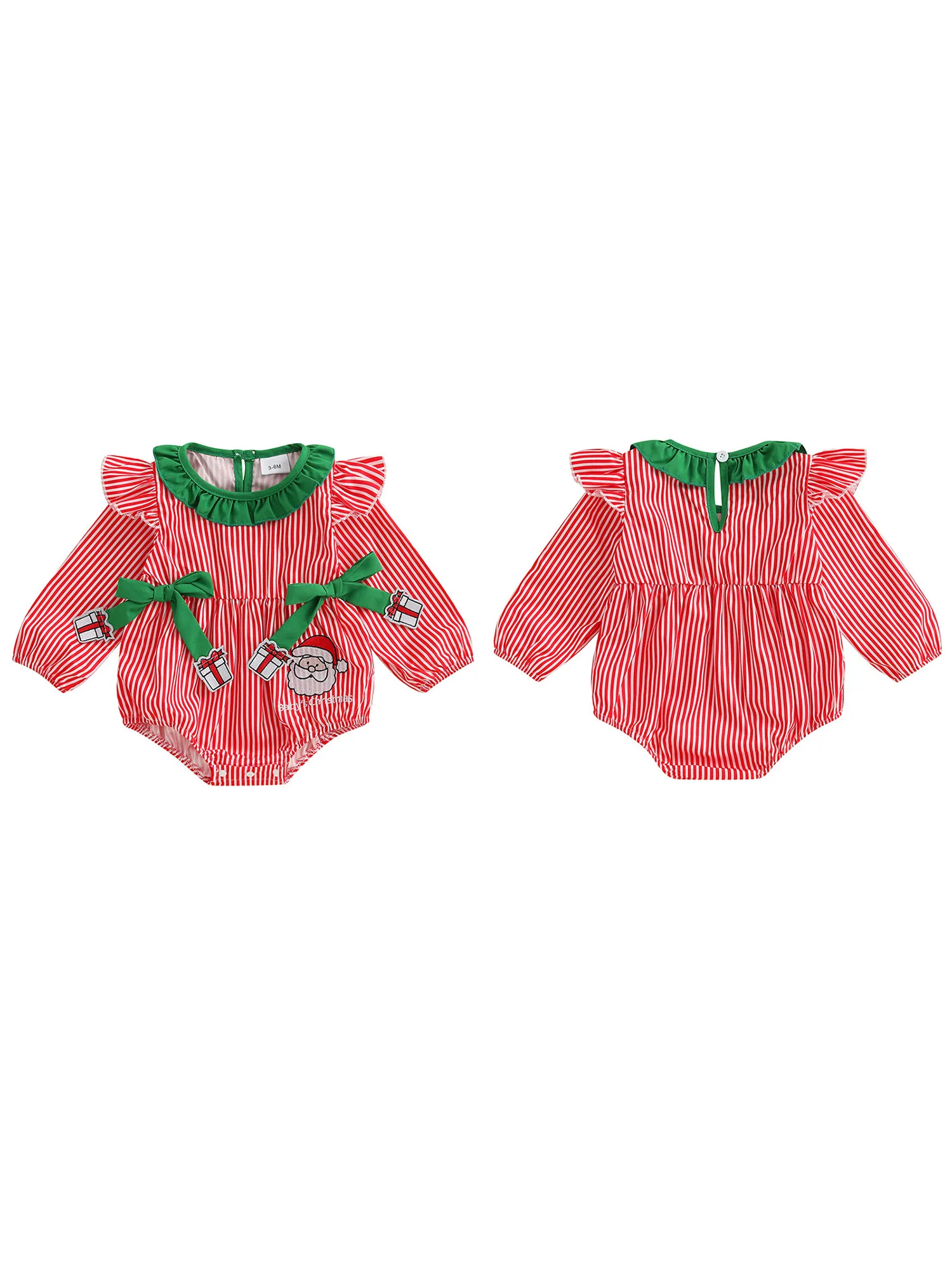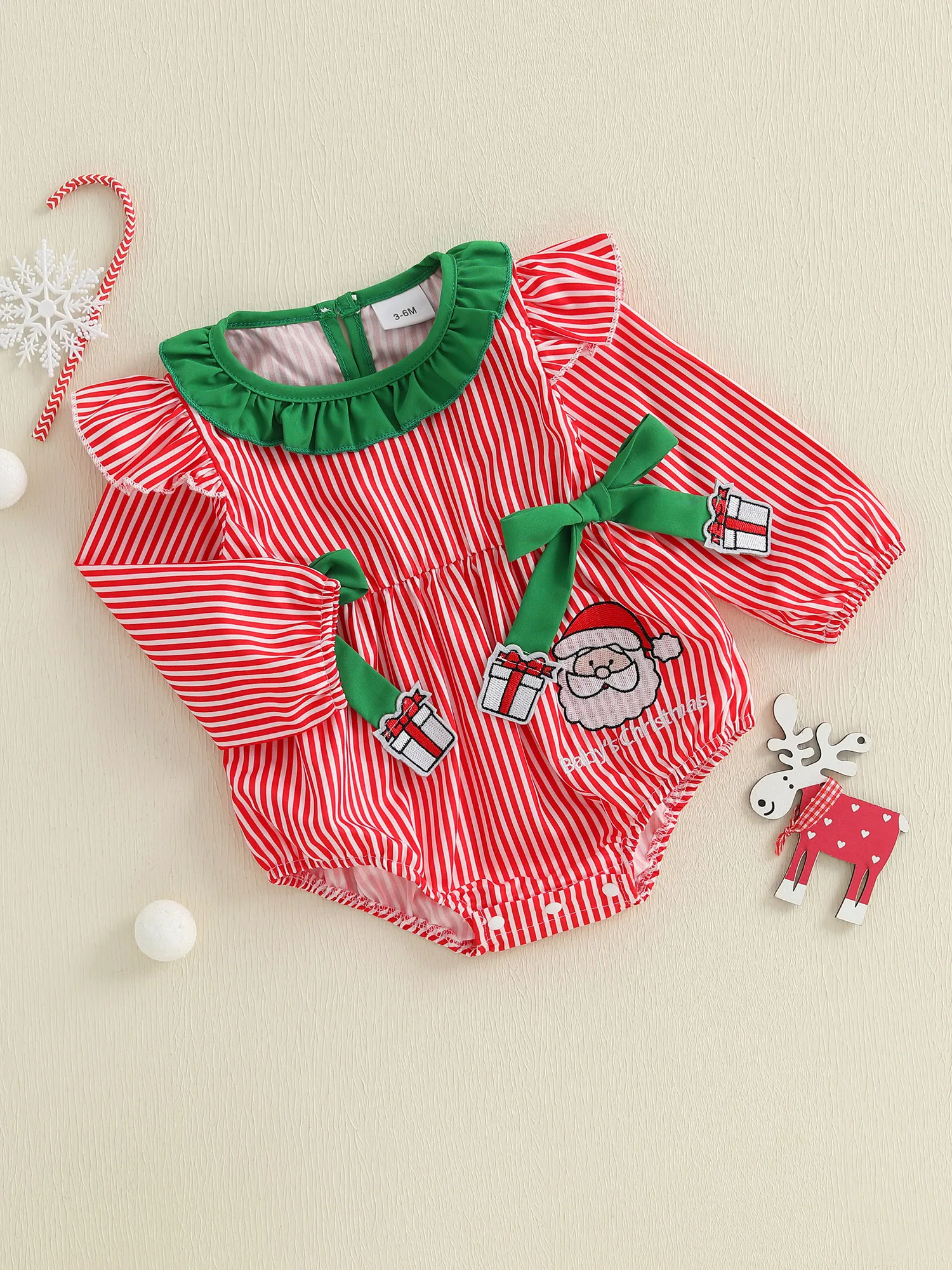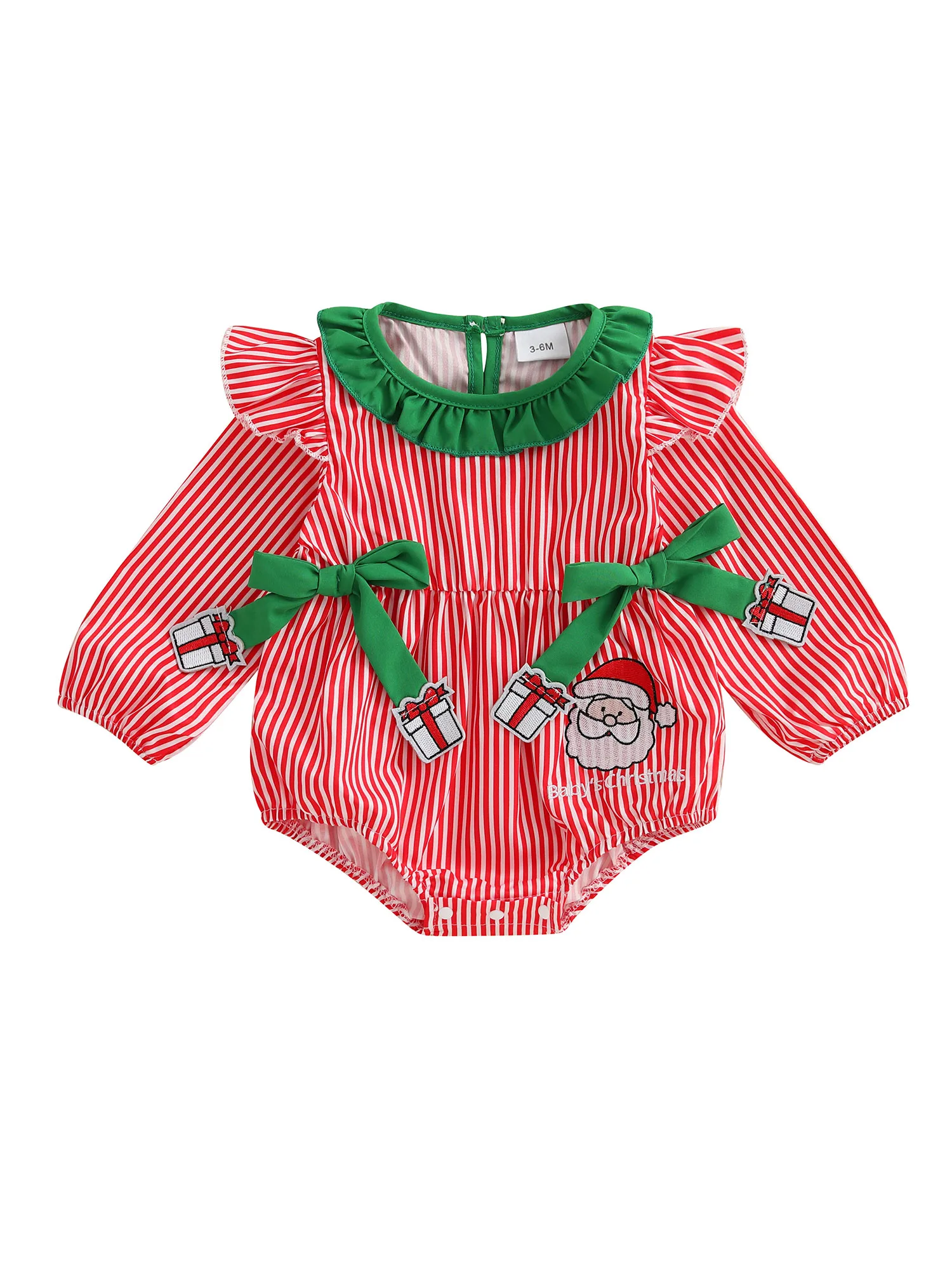 SUNSIOM-Pelele de Navidad para niña de 0 a 18 meses, mono de manga larga con ribete de volantes a rayas de Papá Noel y lazos, ropa bonita para invierno y otoño