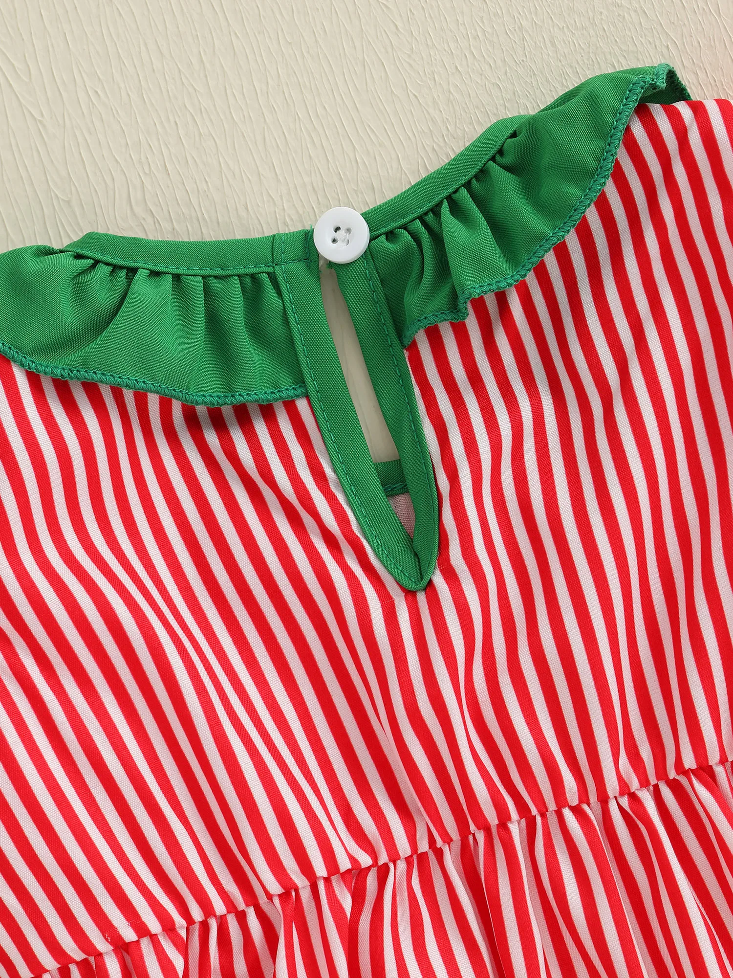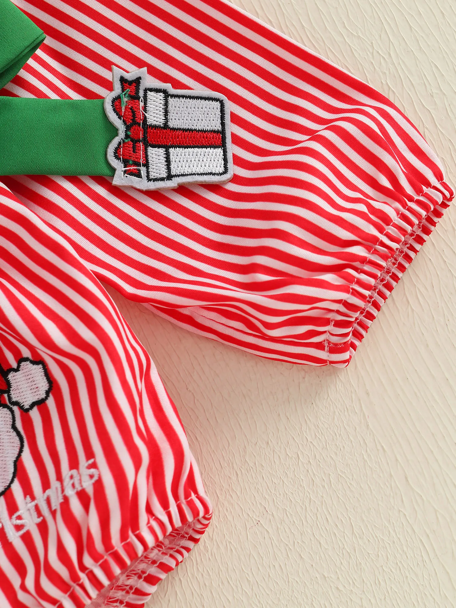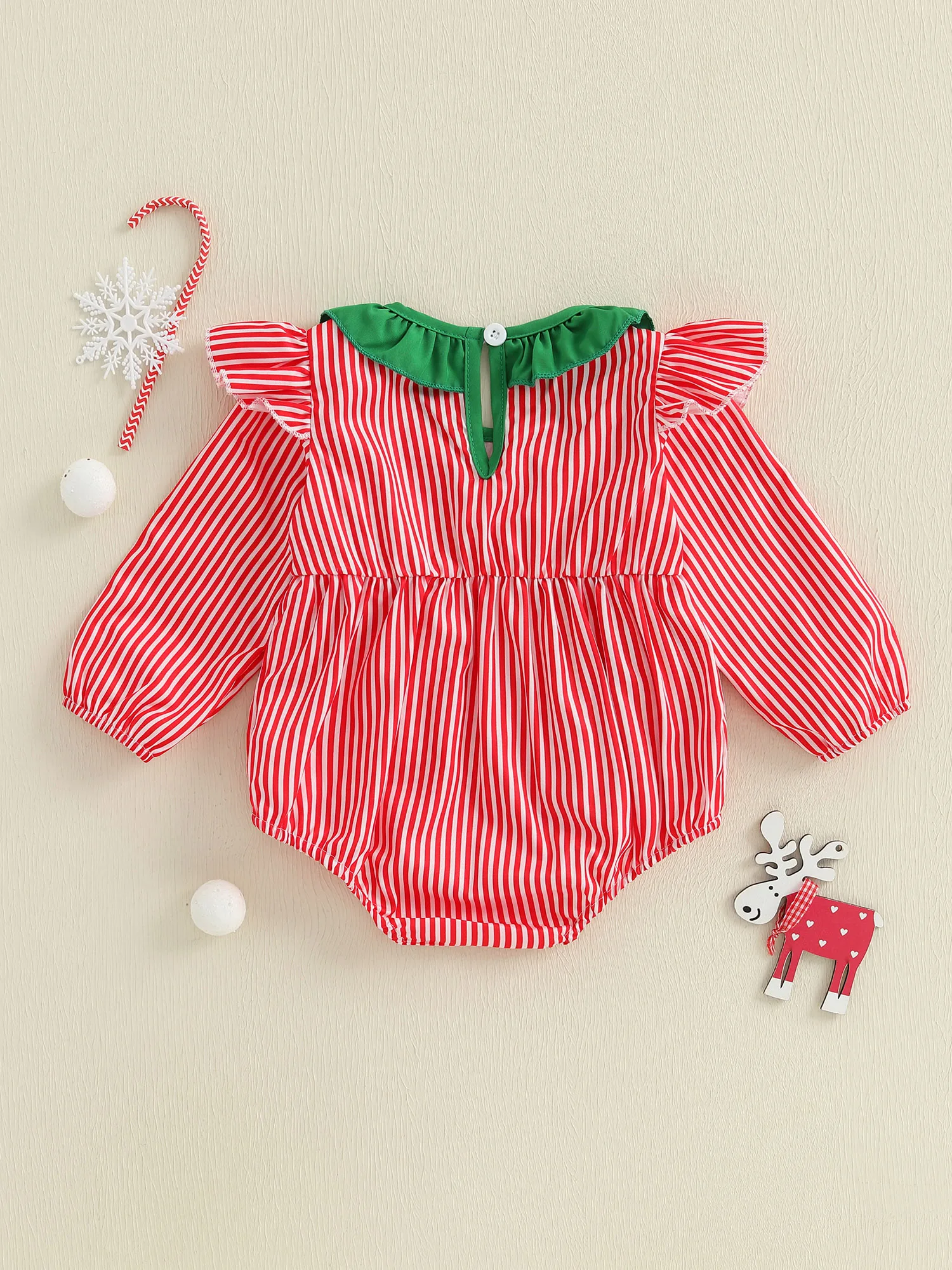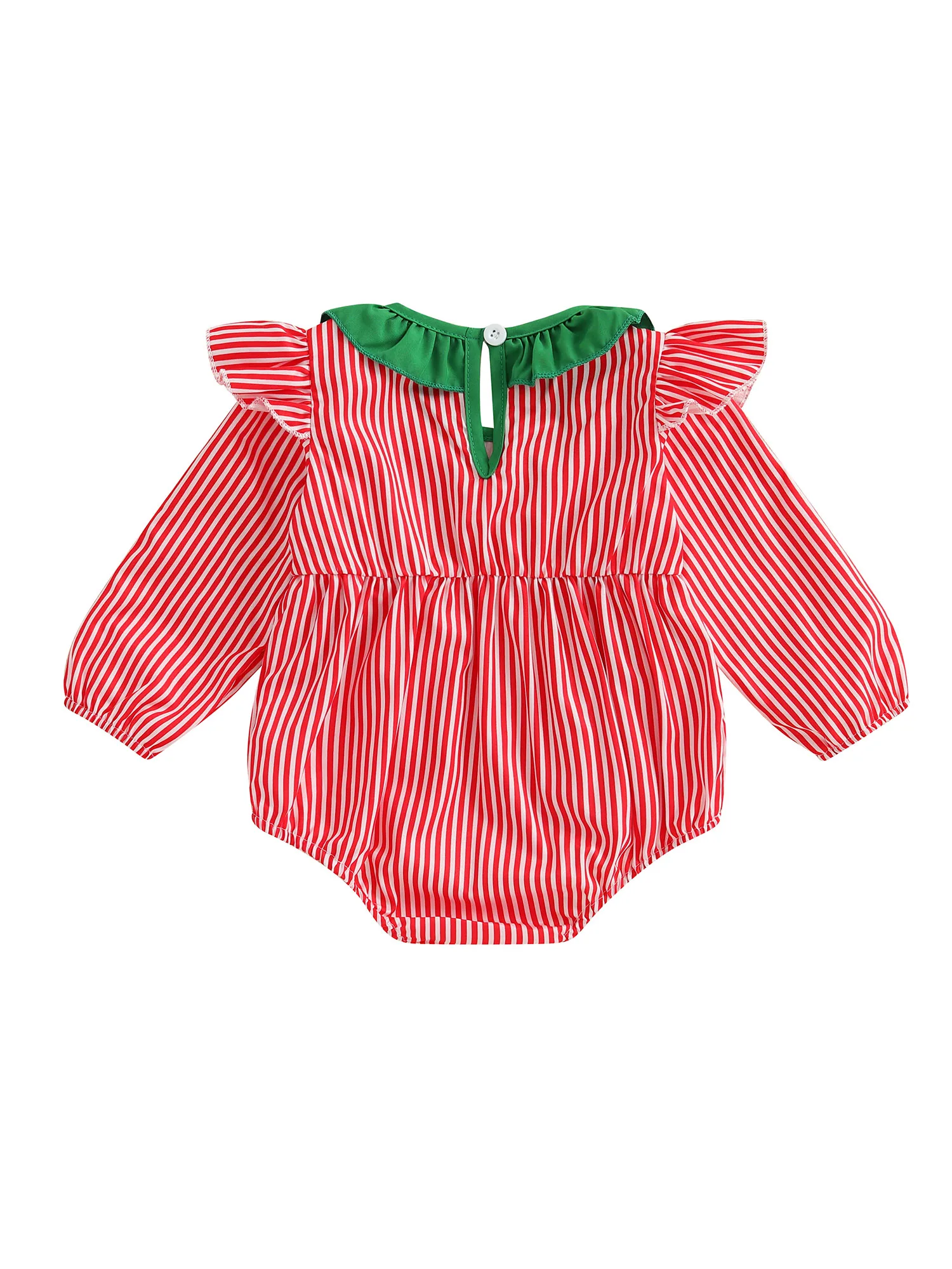 SUNSIOM-Pelele de Navidad para niña de 0 a 18 meses, mono de manga larga con ribete de volantes a rayas de Papá Noel y lazos, ropa bonita para invierno y otoño