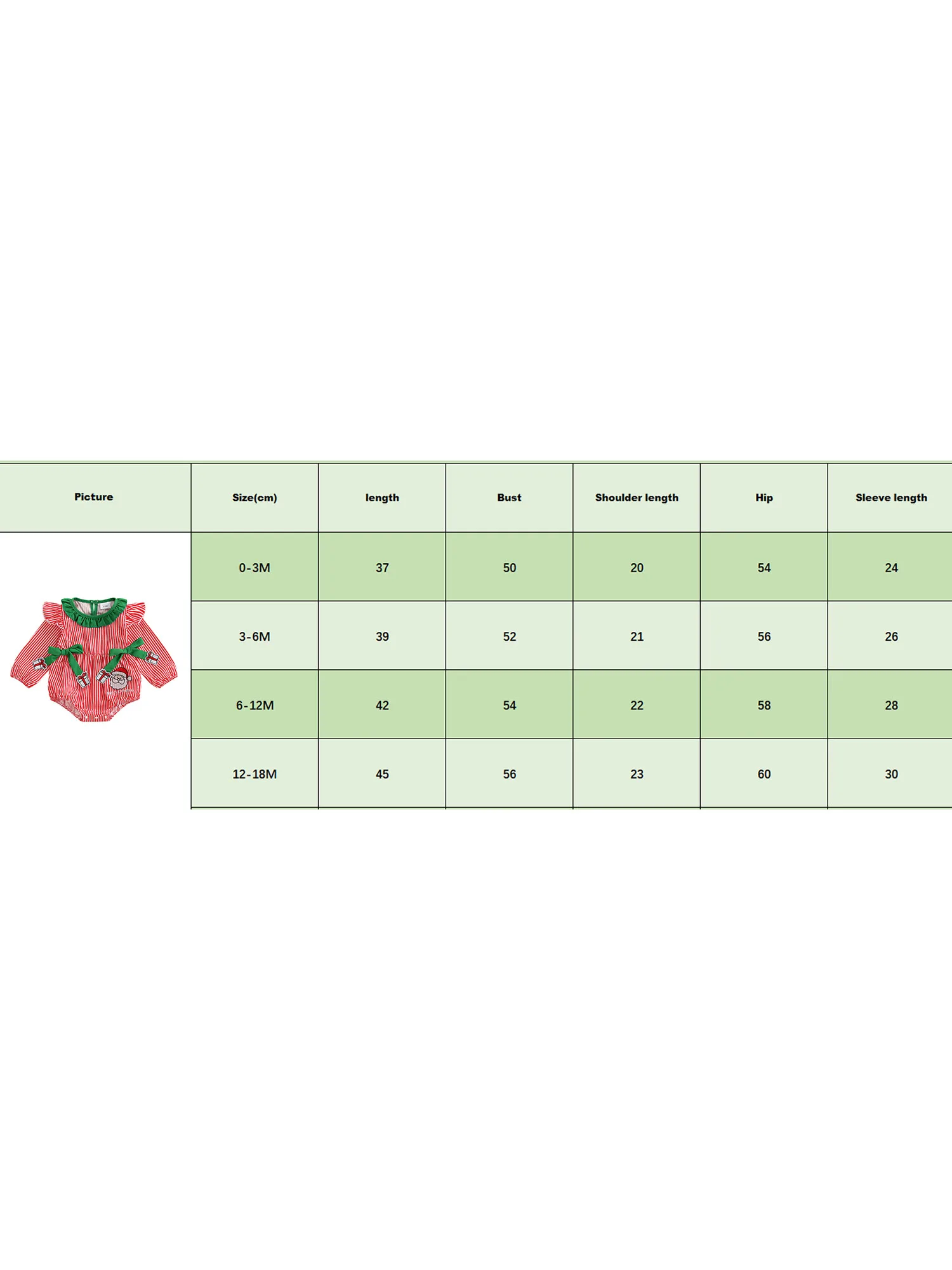 Especificación: Edad recomendada: 0-3 meses, 3-6 meses, 6-12 meses, 12-18 meses Materiales: 100% poliéster Patrón: regalo de Papá Noel a rayas. Color rojo Género: niña