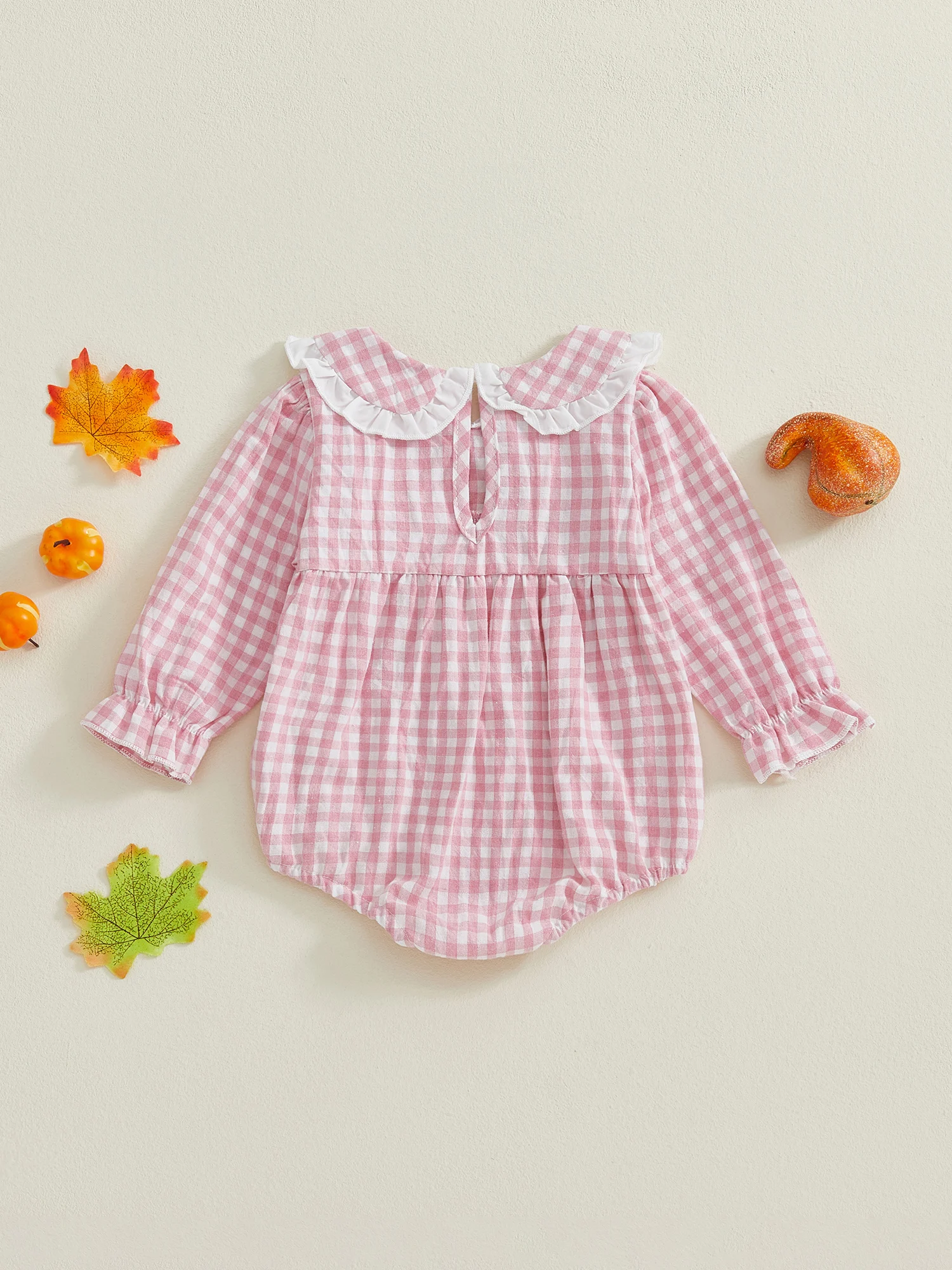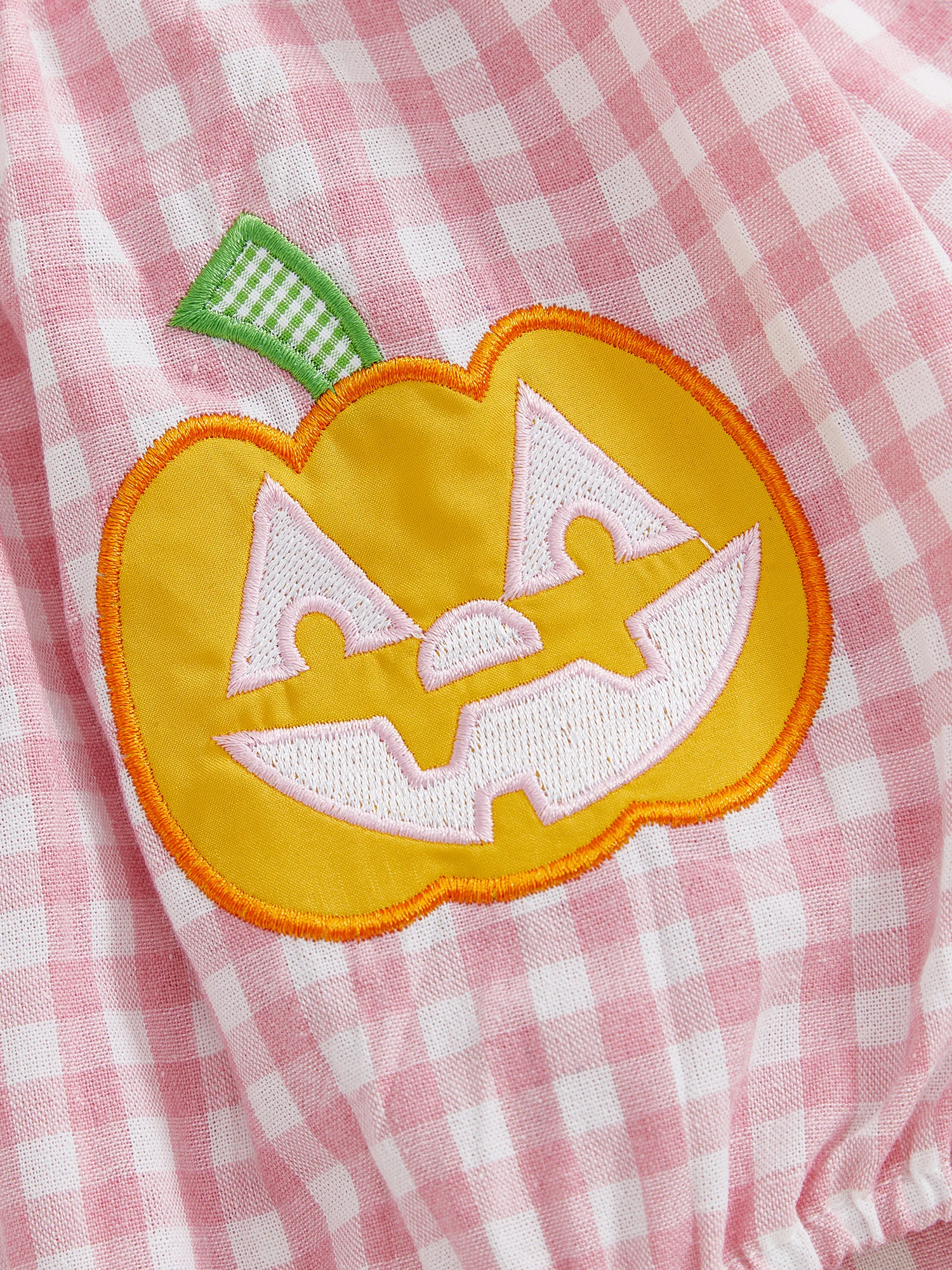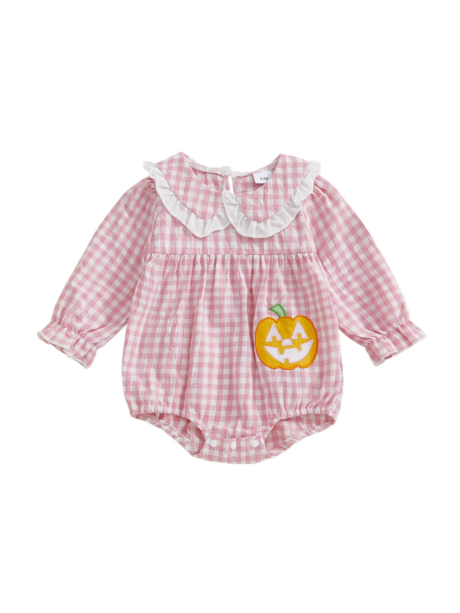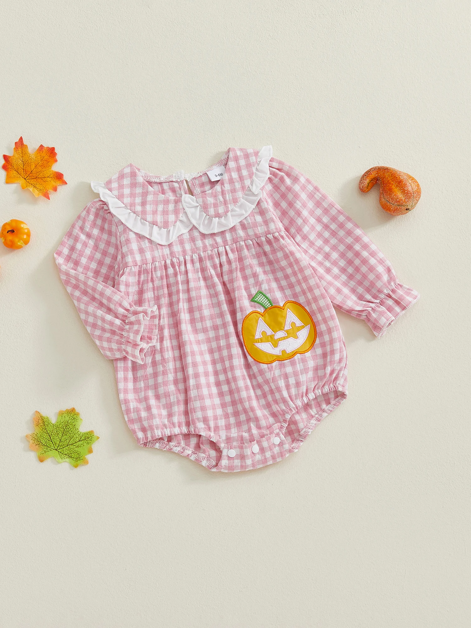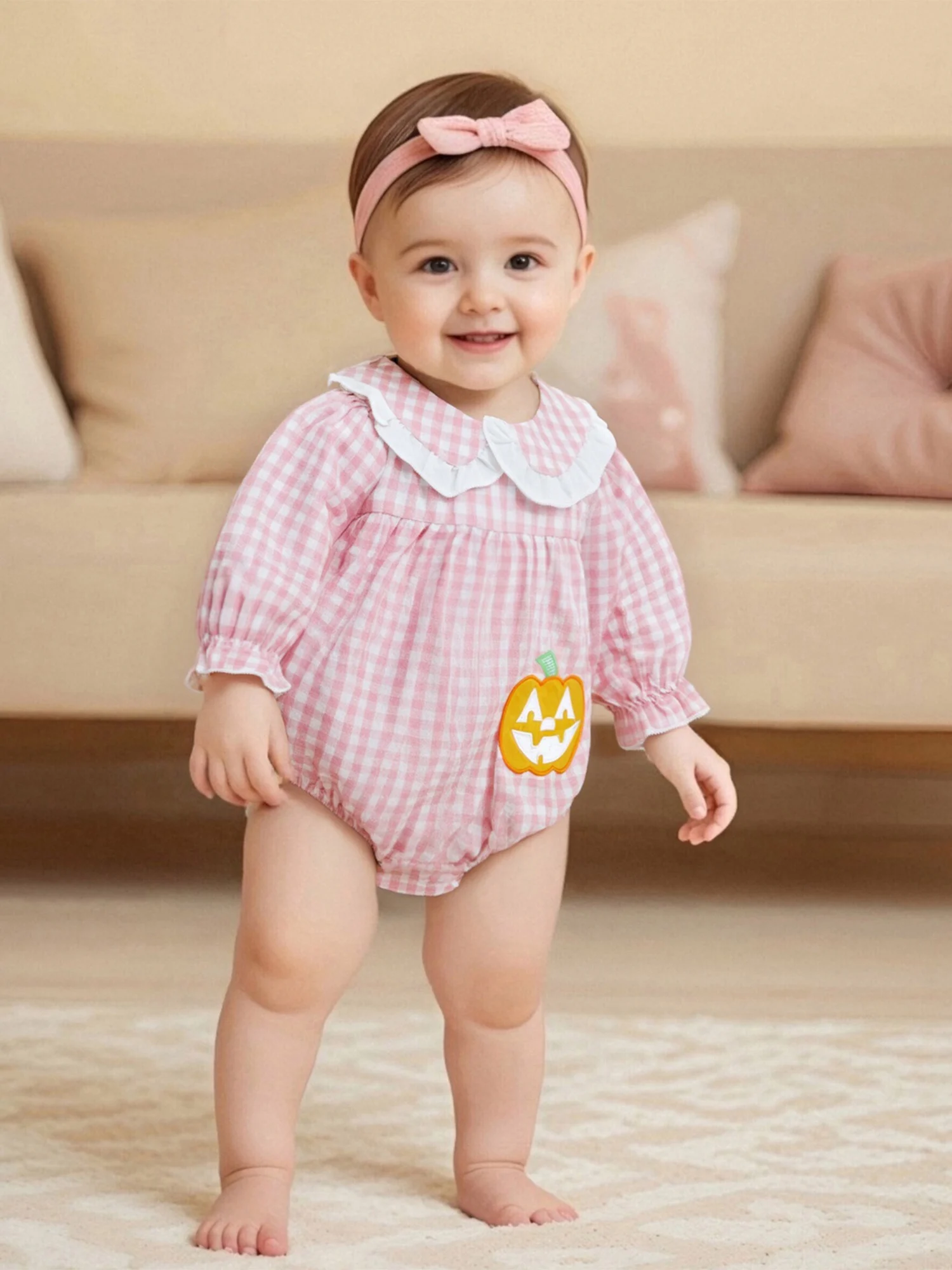 SUNSIOM-Pelele para niñas de 0 a 18 meses, pelele de manga larga con cuello de muñeca, mono de calabaza bordado a cuadros, disfraz de Halloween para recién nacidos