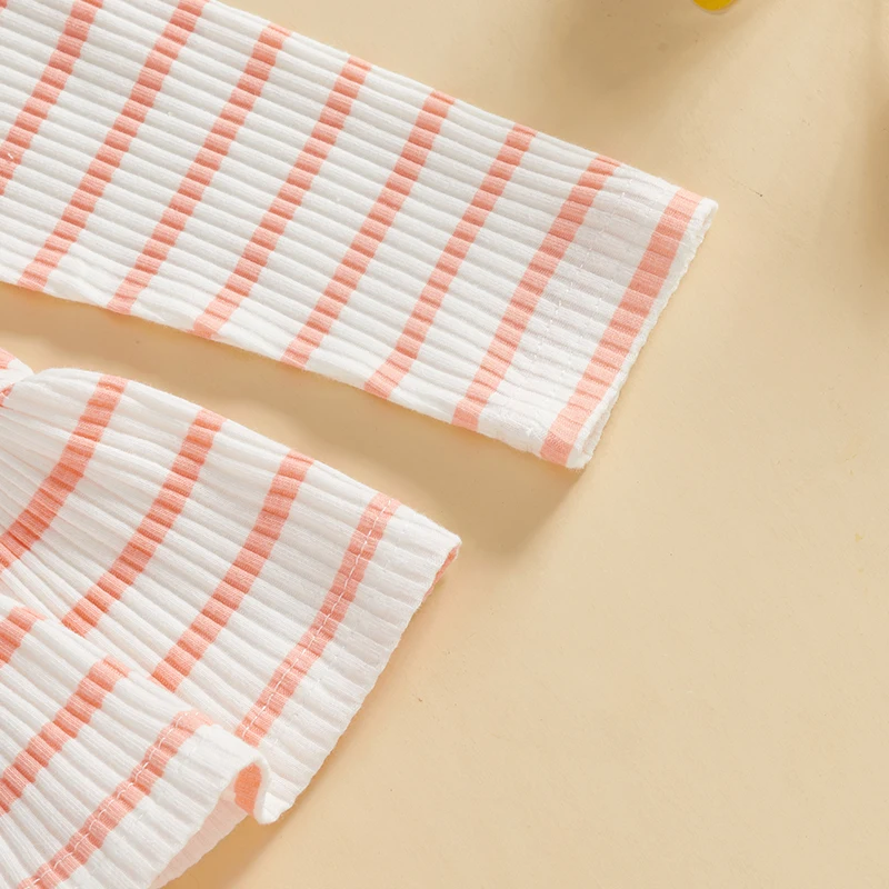 Comprar SUNSIOM Ropa para niñas pequeñas con volantes, manga larga, cuello redondo, Tops a rayas, pantalones acampanados con cintura elástica, trajes de otoño acanalados de 2 piezas