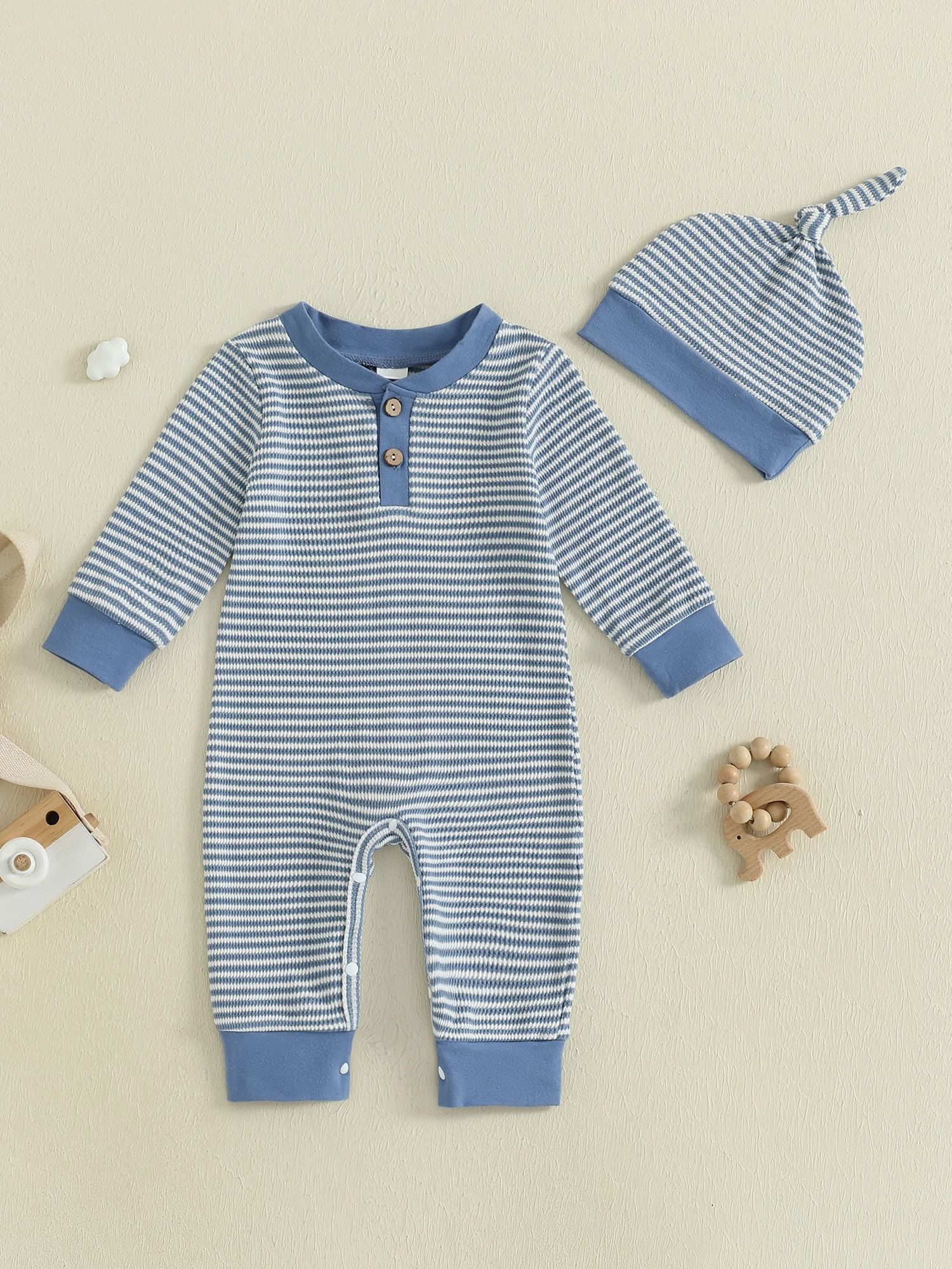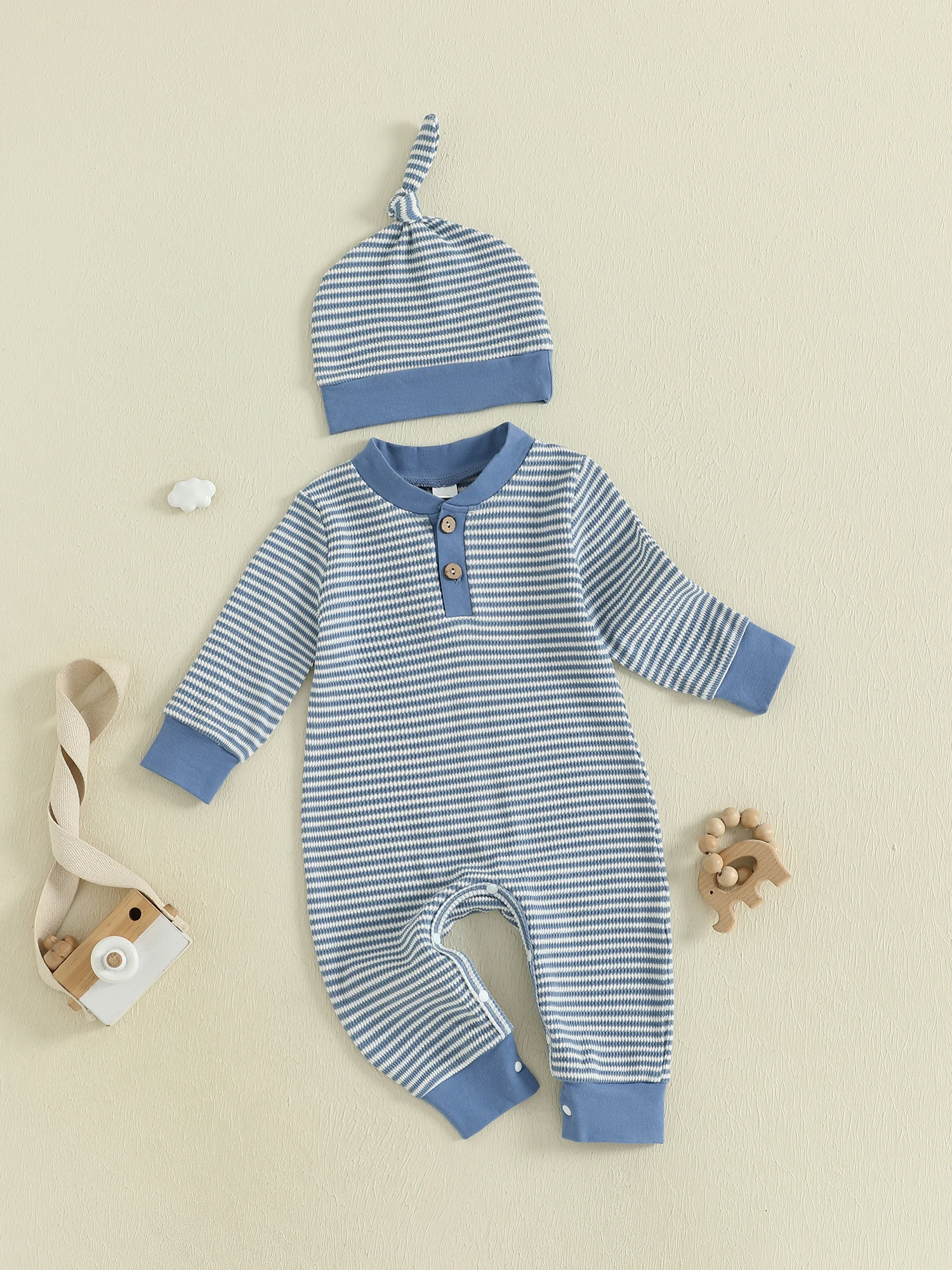 Especificación Nombre del artículo: Ropa de bebé niño Material: 95% algodón y 5% elastano Patrón: Raya Cuello: cuello redondo Manga: manga larga