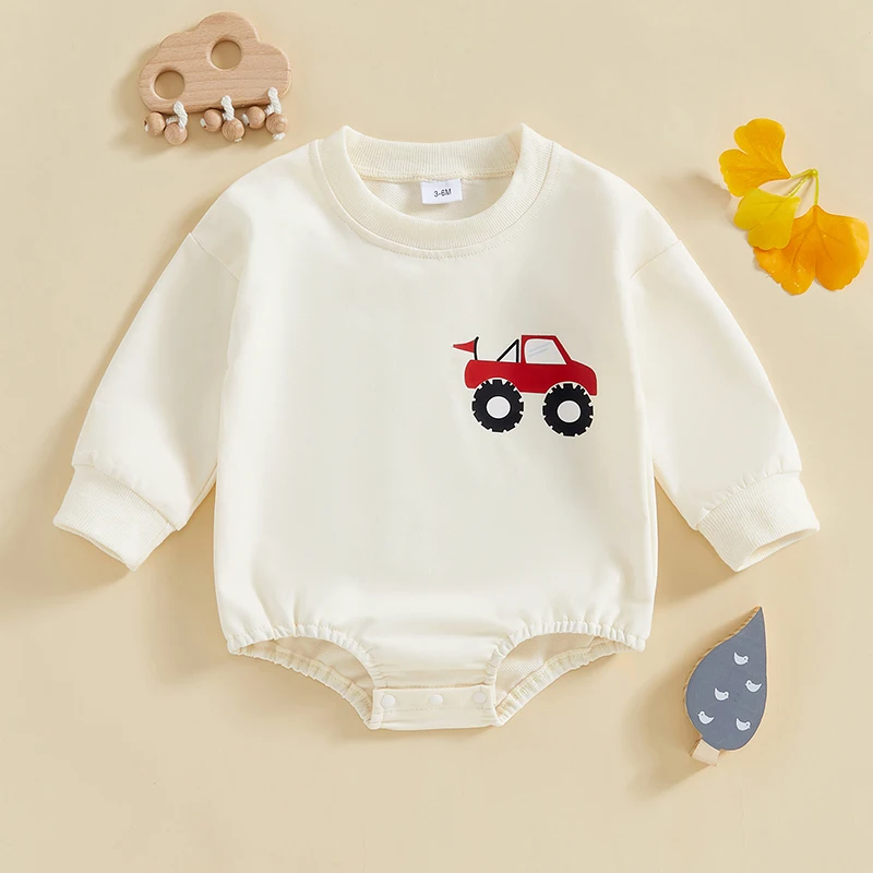 Bebé Niñas Niños Sudaderas Mamelucos Carta Coche Imprimir Manga larga Niño Otoño Body Monos