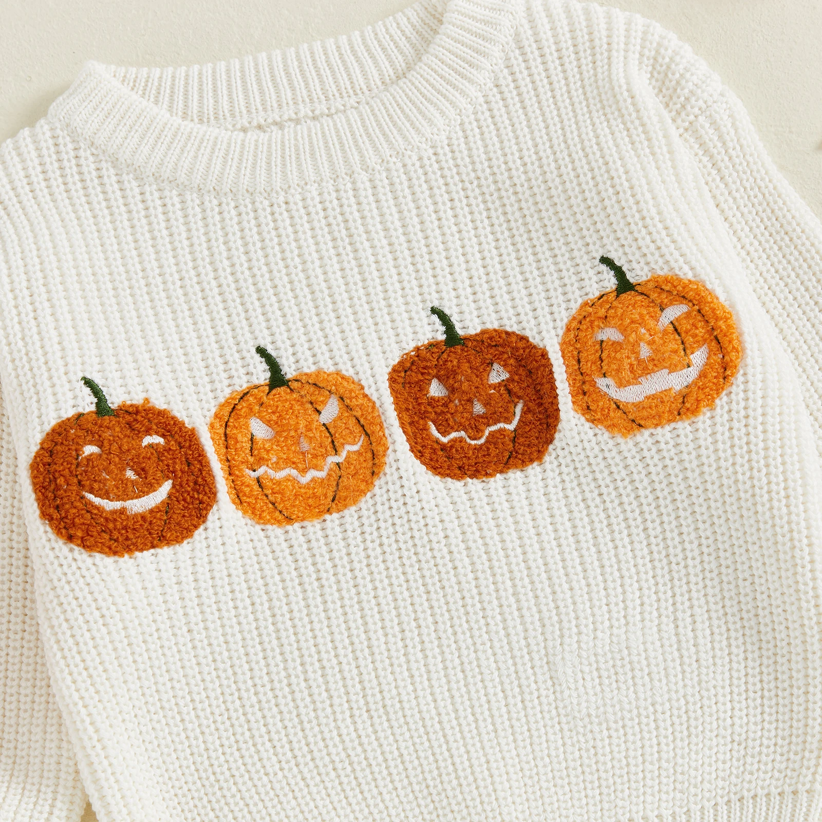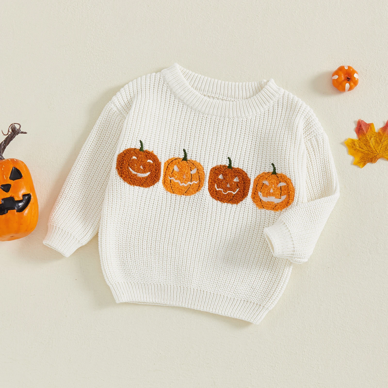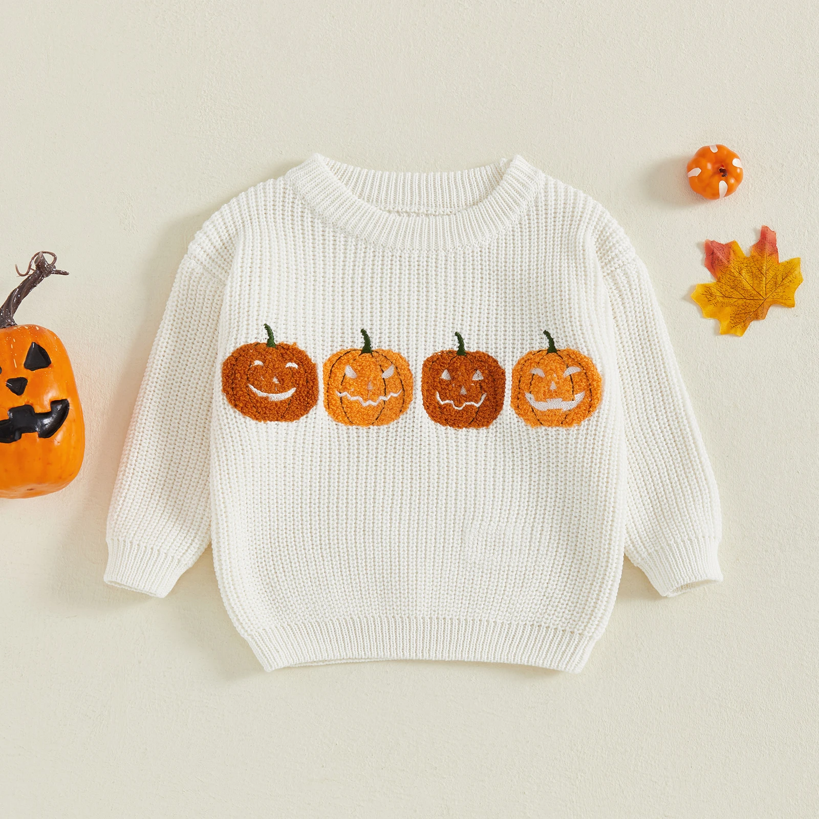 Comprar SUNSIOM Suéter de Halloween para niño y niña de 1 a 5 años, jersey de manga larga con cuello redondo bordado de calabaza, Tops de punto grueso