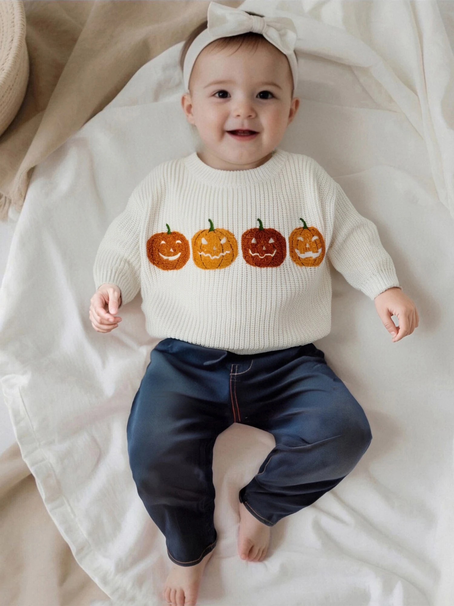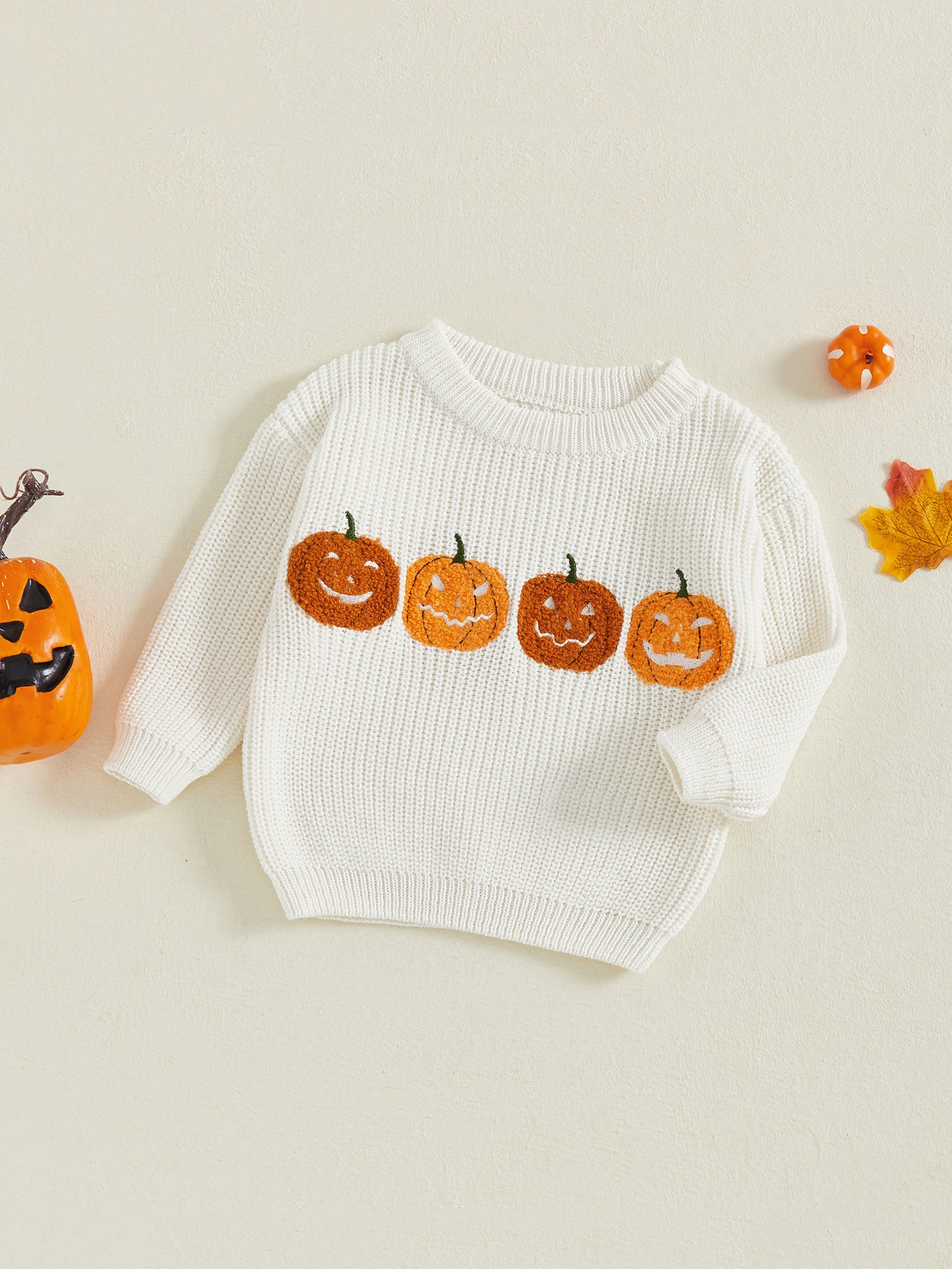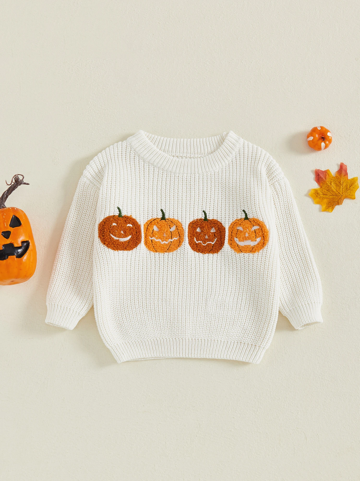 Comprar SUNSIOM Suéter de Halloween para niño y niña de 1 a 5 años, jersey de manga larga con cuello redondo bordado de calabaza, Tops de punto grueso