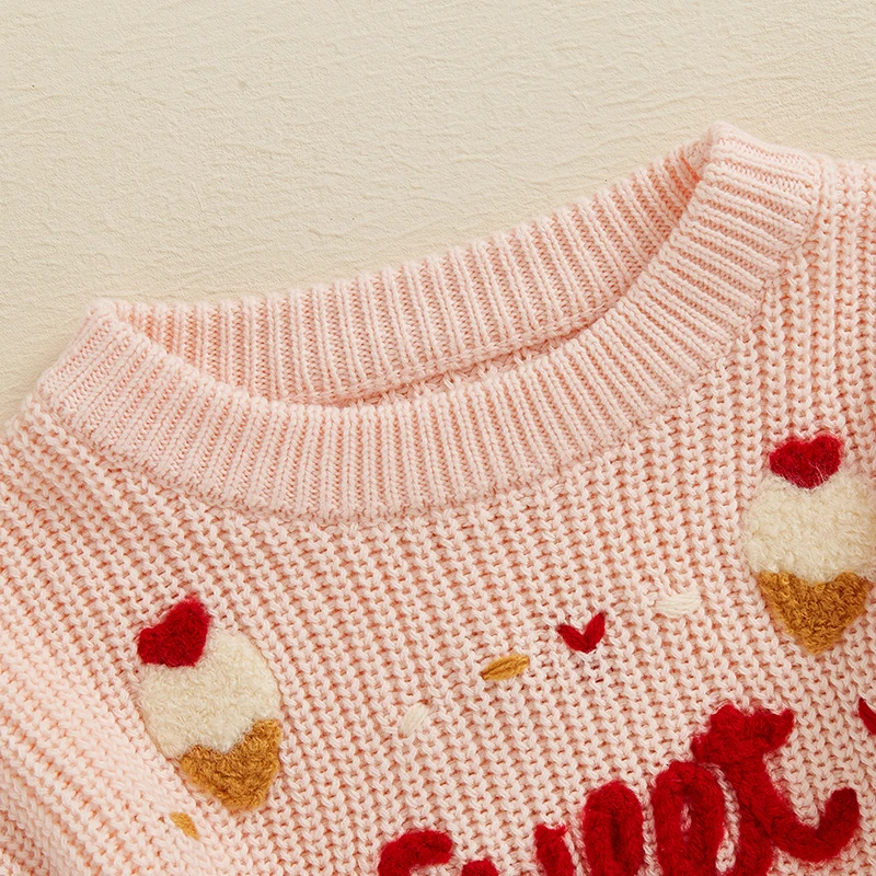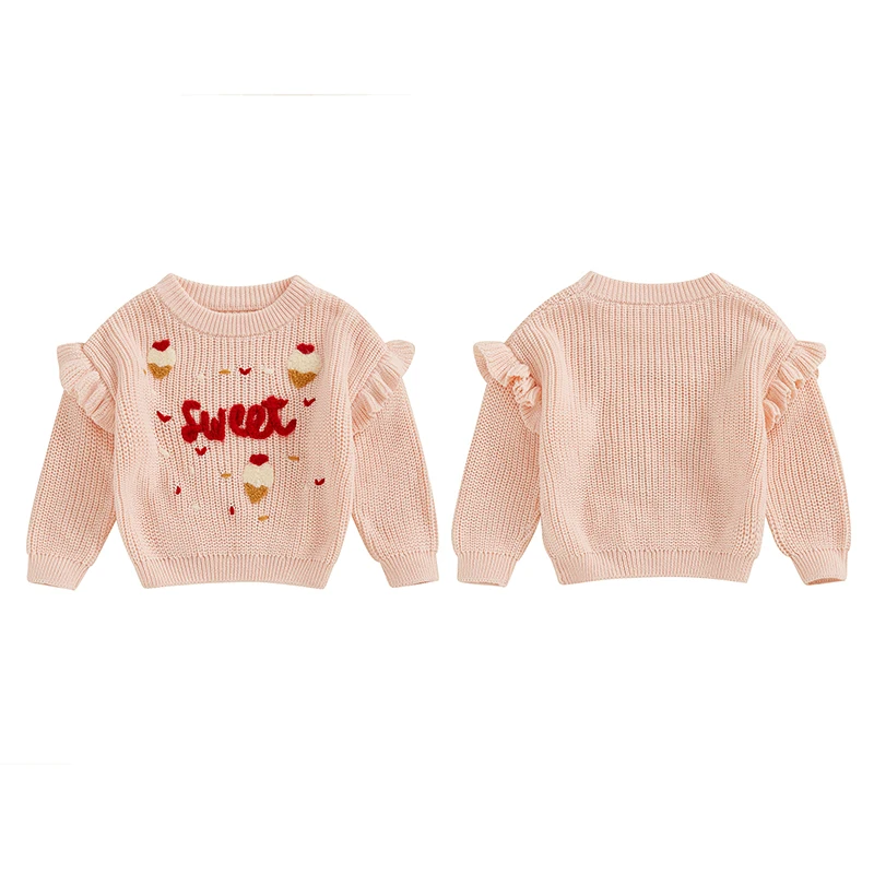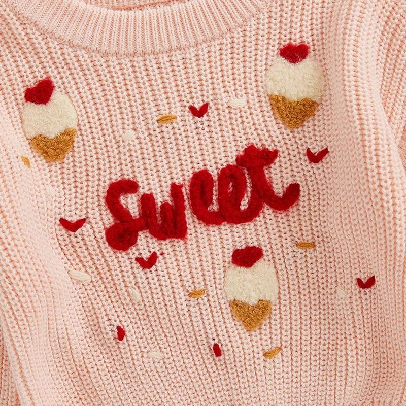 Comprar SUNSIOM Suéter para niña de 0 a 3 años, manga larga, cuello redondo, bordado de helado, jersey de punto, Tops para niños pequeños