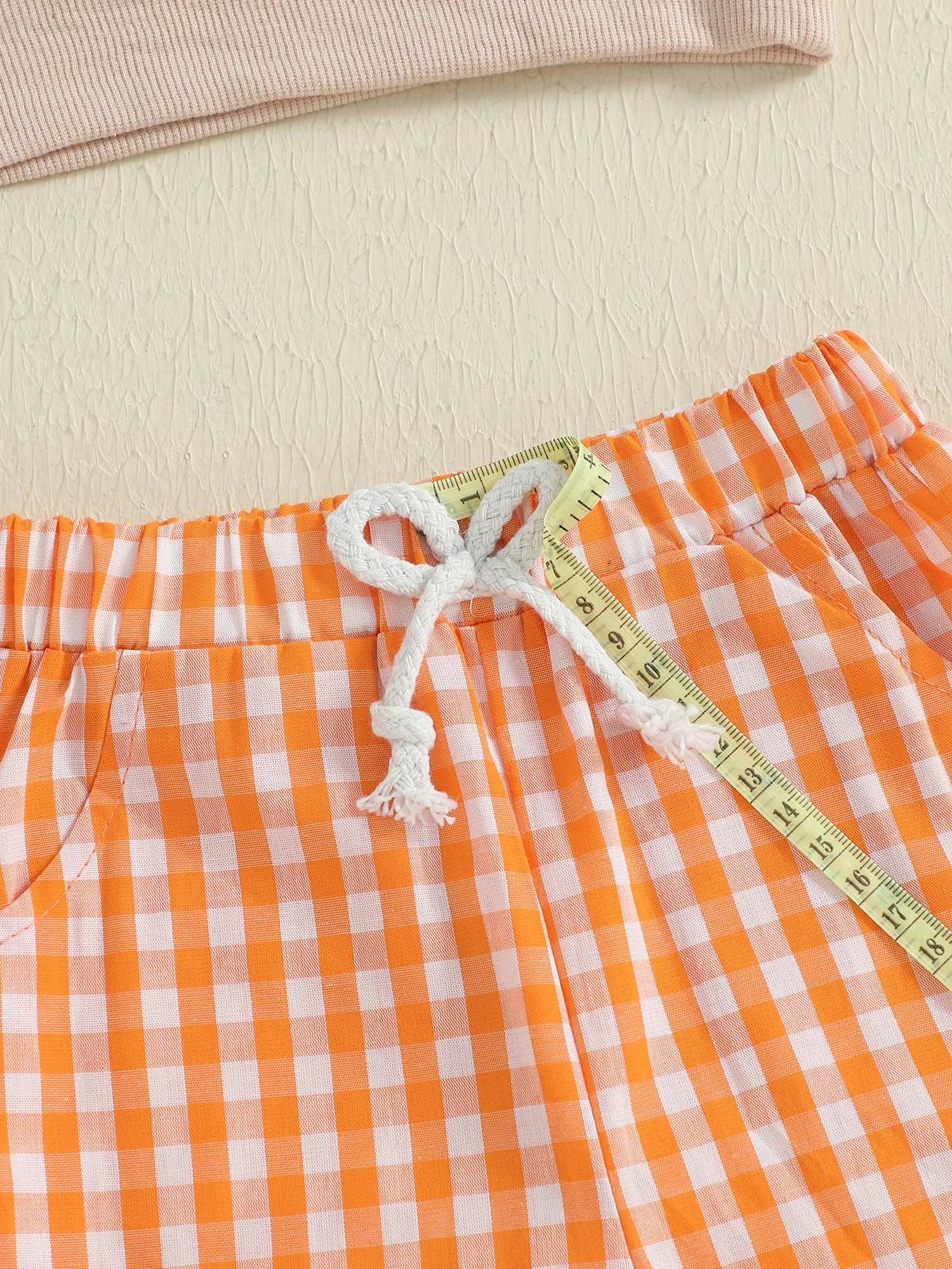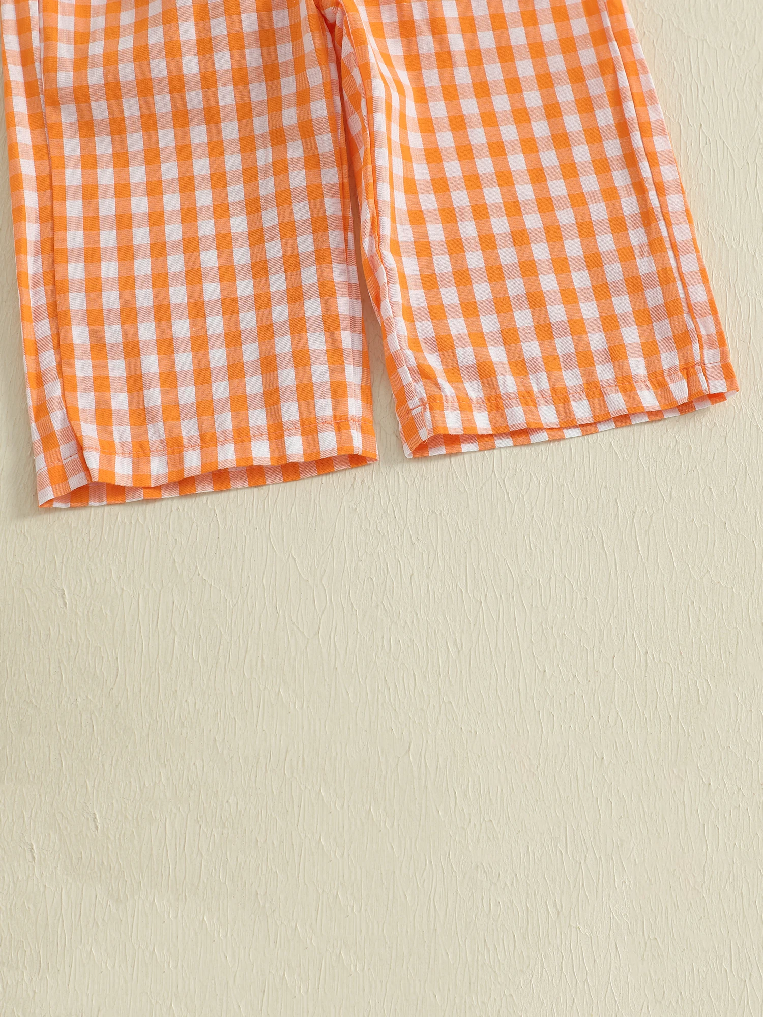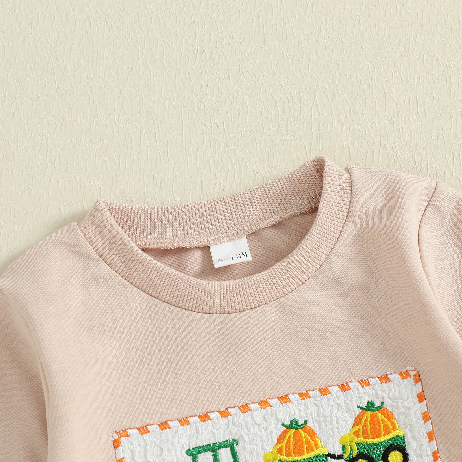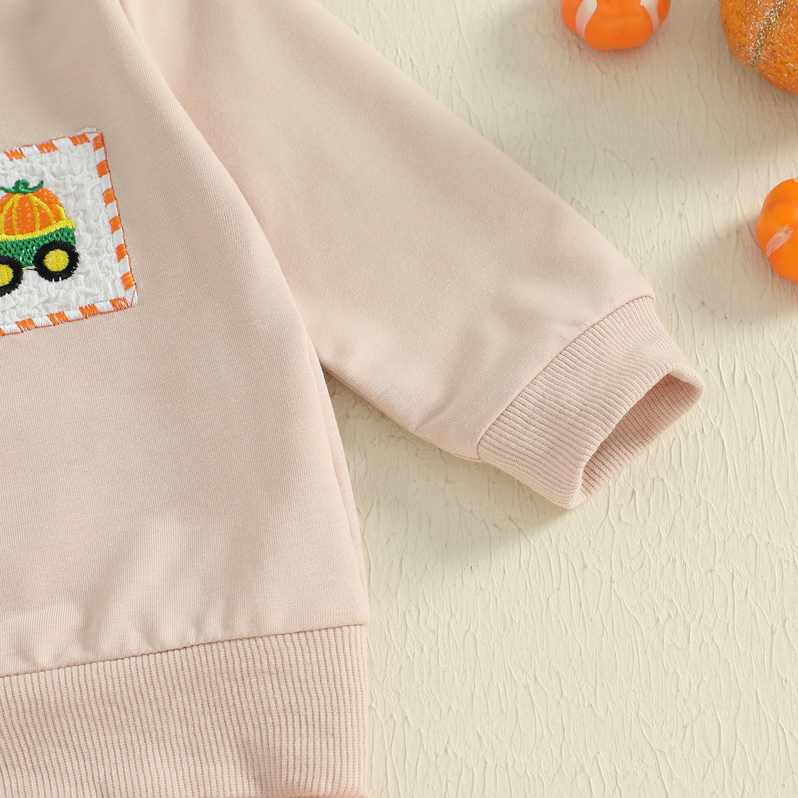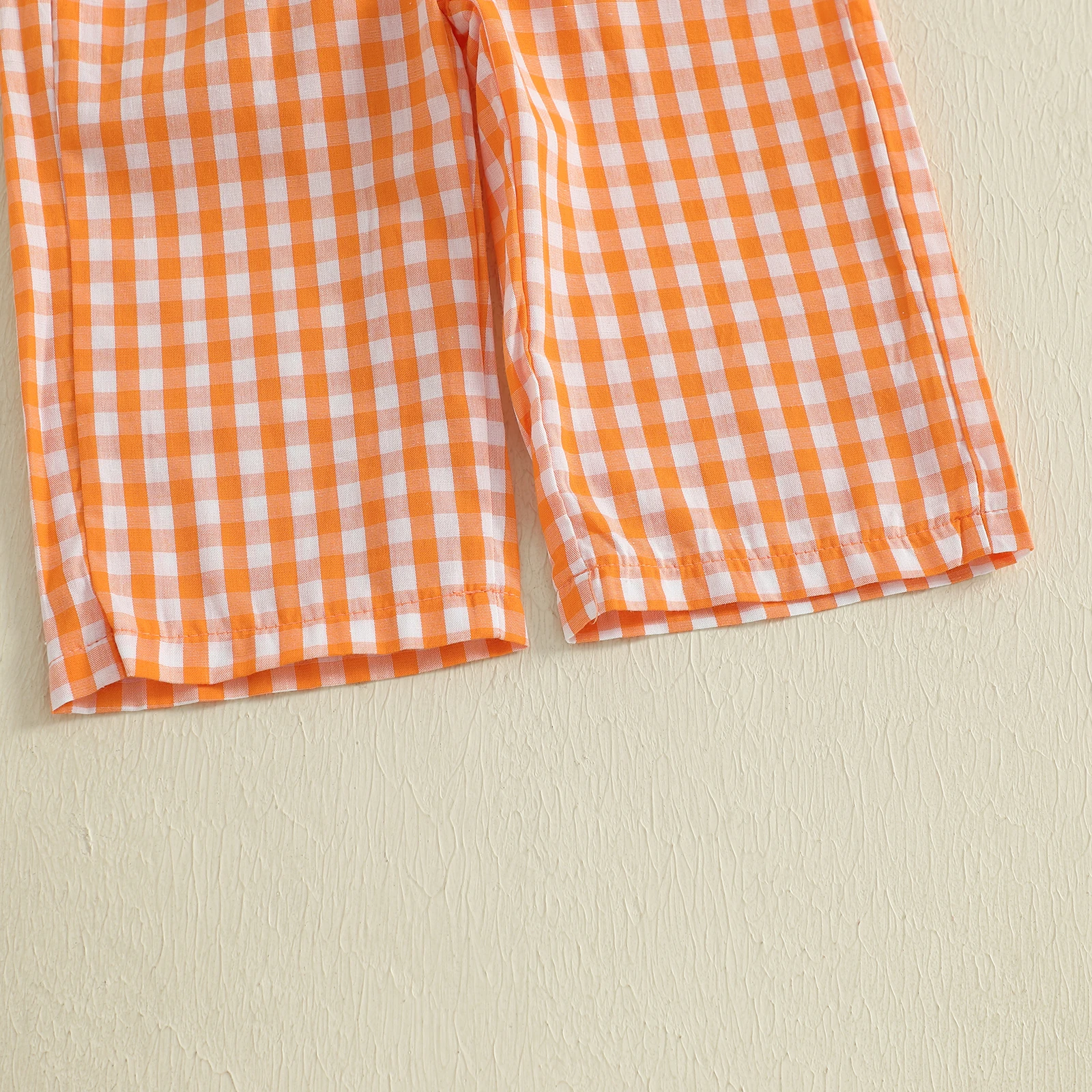 Conjunto de Halloween para bebé niño, sudadera de manga larga con bordado de calabaza y pantalones elásticos a cuadros, ropa de 2 piezas