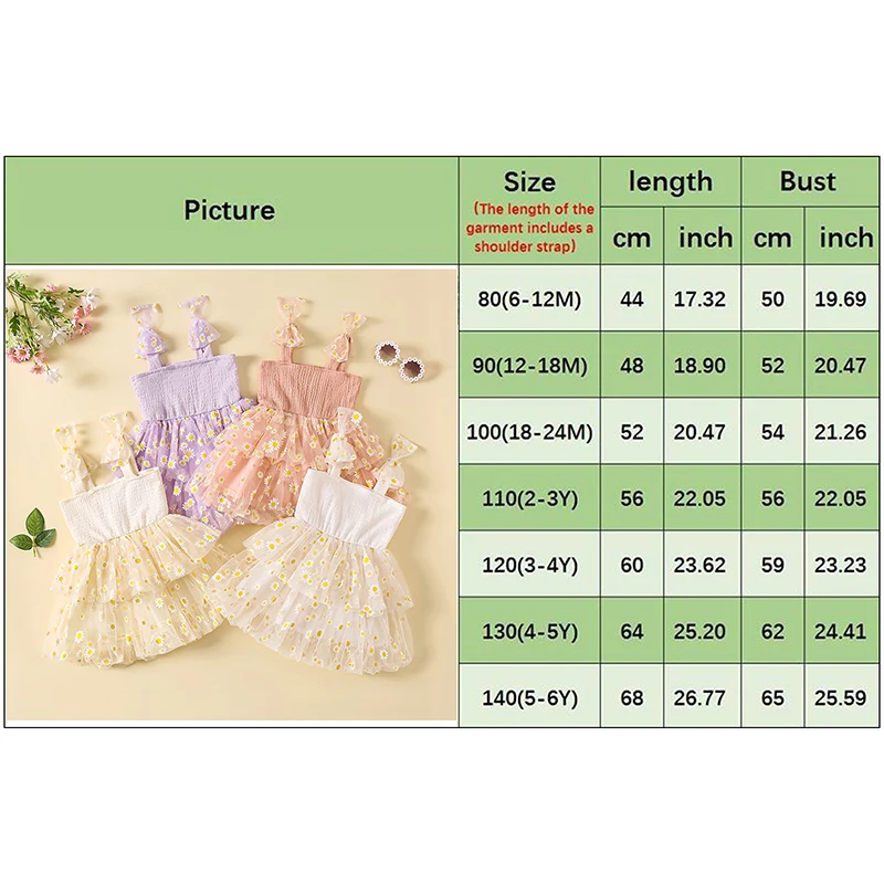 Especificación: Edad recomendada: 6-12 meses, 12-18 meses, 18-24 meses, 2-3 años, 3-4 años, 5-6 años Materiales: 100% poliéster Patrón: Margarita Color: rosa/albaricoque/blanco/púrpura Género: Niña