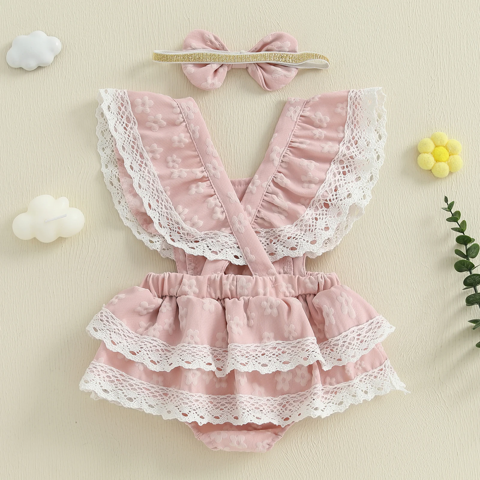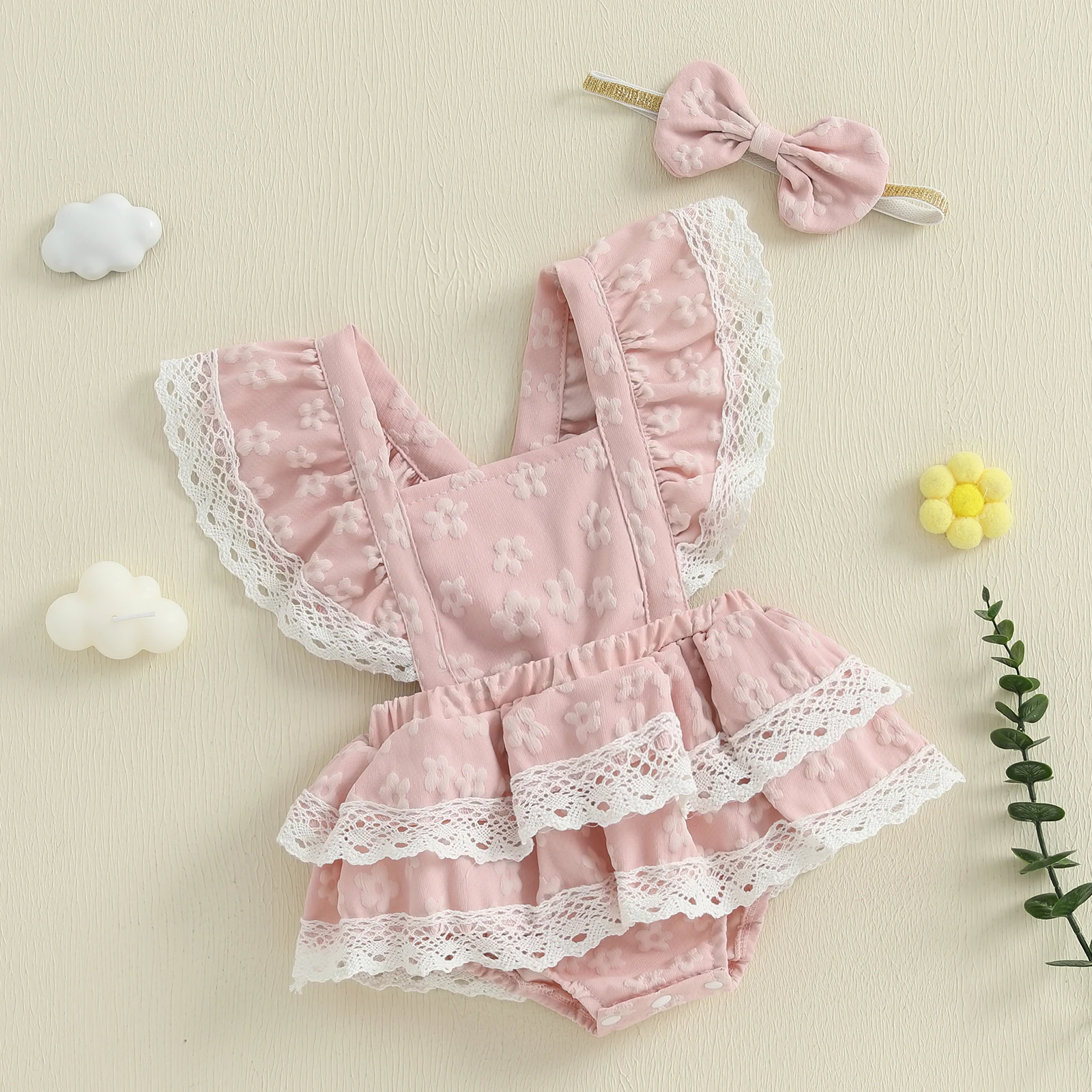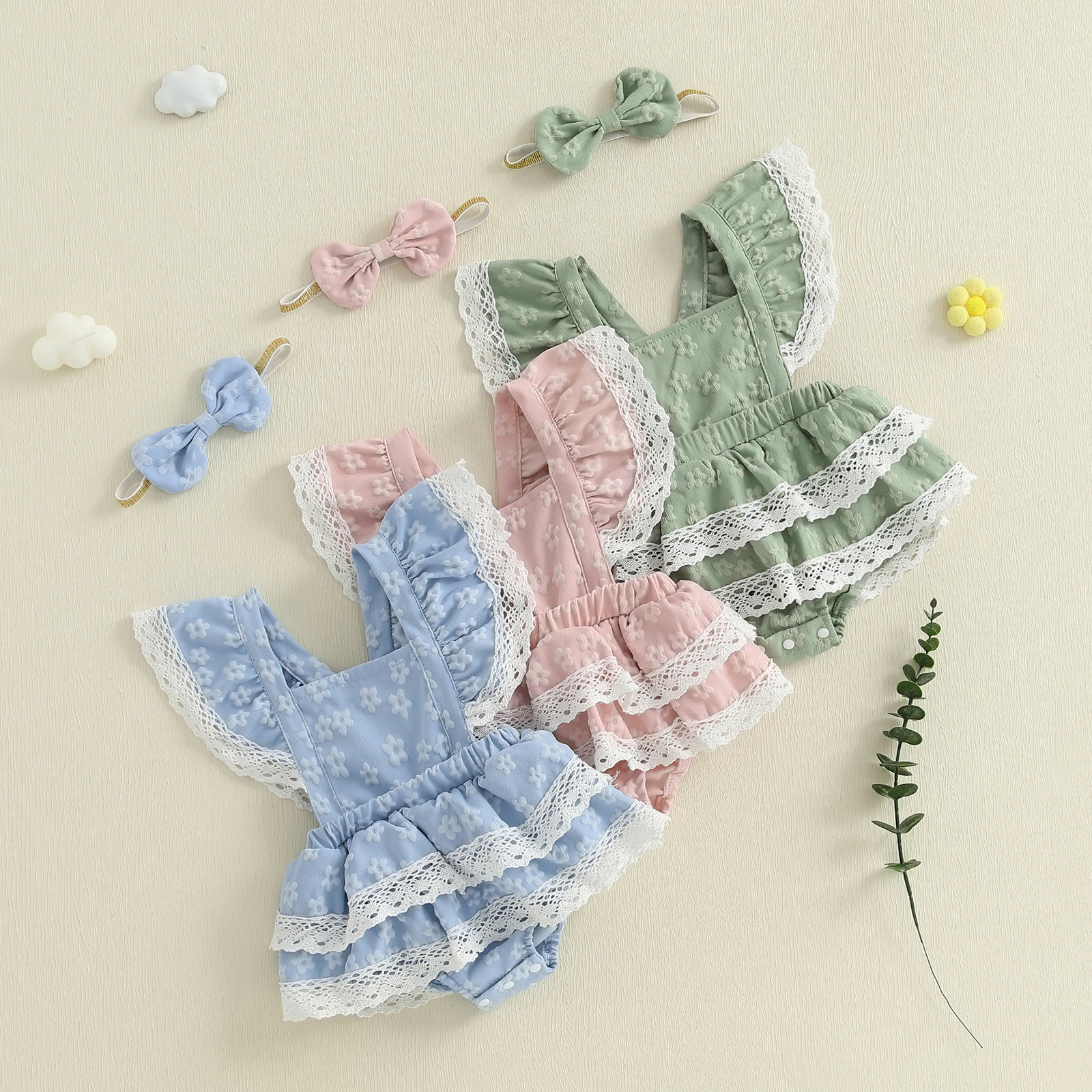 Comprar SUNSIOM Vestido mameluco de verano para niña de 0 a 18 meses, mono con estampado floral y cuello cuadrado con diadema con lazo