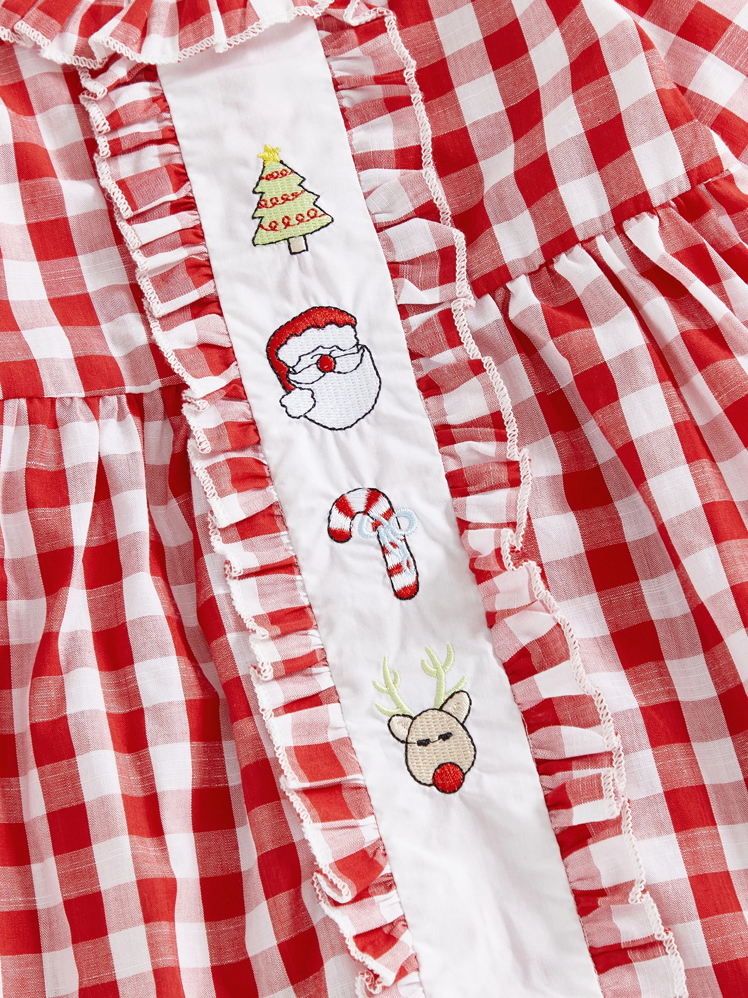 Especificación: Materiales: 95% Algodón y 5% Poliéster Manga: manga larga Patrón: ciervo, árbol de Navidad, Papá Noel, bordado de dulces de bastón y estampado a cuadros. Color rojo