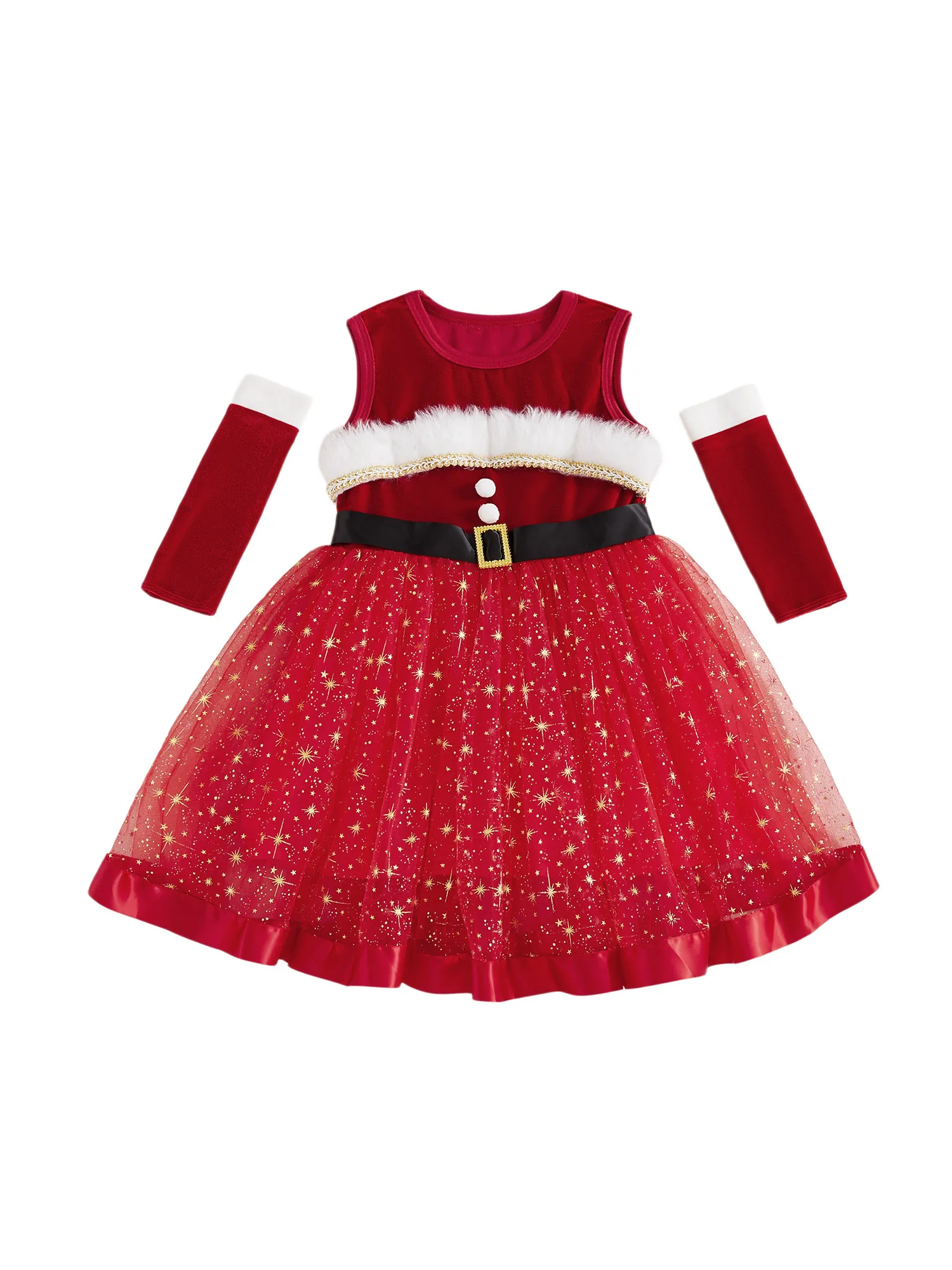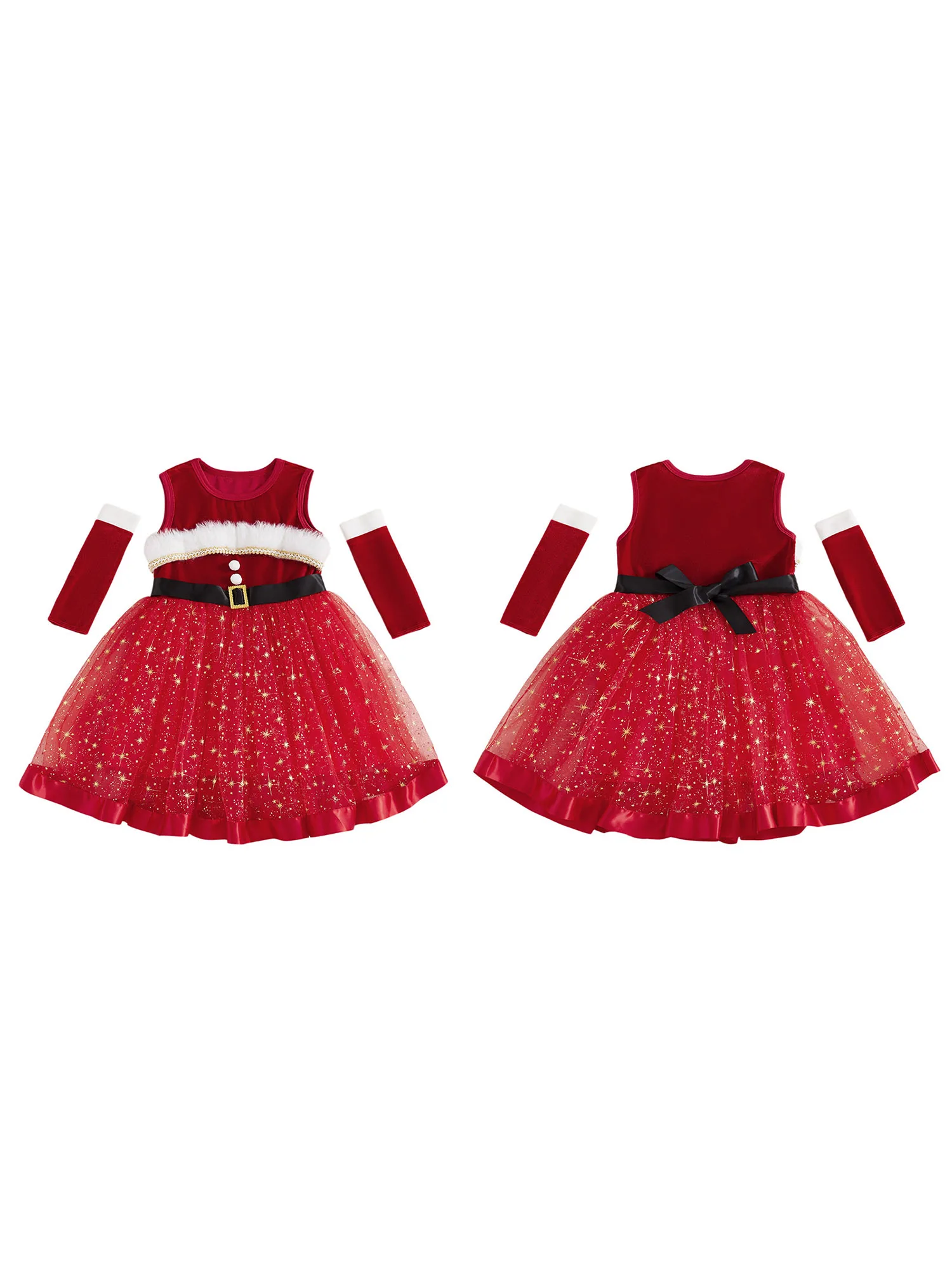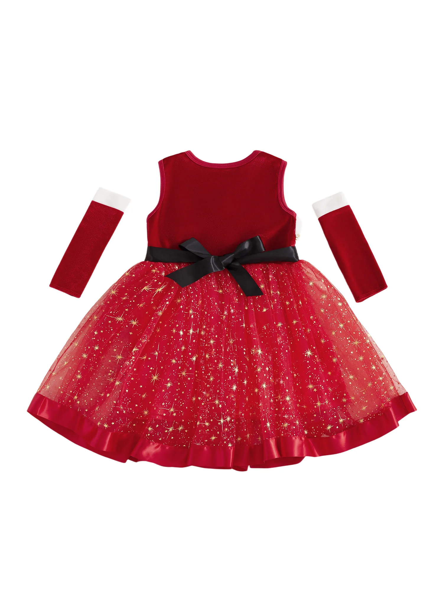 Traje de Navidad para niña, vestido de una línea de retales de tul con estrellas brillantes sin mangas y mangas largas para fiesta de cosplayEl vestido es súper elegante, para que su pequeña pueda jugar al aire libre, descansar en casa, ir de fiesta o salir con comodidad y estilo.Tabla de tallasTamaño (cm)12-18M Longitud: 48 Busto: 54 Hombro: 23 Edad sugerida: 12-18 meses18-24M Longitud: 52 Busto: 56 Hombro: 24 Edad sugerida: 18-24 meses2-3Y Longitud: 57 Busto: 58 Hombro: 25 Edad sugerida: 2-3 años3-4Y Longitud: 62 Busto: 61 Hombro: 26 Edad sugerida: 3-4 años4-5Y Longitud: 66 Busto: 64 Hombro: 27 Edad sugerida: 4-5 añosTamaño (pulgadas)12-18M Longitud: 18,90 Busto: 21,26 Hombro: 9,06 Edad sugerida: 12-18 meses18-24M Longitud: 20,47 Busto: 22,05 Hombro: 9,45 Edad sugerida: 18-24 meses2-3 años Longitud: 22,44 Busto: 22,83 Hombro: 9,84 Edad sugerida: 2-3 años3-4Y Longitud: 24,41 Busto: 24,02 Hombro: 10,24 Edad sugerida: 3-4 años4-5 años Longitud: 25,98 Busto: 25,20 Hombro: 10,63 Edad sugerida: 4-5 añosEspecificaciónNombre del artículo: Conjunto de vestido para niñasColor rojoMaterial: 85% poliéster, 15% elastanoManga: sin mangasTamaño: 12-18 meses, 18-24 meses, 2-3 años, 3-4 años, 4-5 añosContenido del paquete1 pieza x vestido de niña1 par de mangasConsejos amigables1. Por favor permita una diferencia del 2-3% según la medición manual.2. Tenga en cuenta que las mangas deben aceptarse una ligera diferencia de color debido a la luz y la pantalla. Gracias.