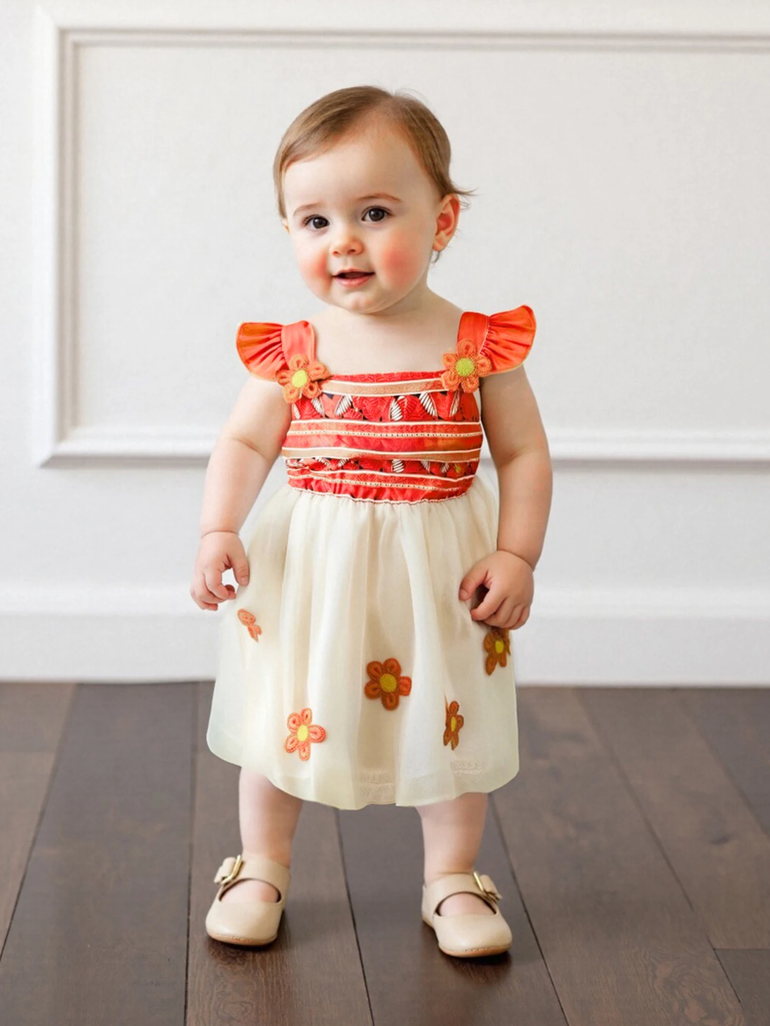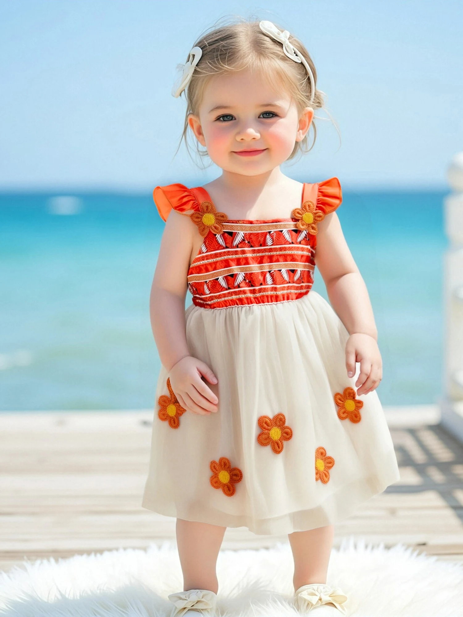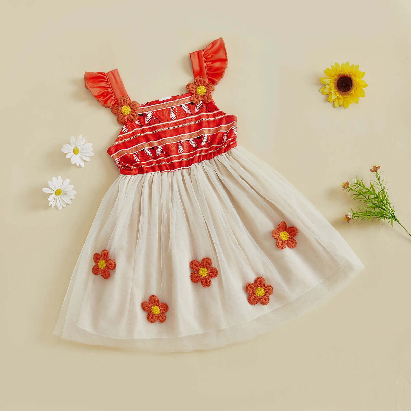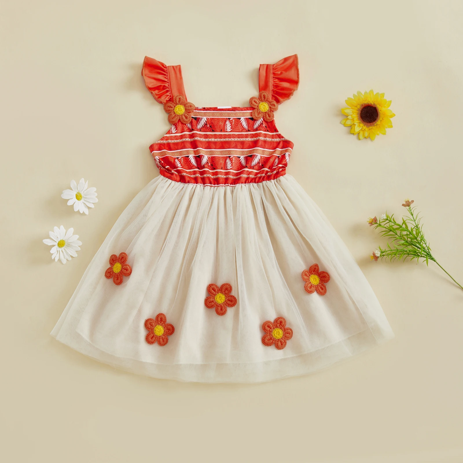 Vestido de verano para niña pequeña, vestido de retales de tul con flores en 3D sin mangas con estampado de hojas