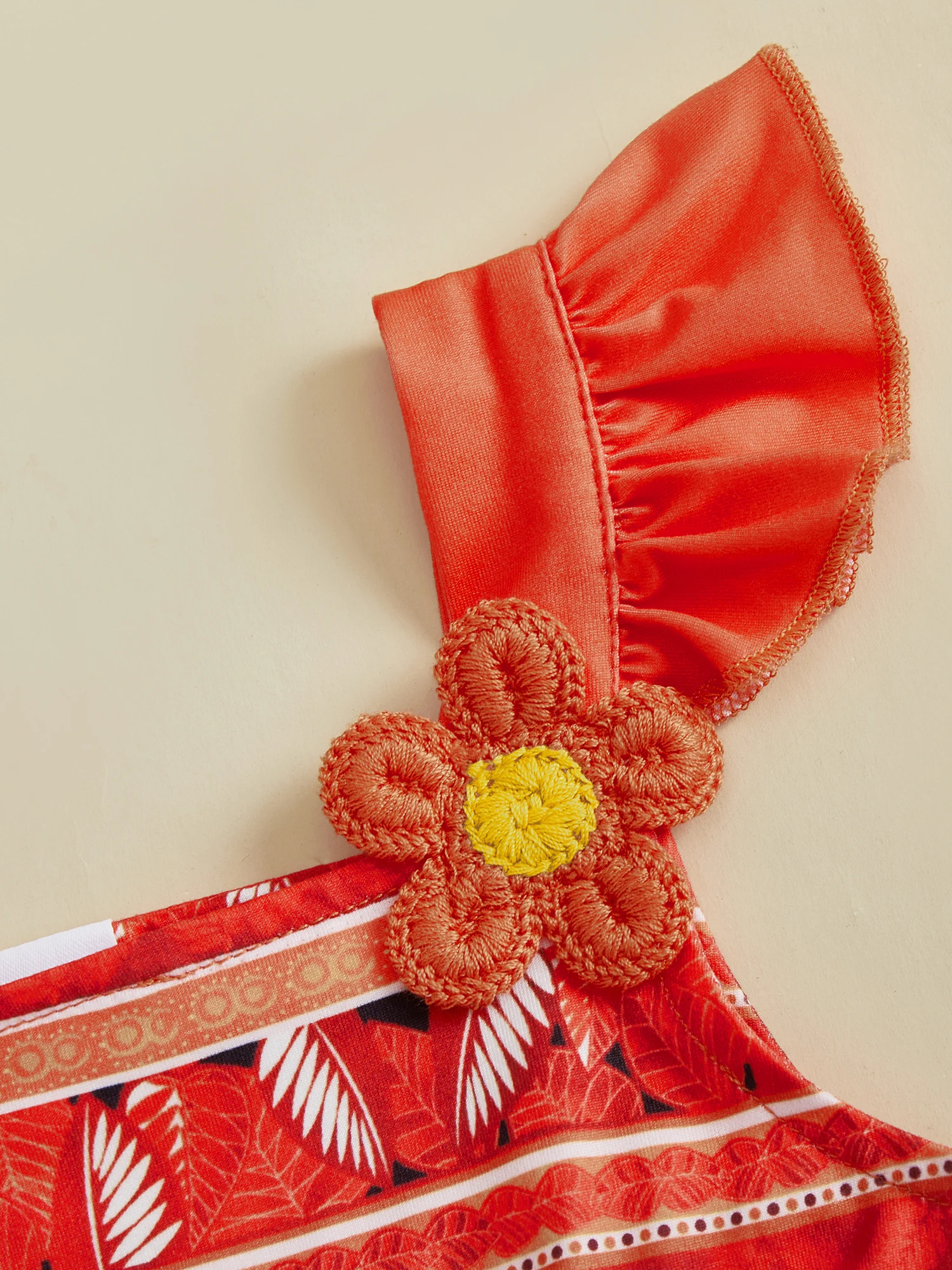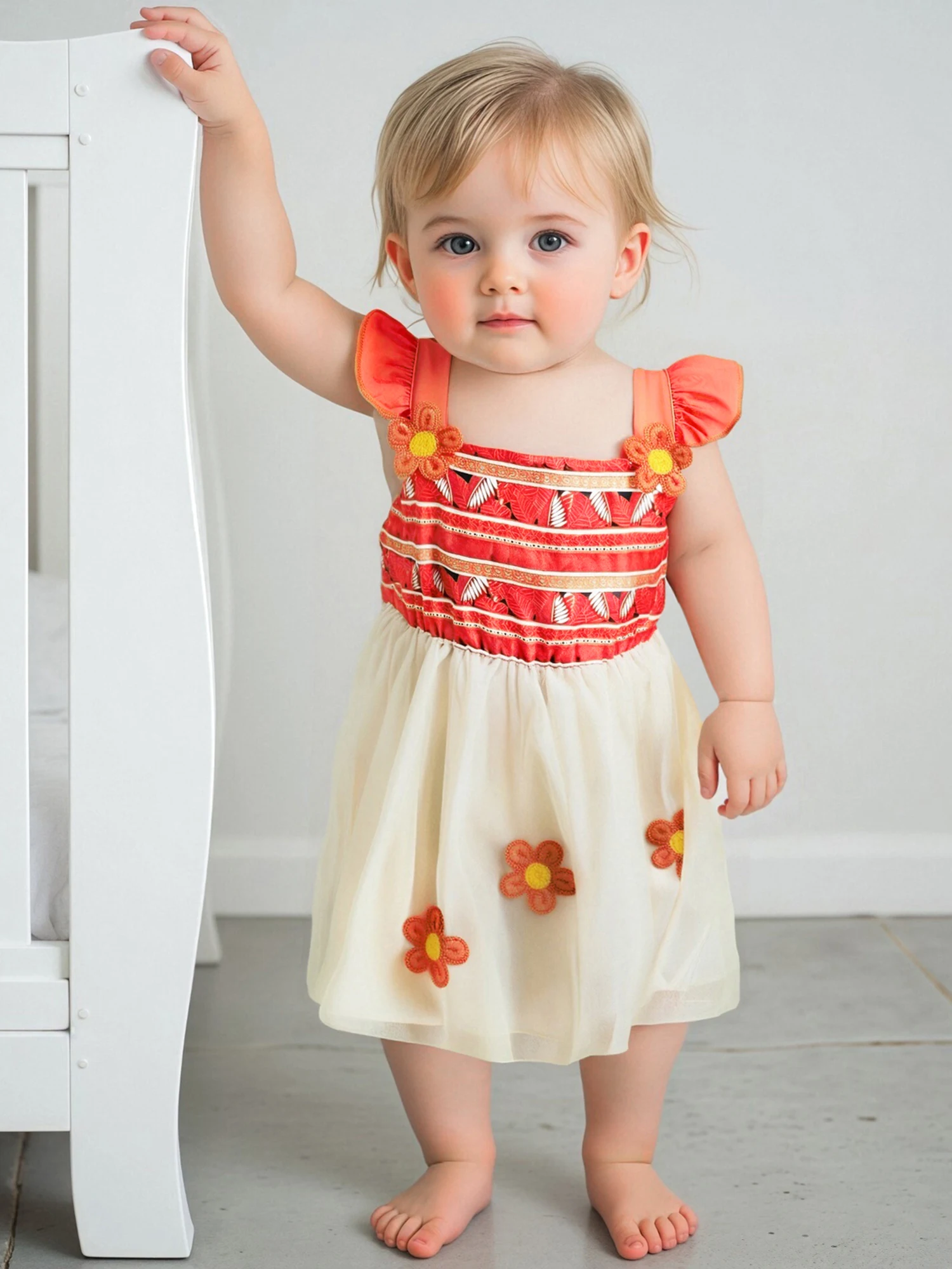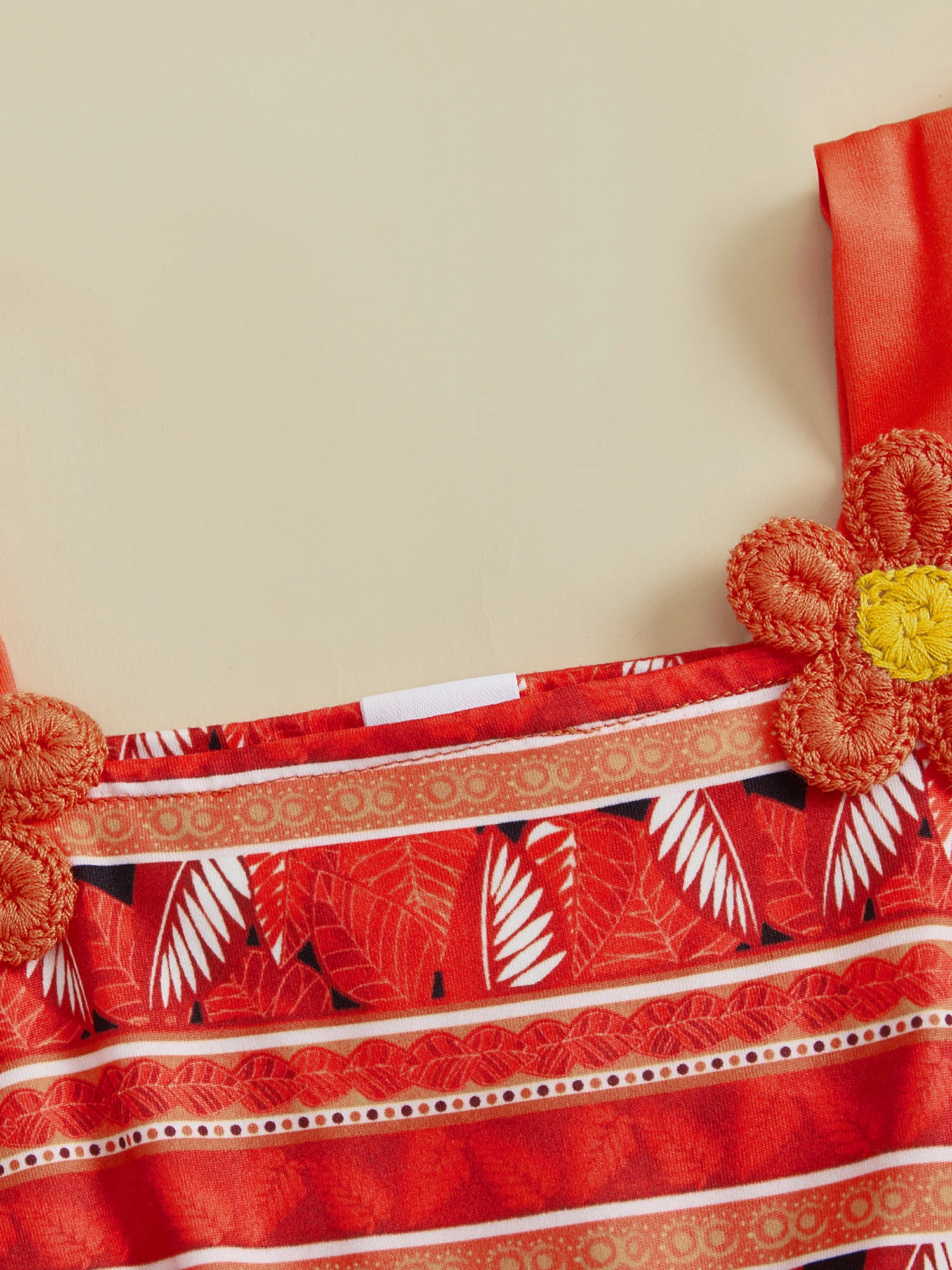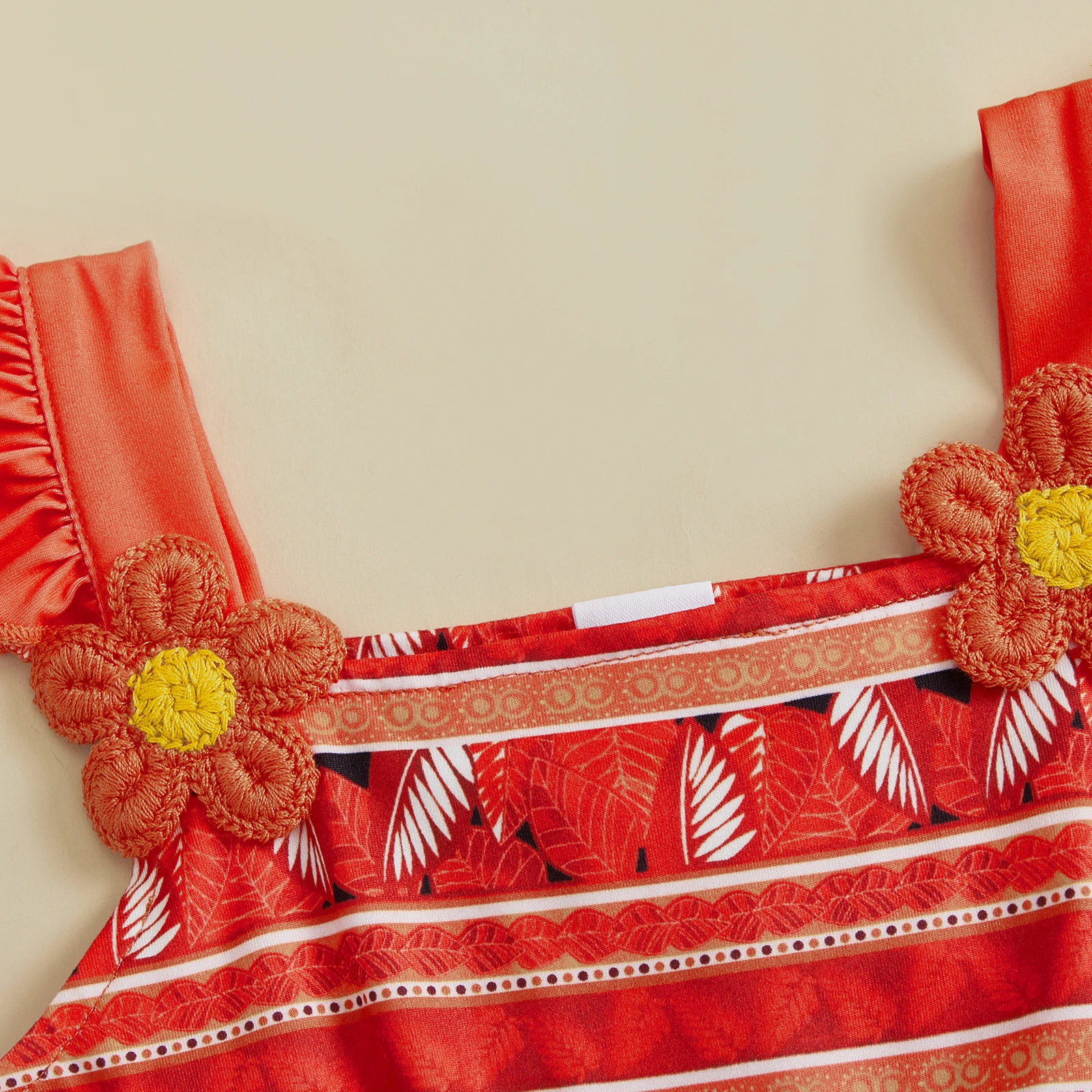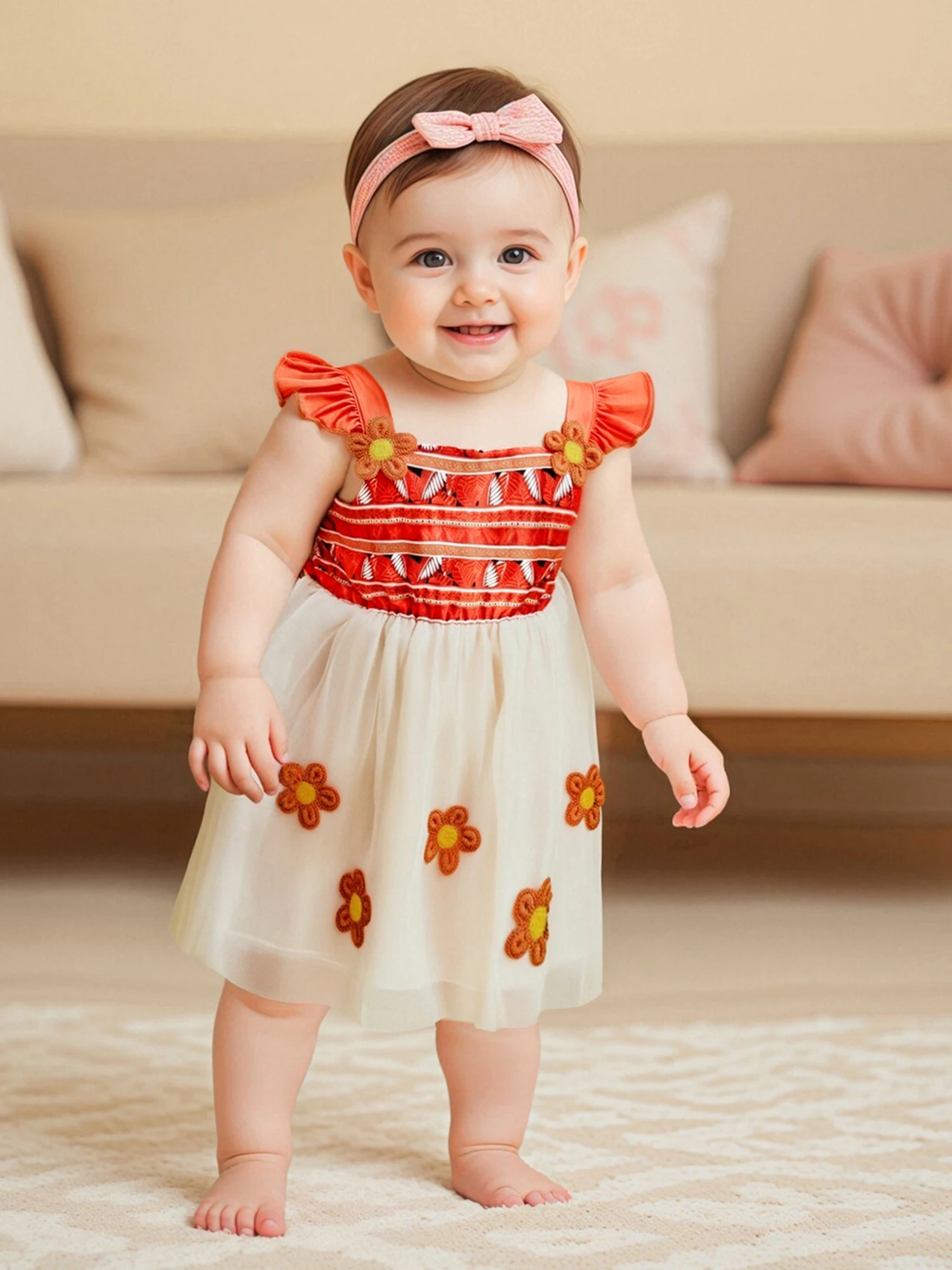 Vestido de verano para niña pequeña, vestido de retales de tul con flores en 3D sin mangas con estampado de hojas