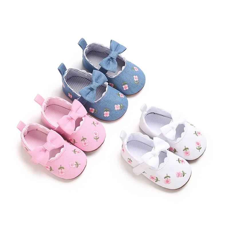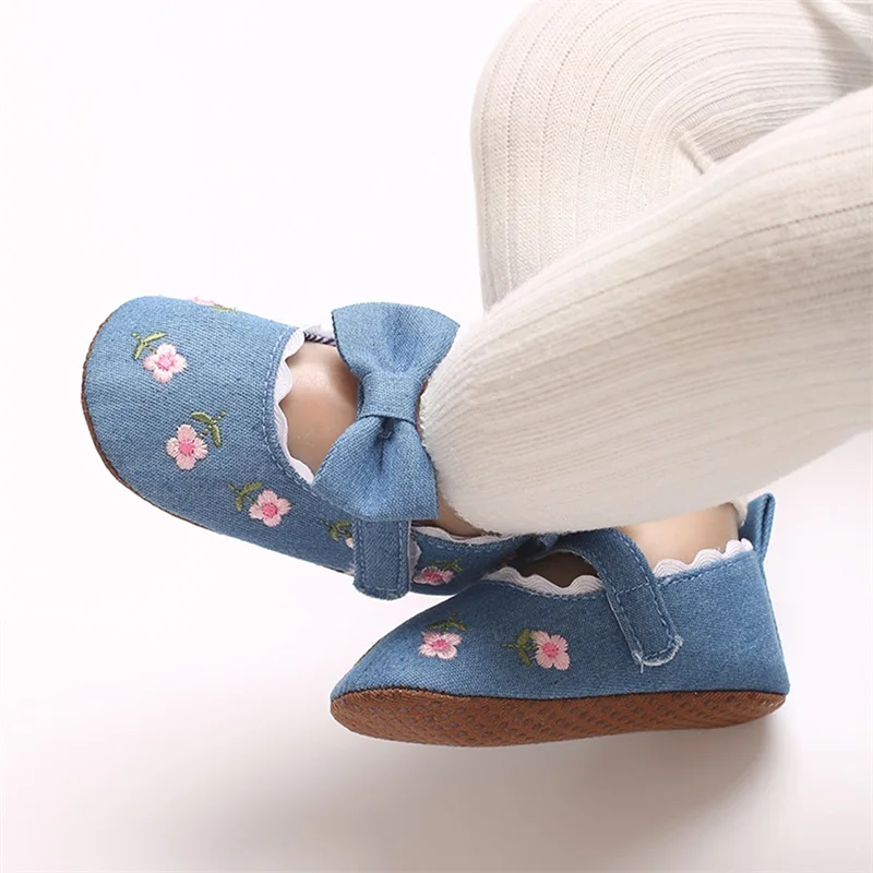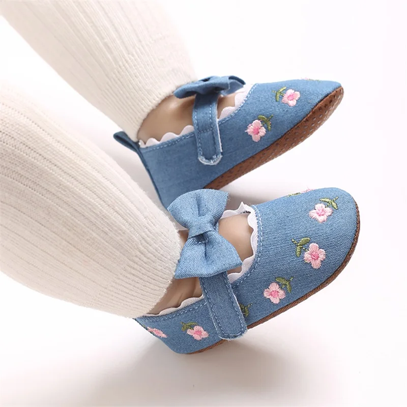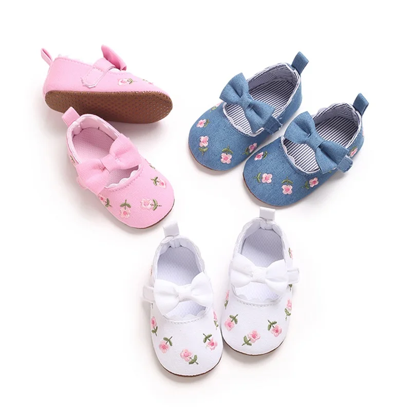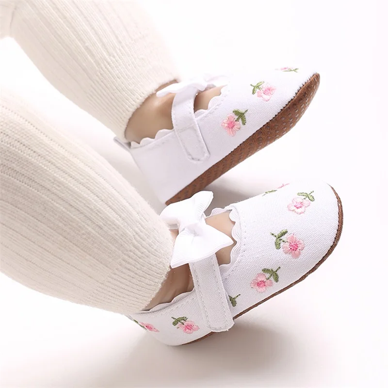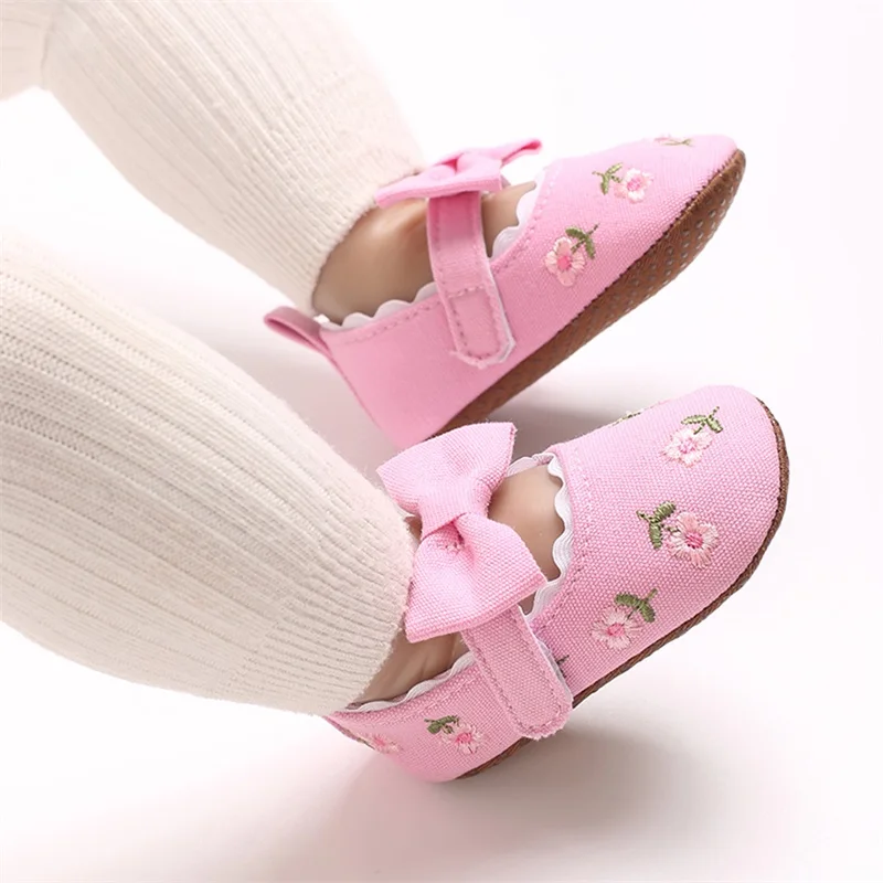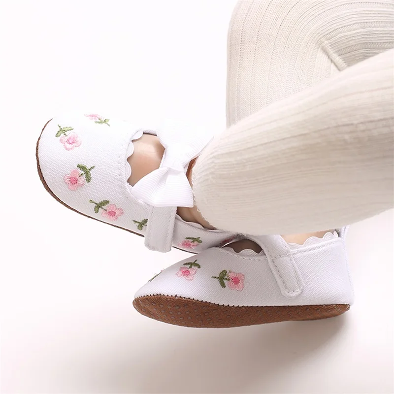 Zapatos planos Mary Jane para niña, bordado Floral, suela suave antideslizante, primeros zapatos para caminar, zapatos bonitos para primavera y otoño