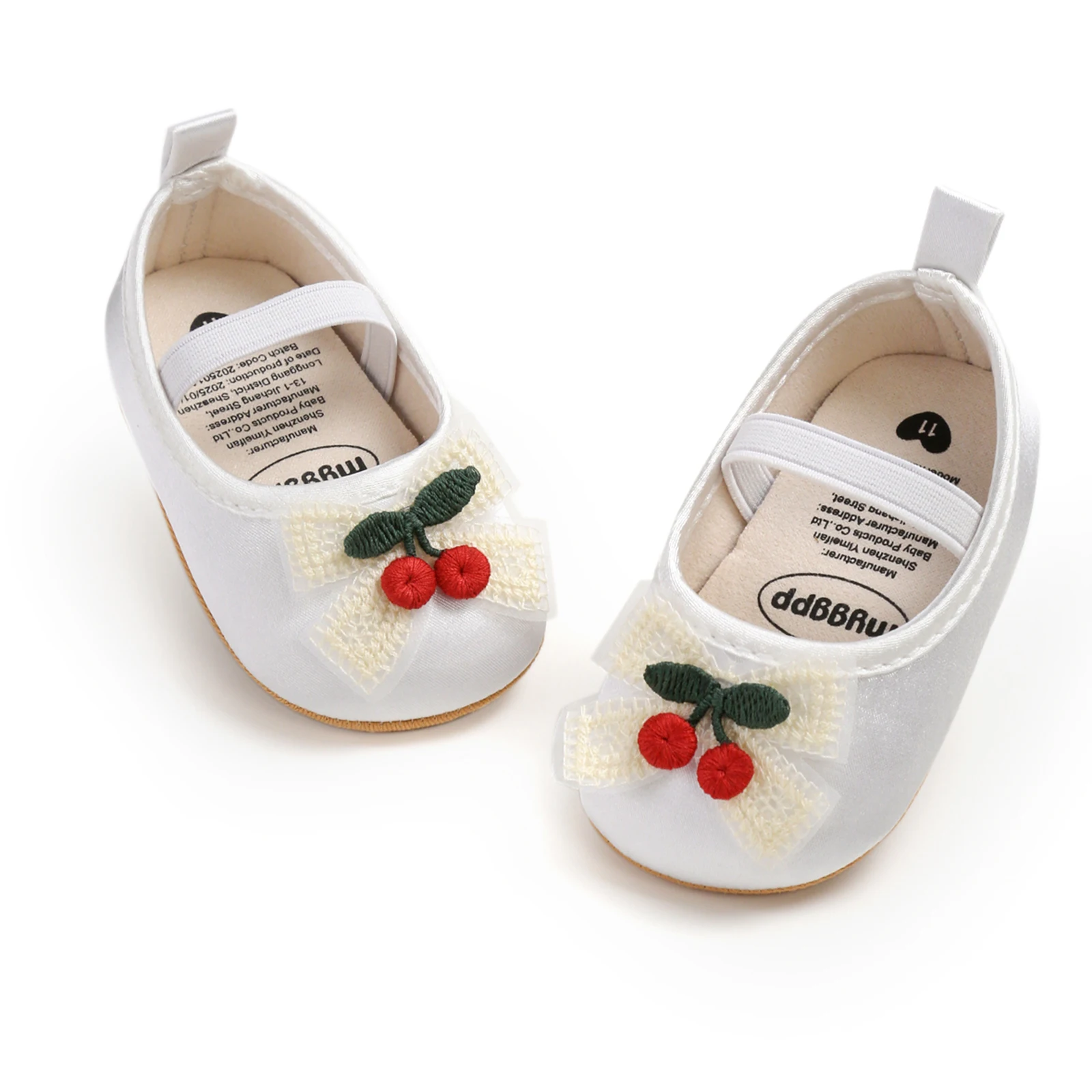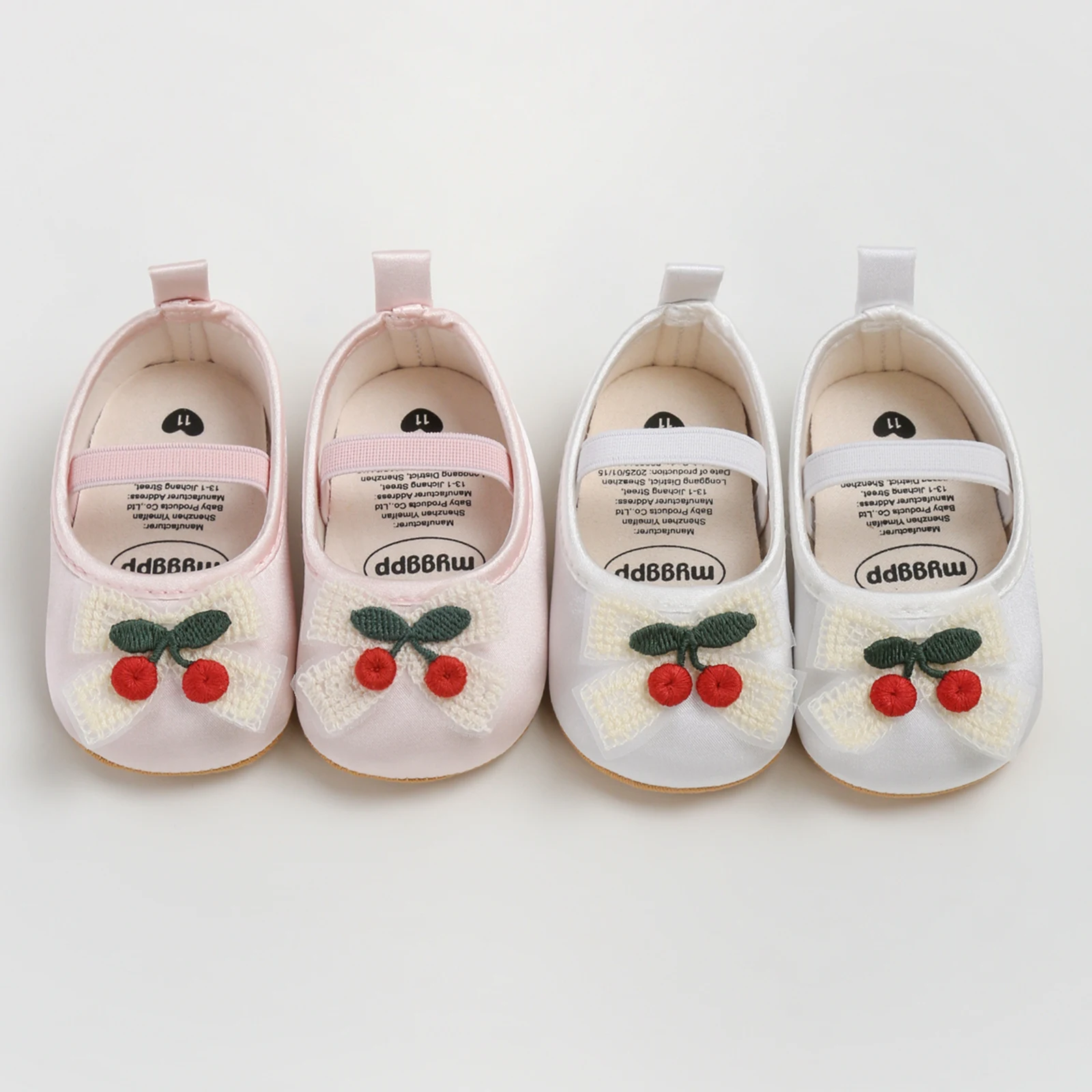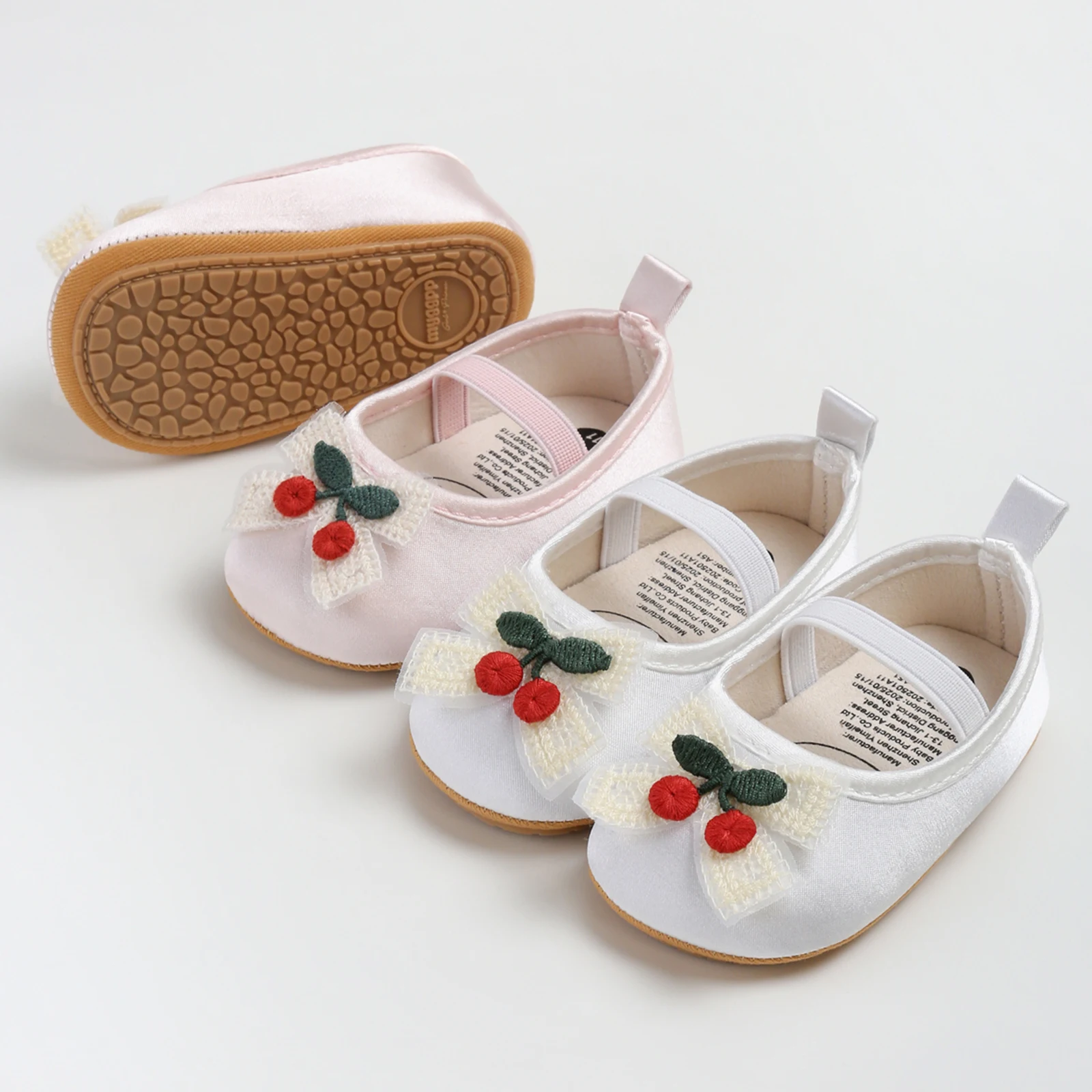 Zapatos de princesa para niñas, zapatos para primeros pasos con fondo antideslizante suave con lazo de cereza, zapatos para niños pequeños