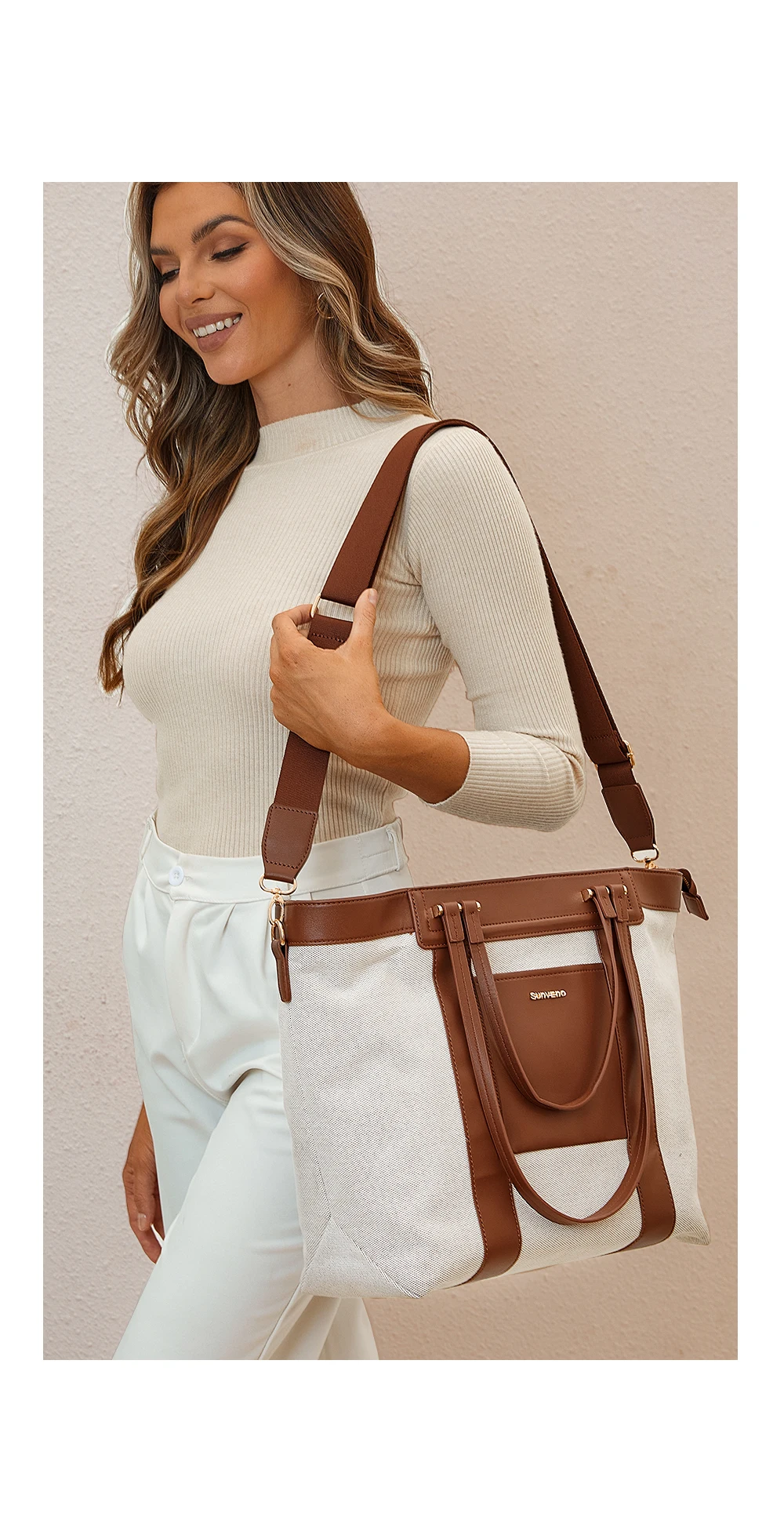 Incorpora lujo con Mommy Tote Bag, elaborado por expertos con características elegantes.Las manijas reforzadas y la parte inferior de una partición flotante le dan resistencia y estabilidad a esta pieza sofisticada fabricada con exterior de lona duradero con puntos de alfiler, interior de poliéster sedoso, herrajes galvanizados y adornos clásicos.Además, es resistente al óxido, las manchas y la decoloración, ¡incluso lavable!Mientras sacas la puerta, asegura tus elementos esenciales en el bolsillo exterior y cinco bolsillos interiores profundos, incluidos uno para una computadora portátil.
