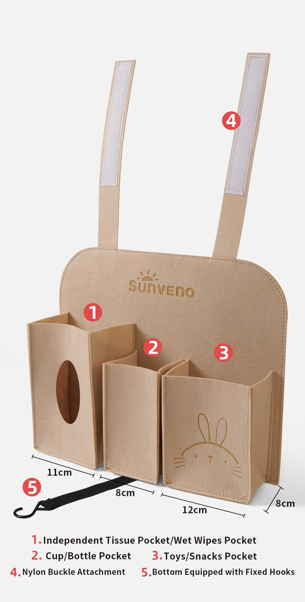 Comprar Sunveno Diseño organizador de bolsa de almacenamiento colgante para asiento de coche de bebé para almacenamiento de pañuelos, tazas y refrigerios