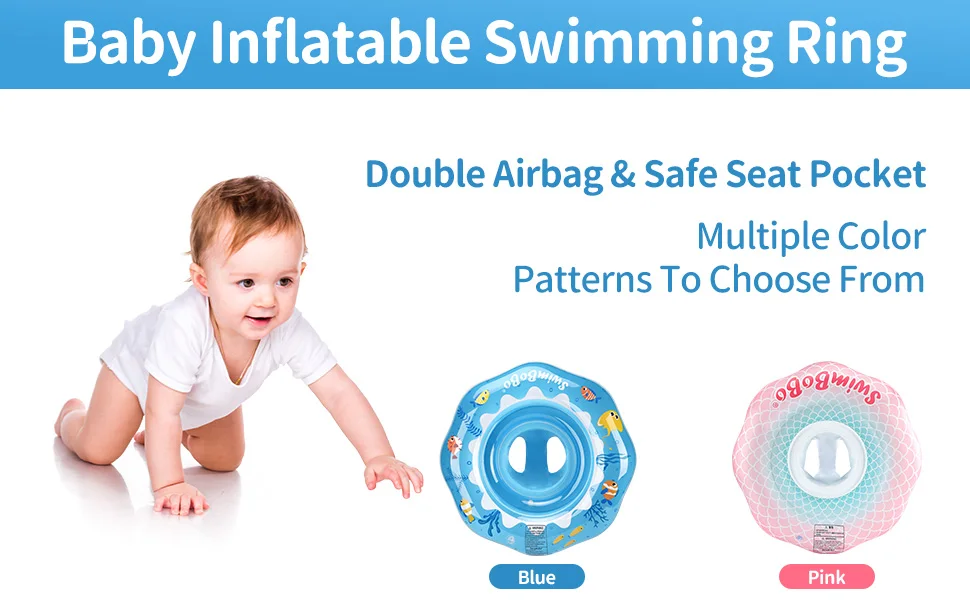 Comprar Swimbobo-asiento de bebé rosa y azul, anillo flotante, juguete de agua para niños, anillos de natación inflables de PVC grueso para piscina, portátil de verano