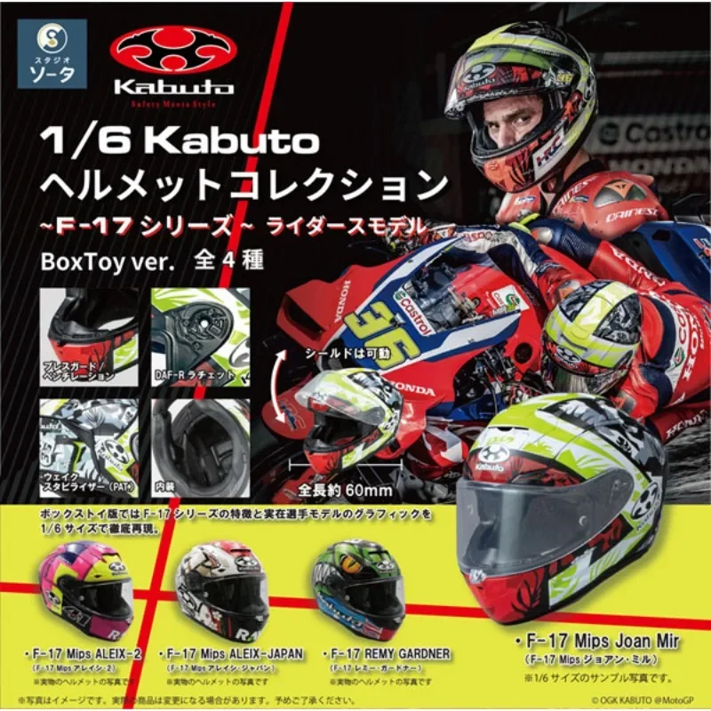El modelo insignia de la marca japonesa de cascos "OGK KABUTO", la serie F-17, se reproduce de forma realista en una miniatura precisa.