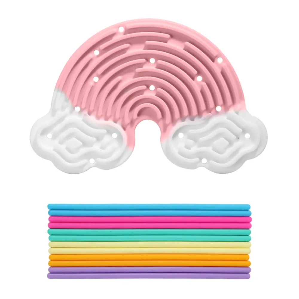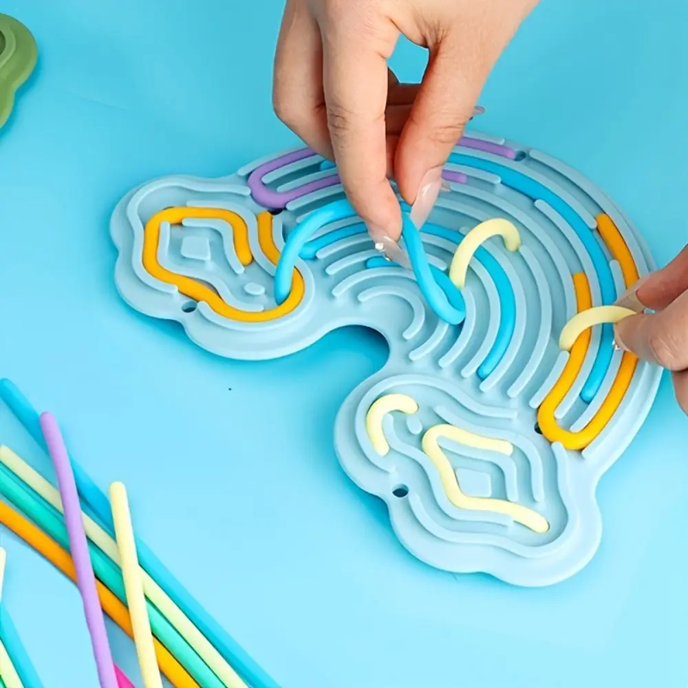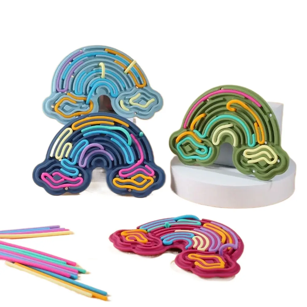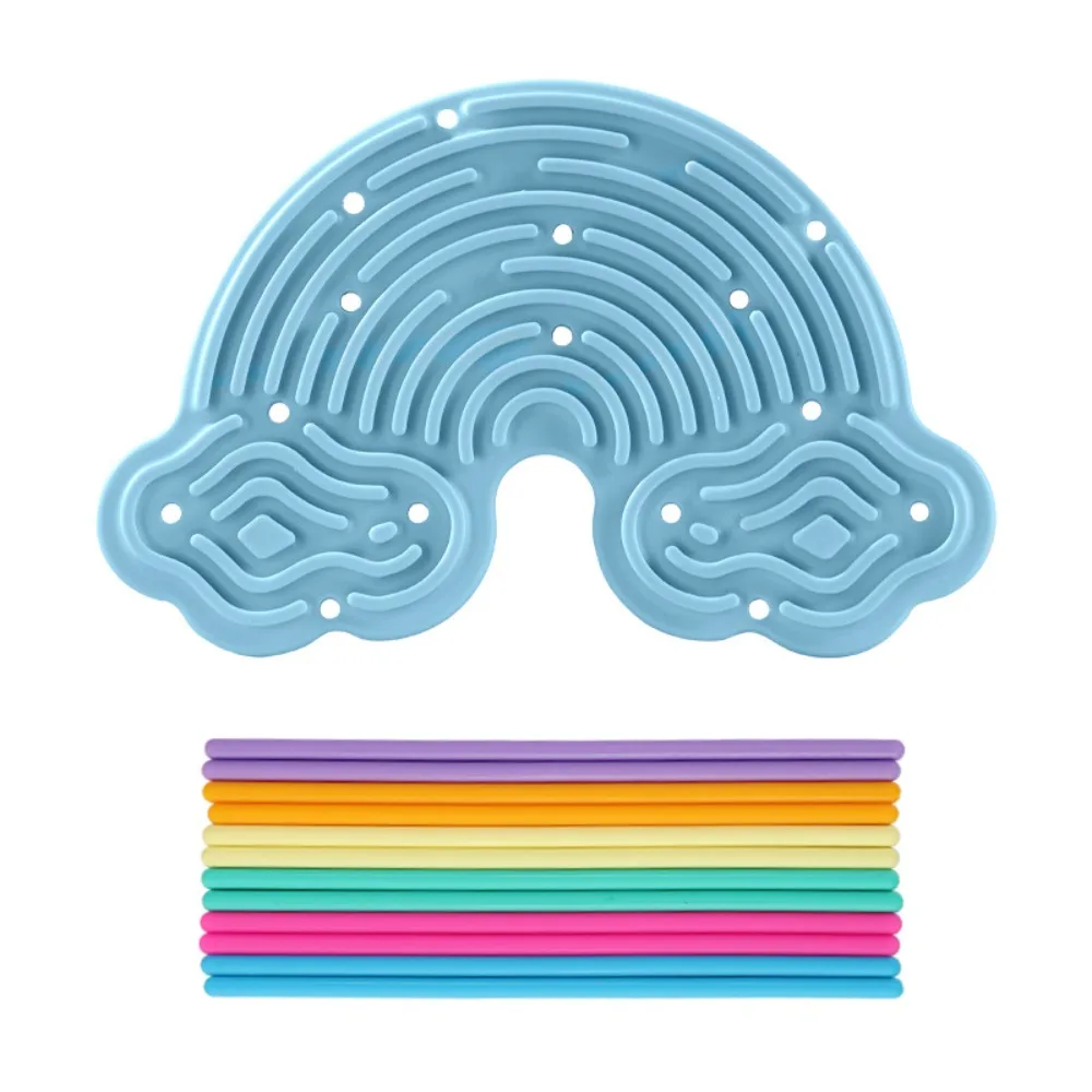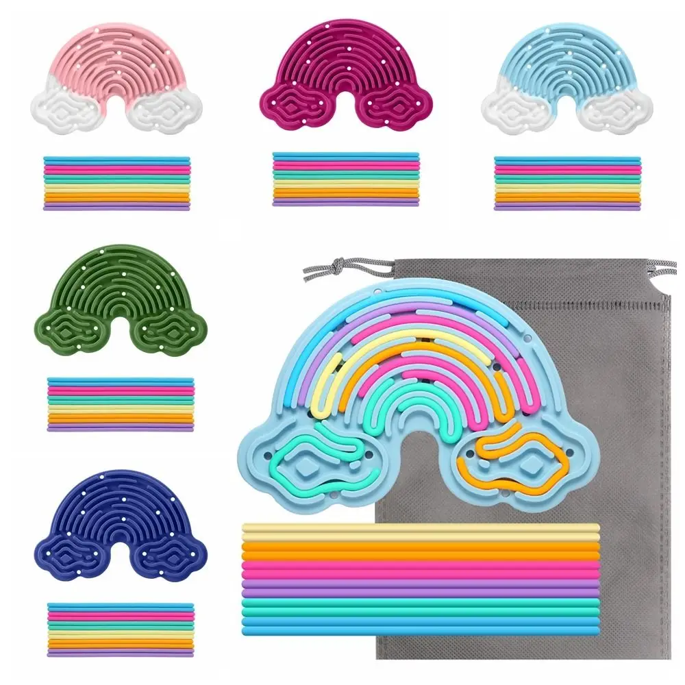 Comprar Tablero de actividades sensoriales de silicona, juguete antiestrés de doble cara con 12 cuerdas, calmante, alivio del estrés, juguetes sensoriales de arcoíris, TDAH y autismo