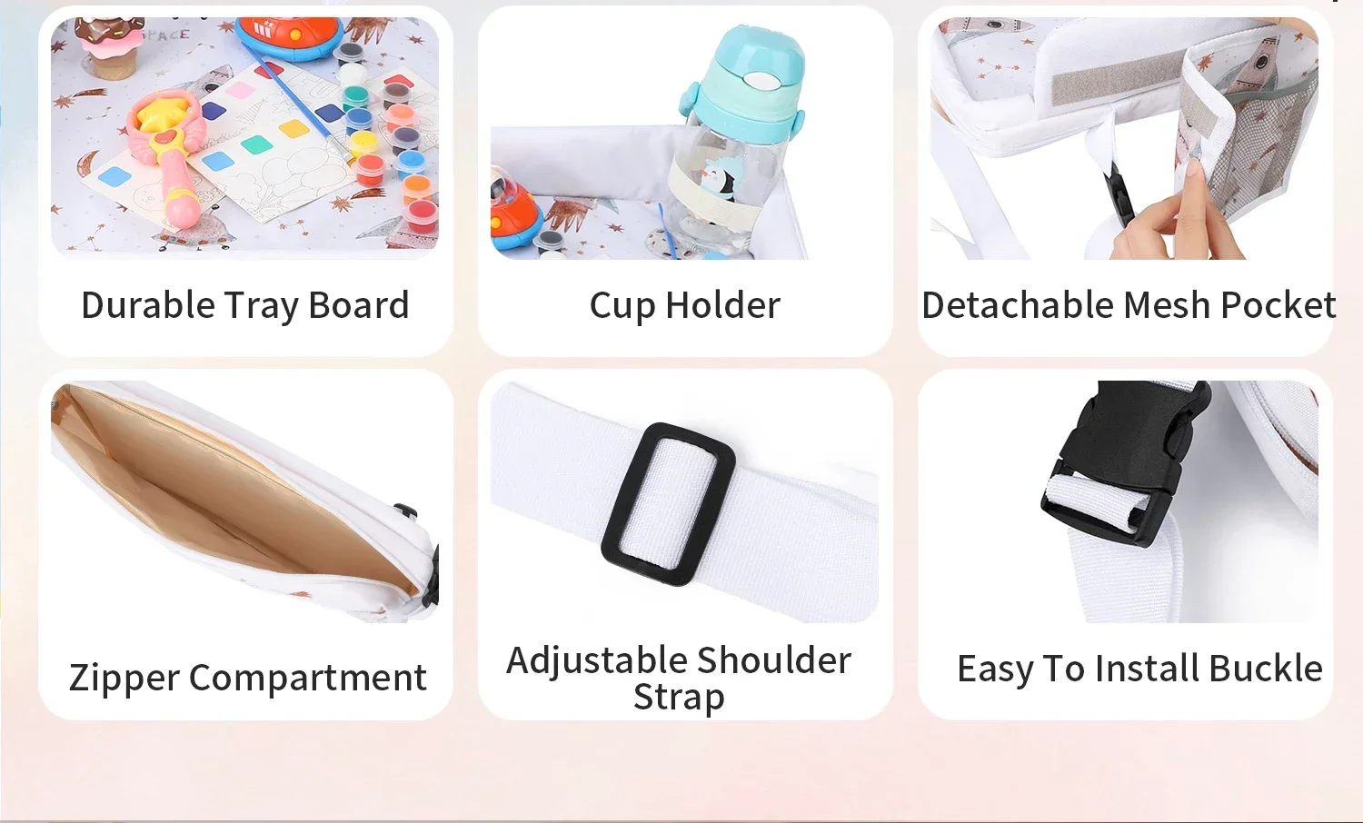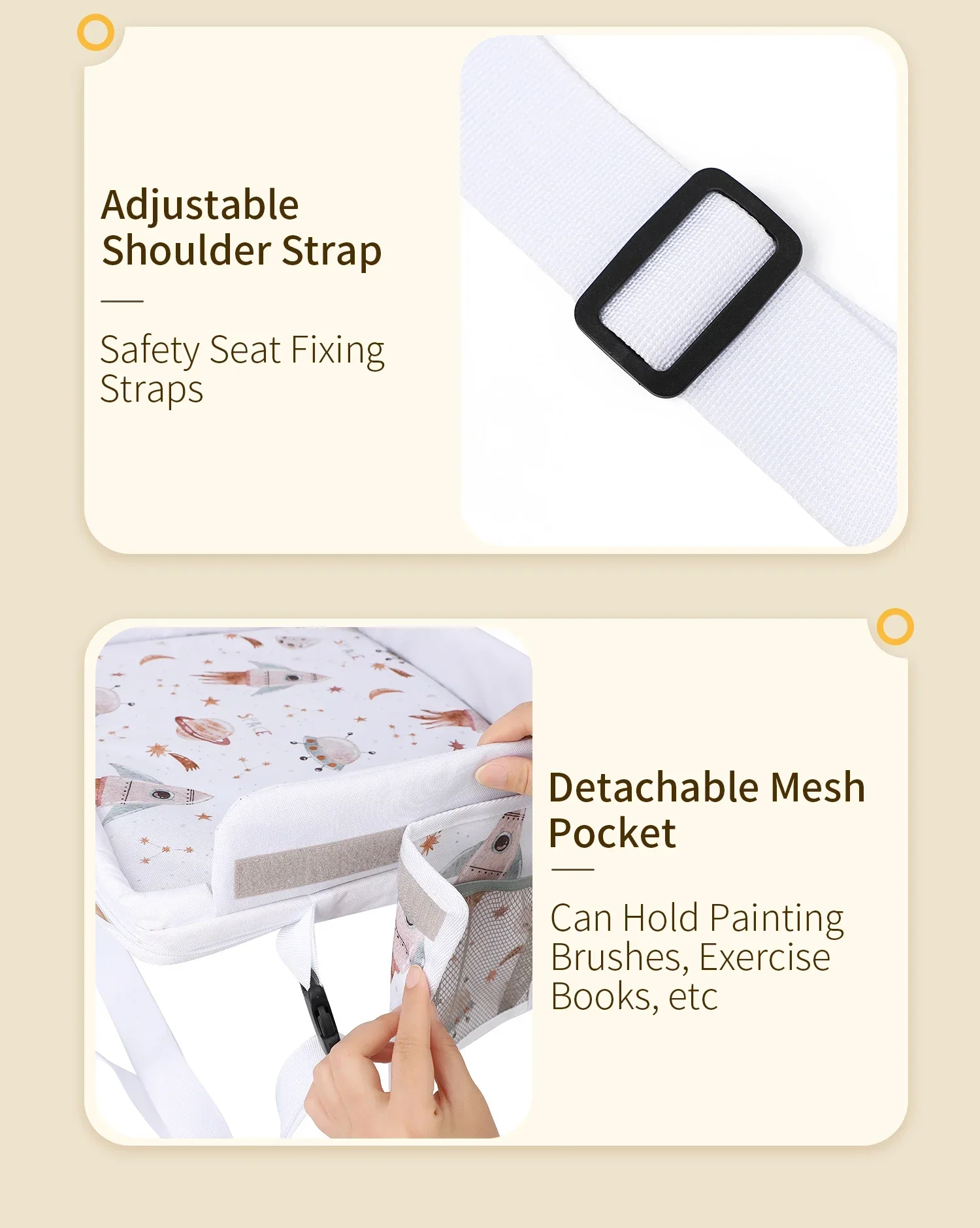 Tablero de escritura, bandeja de viaje, coche para niños, tablero de dibujo portátil, bolsa de almacenamiento de juguetes, tableta, ordenador, capacidad, bolsa fija, tablero de dibujo