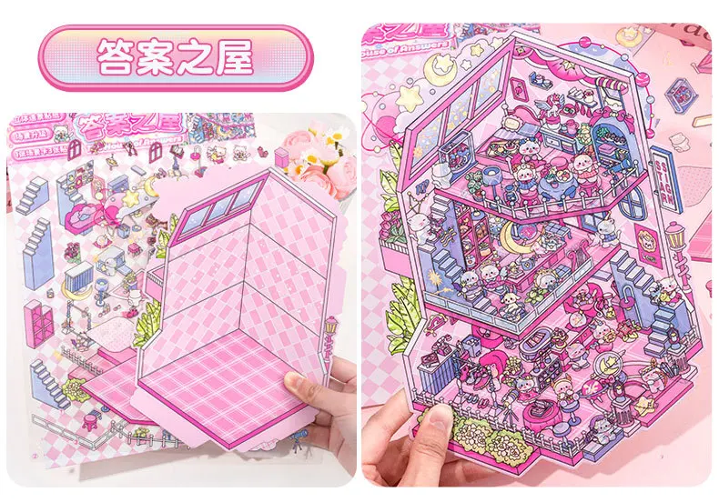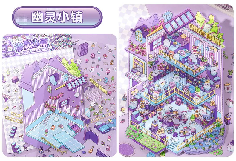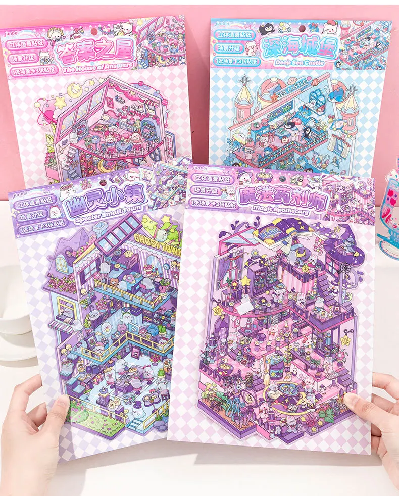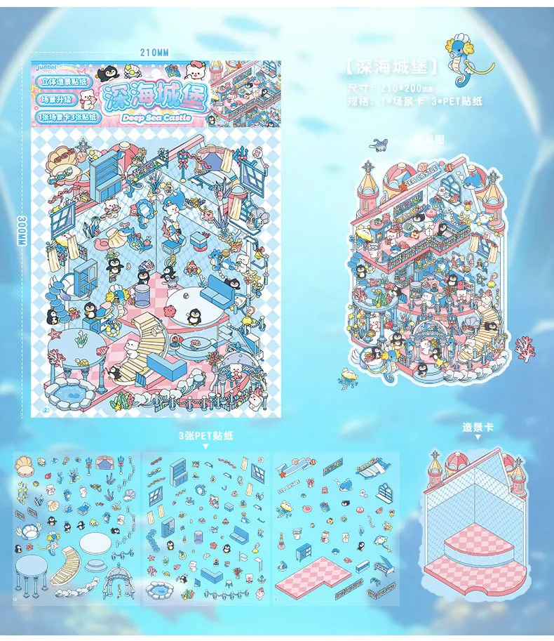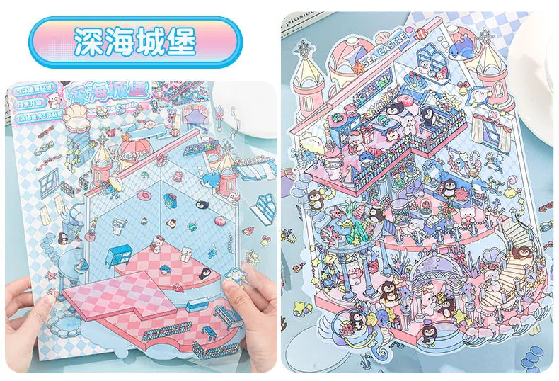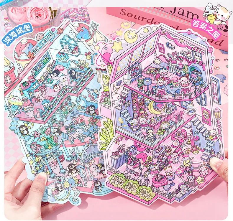 Tallas grandes 2.5D Castillo de dibujos animados ciudad paisaje pegatina escena DIY juego pegatina Festival regalo de cumpleaños para
